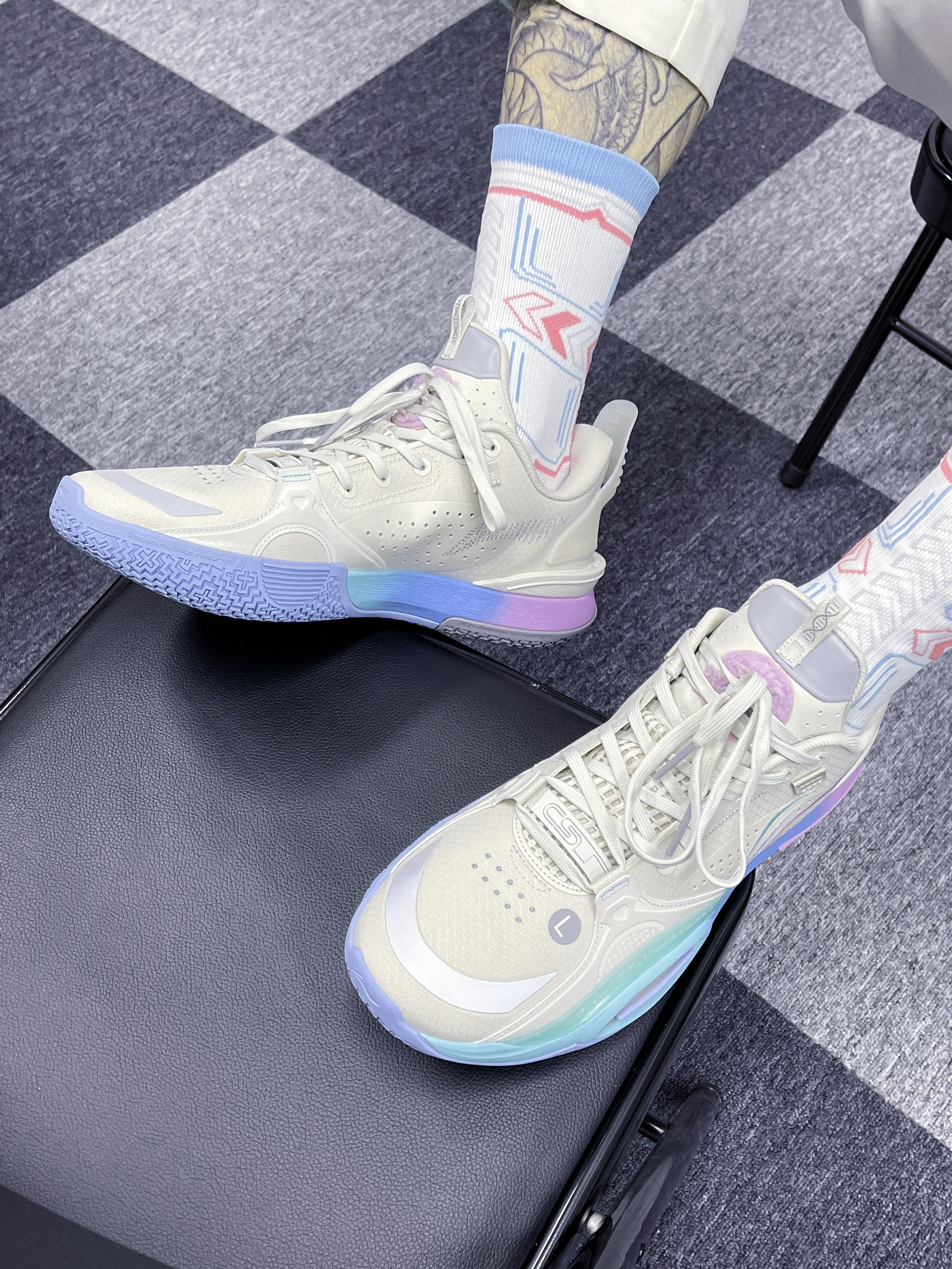 这段时间有看独行侠的比赛都能看到 克里斯蒂上脚这双全城14的牛仔之城 整个鞋实物的质感做的还是很不错的 用了皮革的拼接,鞋面也有暗纹点缀 鞋型其实看起来跟韦德之道12还是蛮像的 上脚来说整个脚感还是蛮软弹的 侧边的支撑给的很足,对应喜欢欧洲步的还是挺合适 在后跟处内嵌了一块超䨻材料, 缓震来说对我75kg是足够的 鞋楦也比13正常了不少 正常脚型可以按照常规尺码去选择 你会觉得这双全城14和wow...