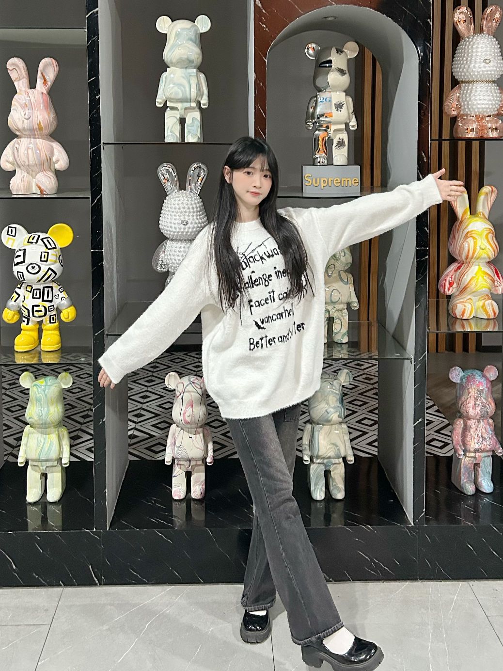 哈喽,家人们,今天的穿搭分享来啦,是一套秋冬年度奶呼呼毛衣穿搭分享~ 白色字母印花软糯奶呼呼毛衣+黑色直筒牛仔裤+黑色百搭鞋子 一整套秋冬年度奶呼呼毛衣穿搭get~ 尺码参考: 身高、体重:160、90 衣服:m 裤子:s 鞋子:36