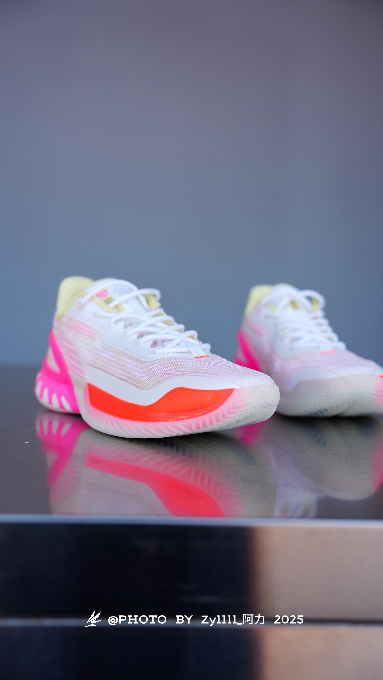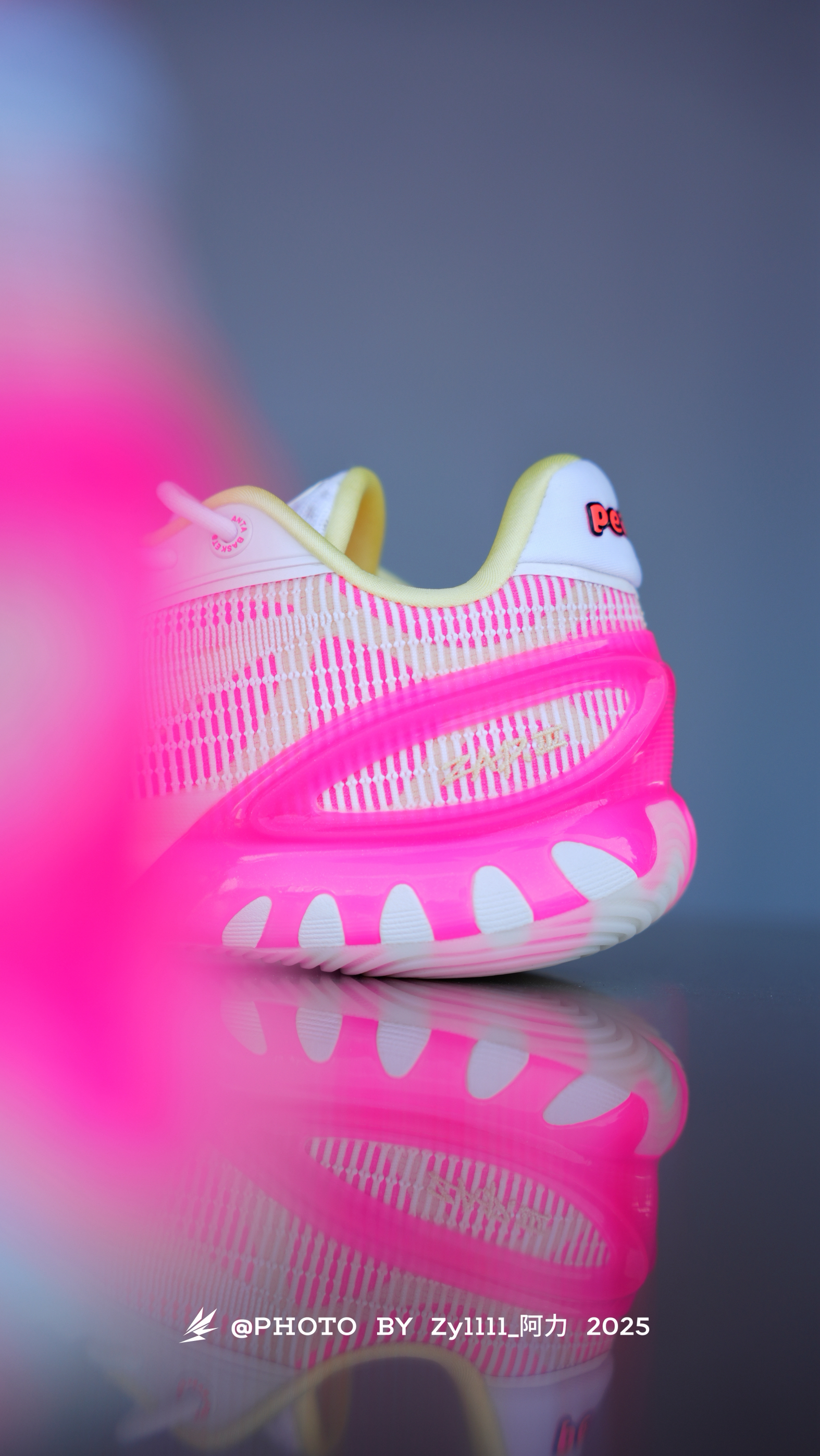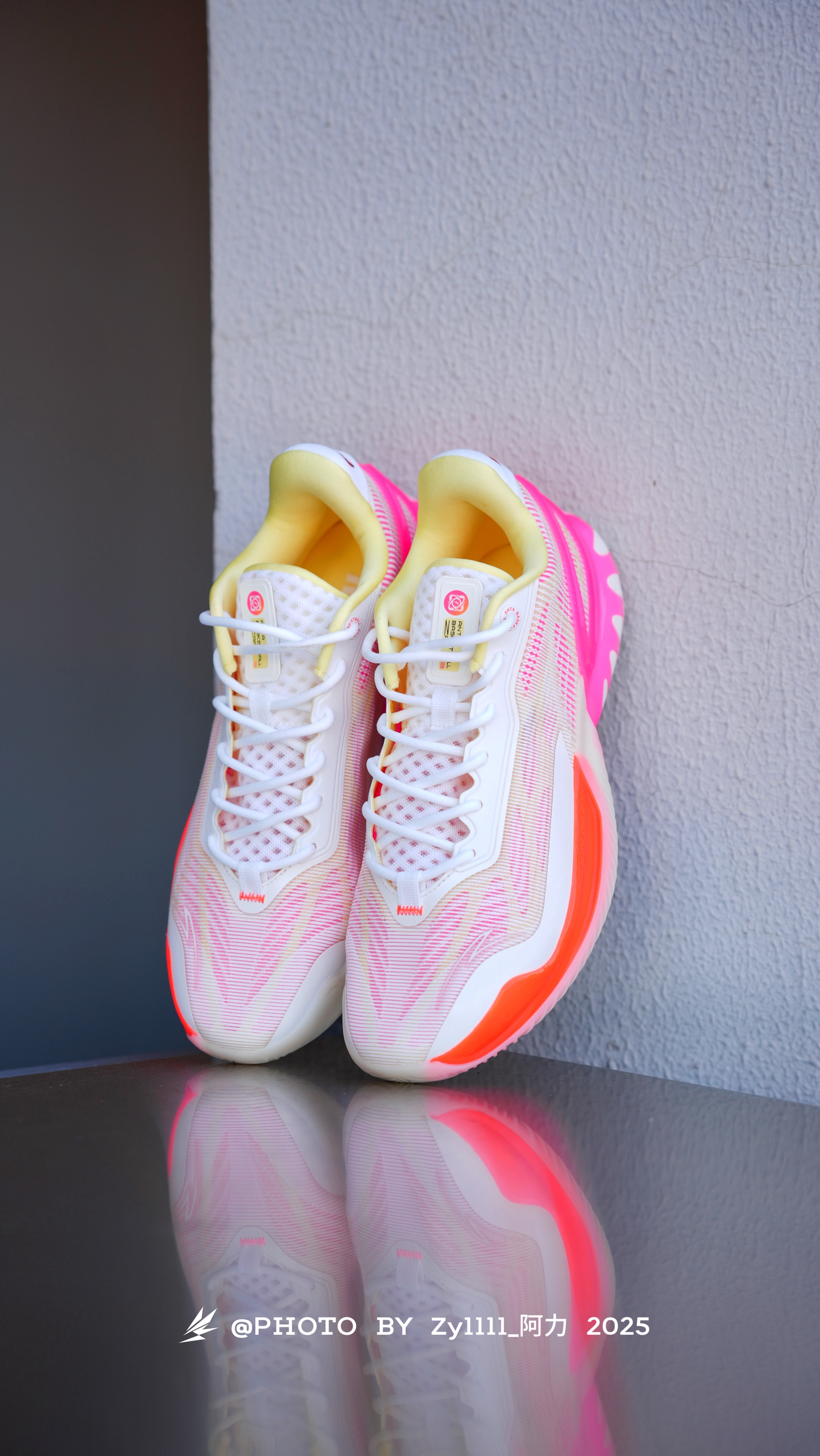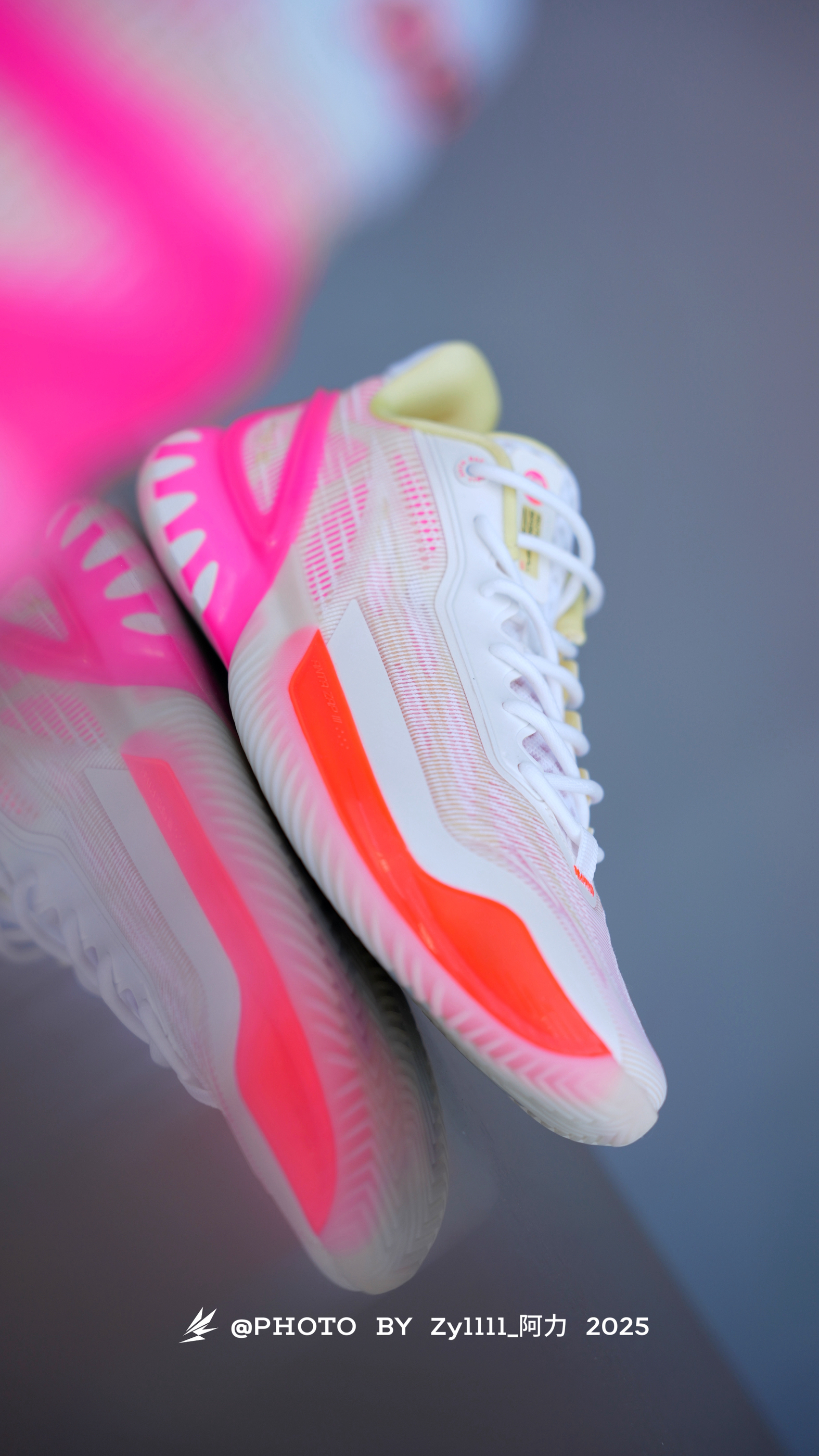 这碳板也太帅了吧 安踏 瞬息3的蜜桃冰粉配色,上脚真的很清新的感觉,粉粉嫩嫩,让人爱不释手 全掌A shock pro的中底加上X型碳板,视觉冲击很强,而且上脚是很韧弹的,蹬地弯折发力的时候不会感到泄力 鞋面的材质是高密度的纱线,强度很高、包裹性也不错 瞬息3用来实战真的有点东西的