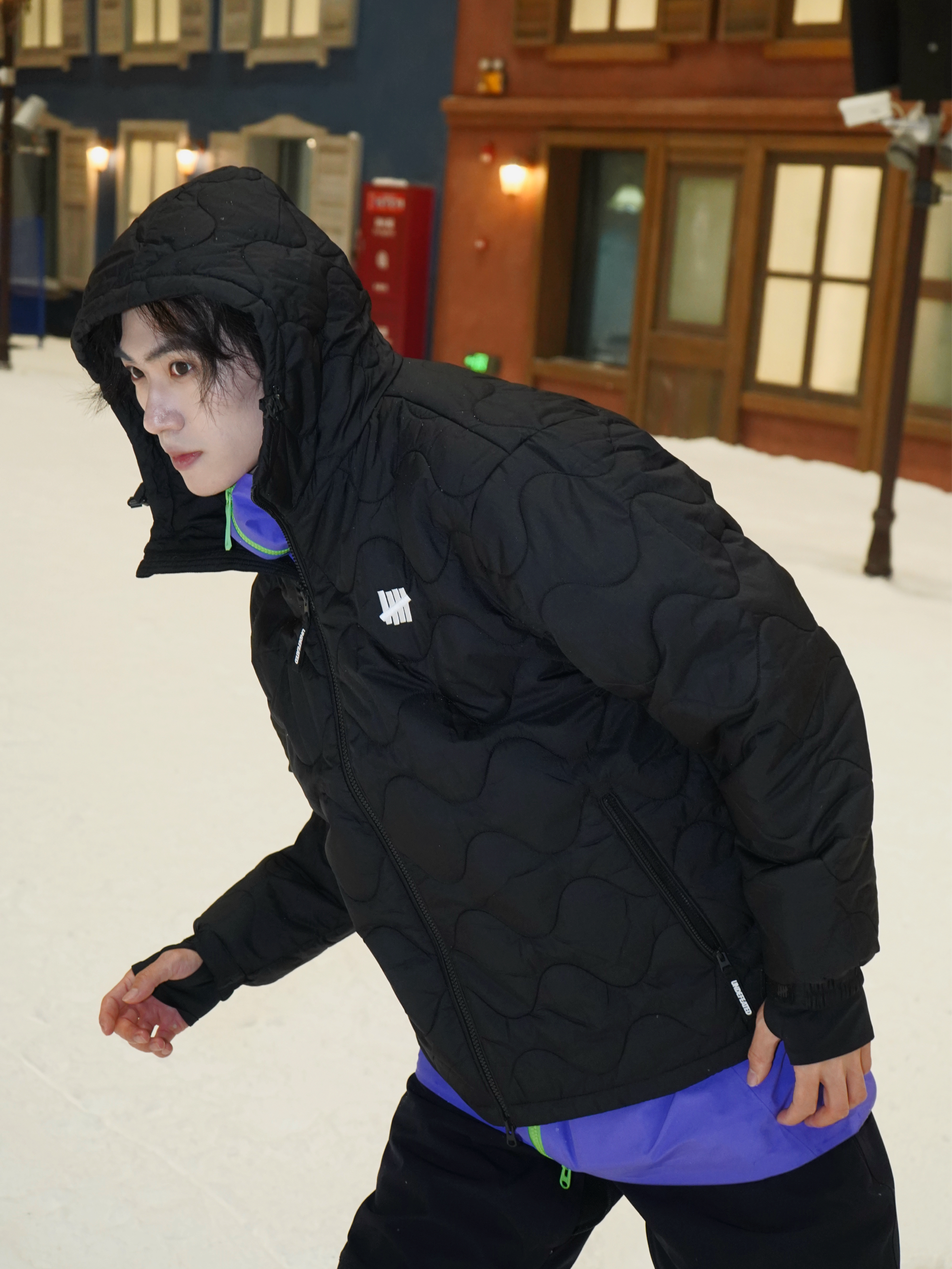 雪在雪地里!穿舒舒服服的棉服就对了! 真的很有氛围感!⛄️✨ 到底是谁说冬天很难穿搭, UND连帽棉服穿出不一样的轻盈潮感💜🛹 靠别厚重和死板,饱满充绒量,短款设计 行动起来好方便呀,同时纹路设计让整个人酷感十足,夹克服质感搭配冲锋衣和滑雪裤,机能风穿搭来啦! 玩雪自由发挥!咔咔出大片!