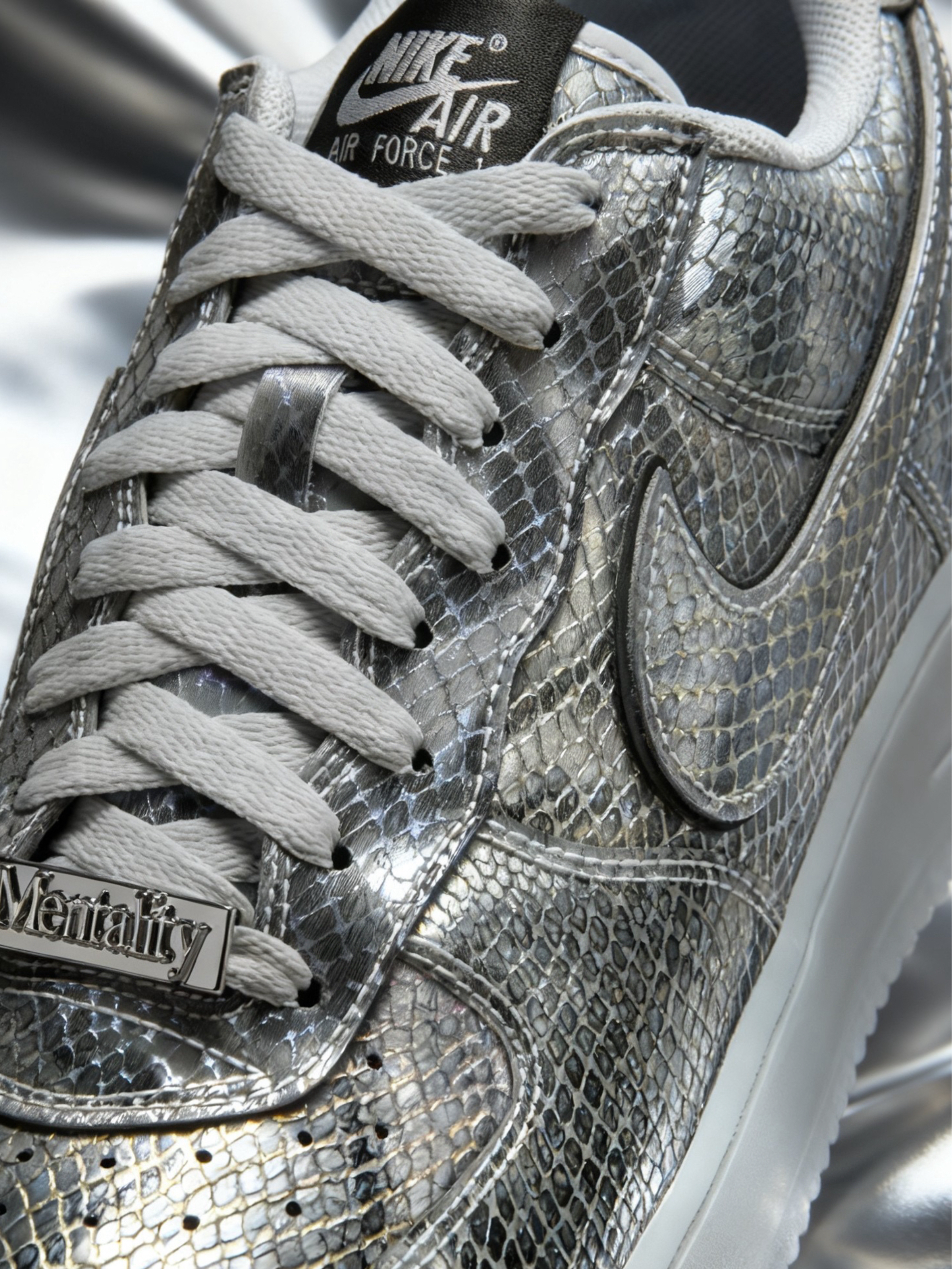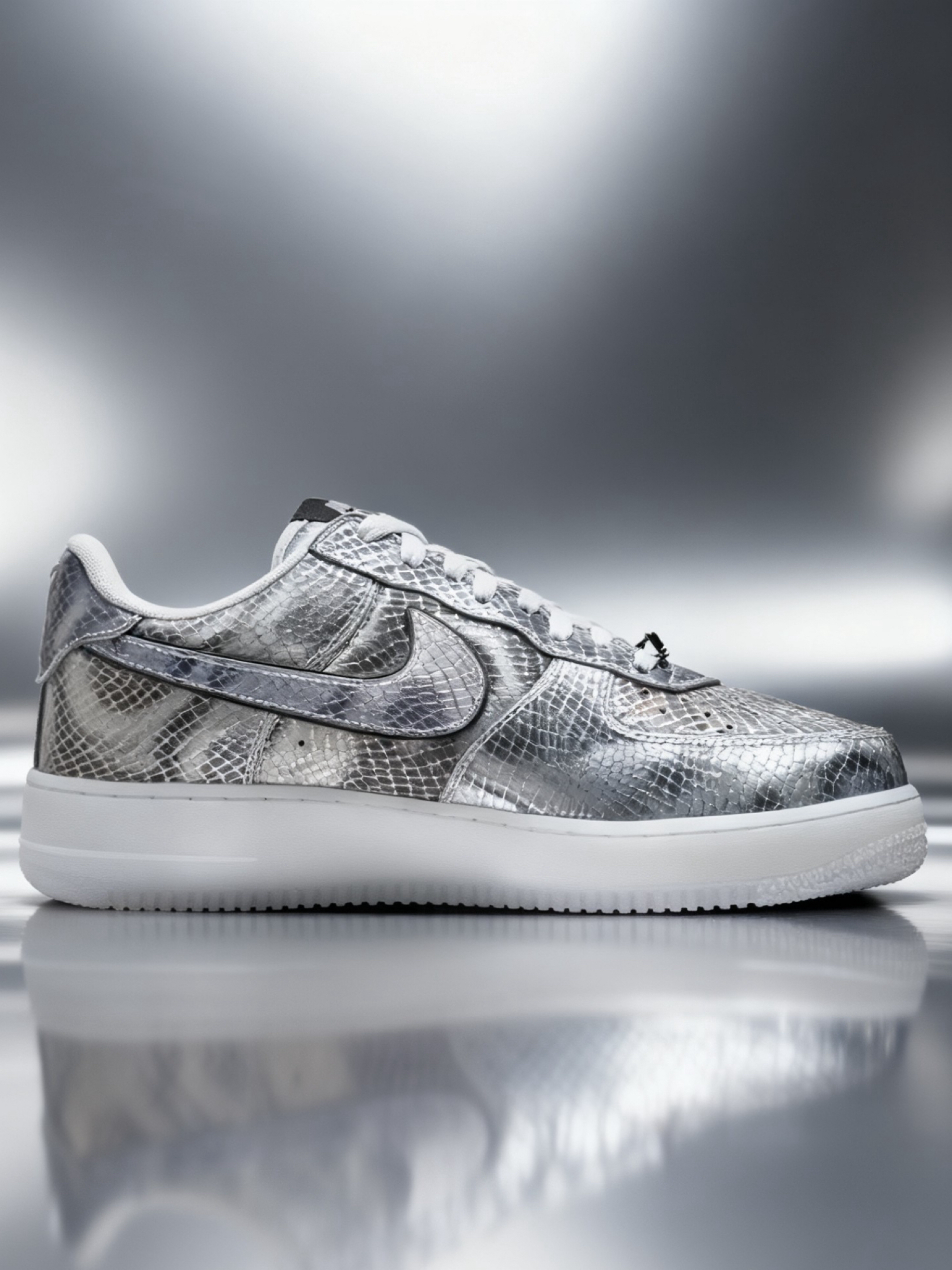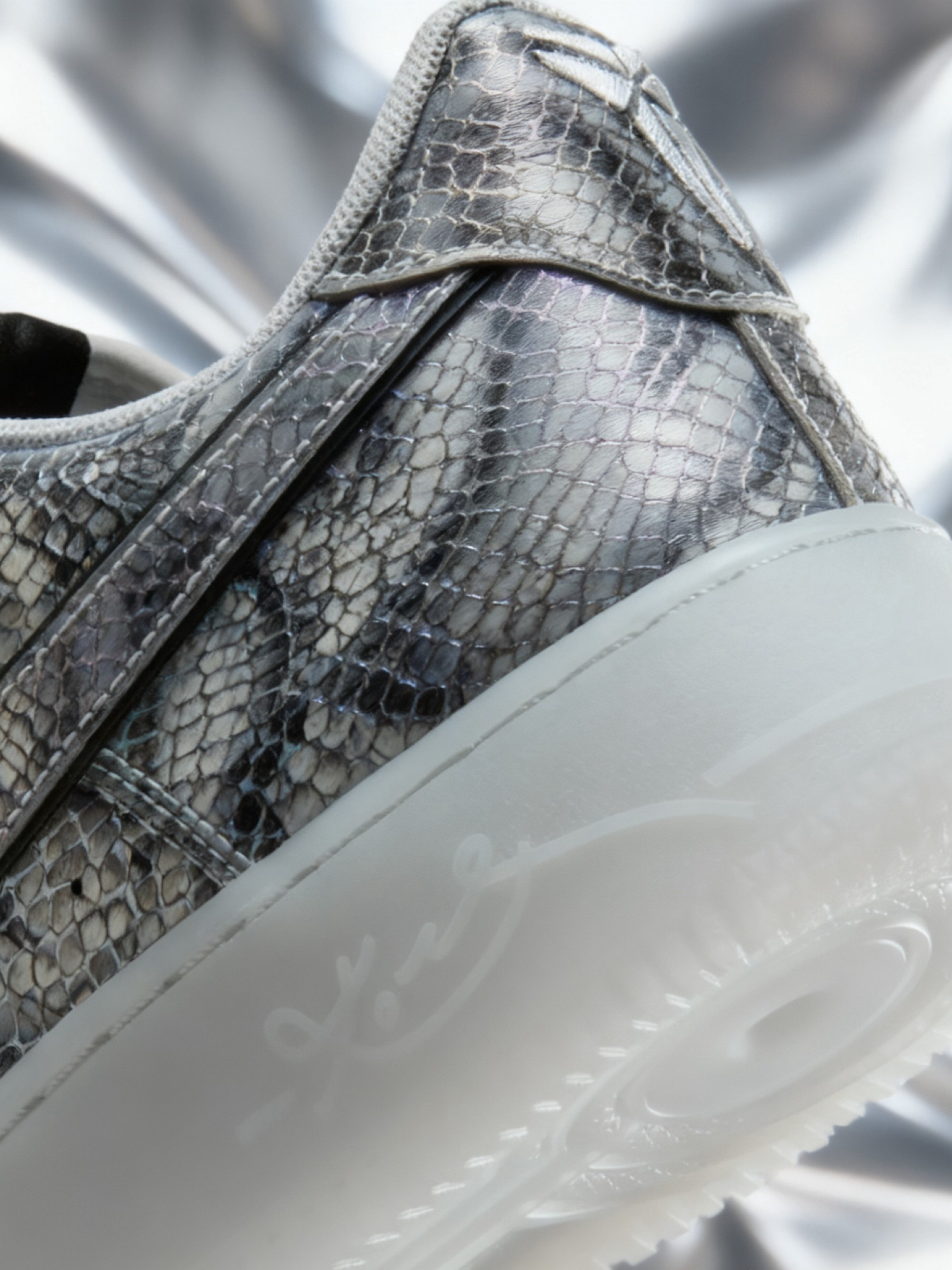 👟球鞋名称:科比 Air Force 1 🔍分享理由:颜值与情怀拉满 🤔整体感受:设计感拉满,银色蛇纹,既有黑曼巴的冷冽质感,又带点未来感,搭配半透明果冻底还挺精致,鞋舌的科比元素、鞋带扣字样,细节与情怀拉满。