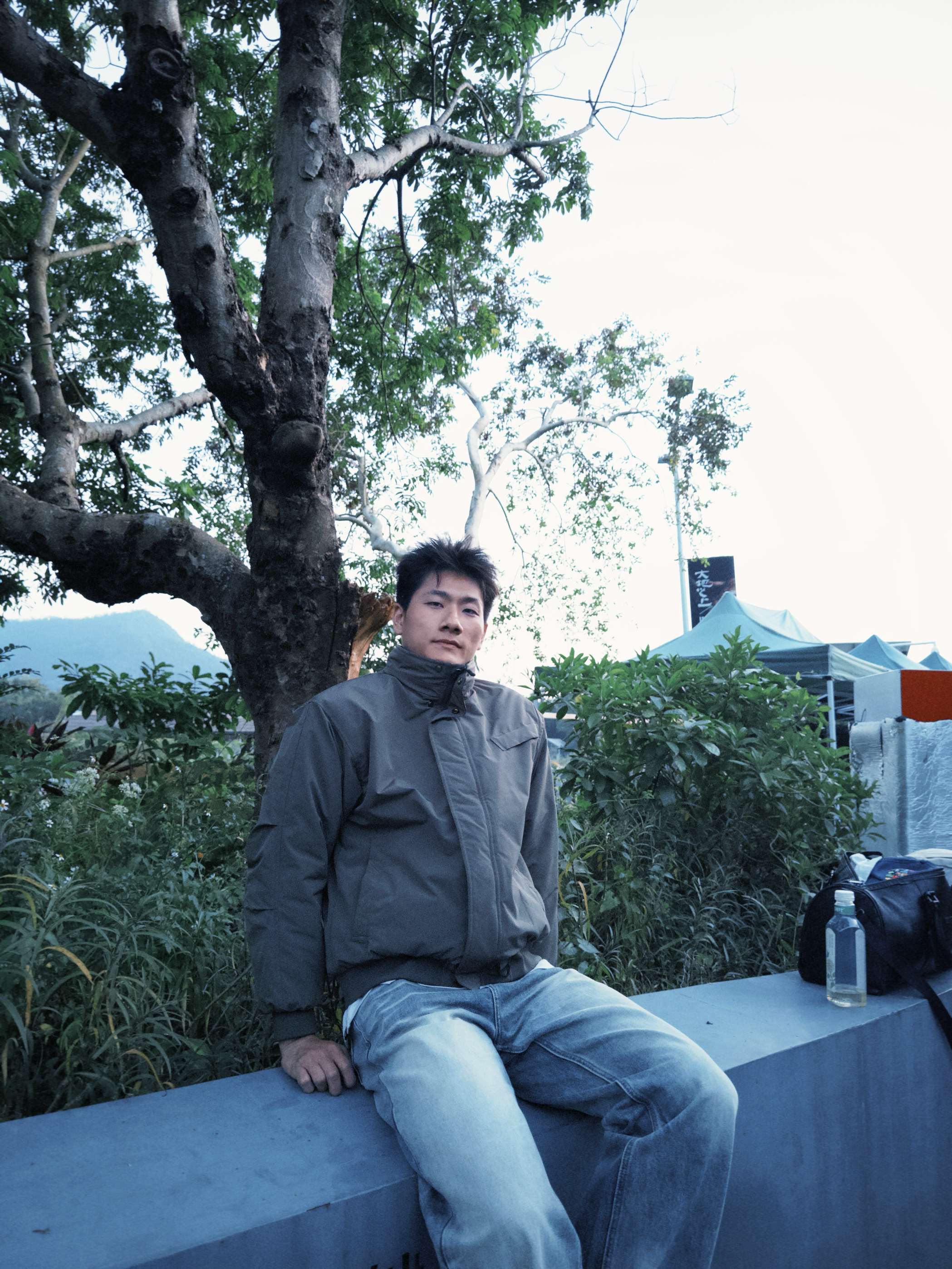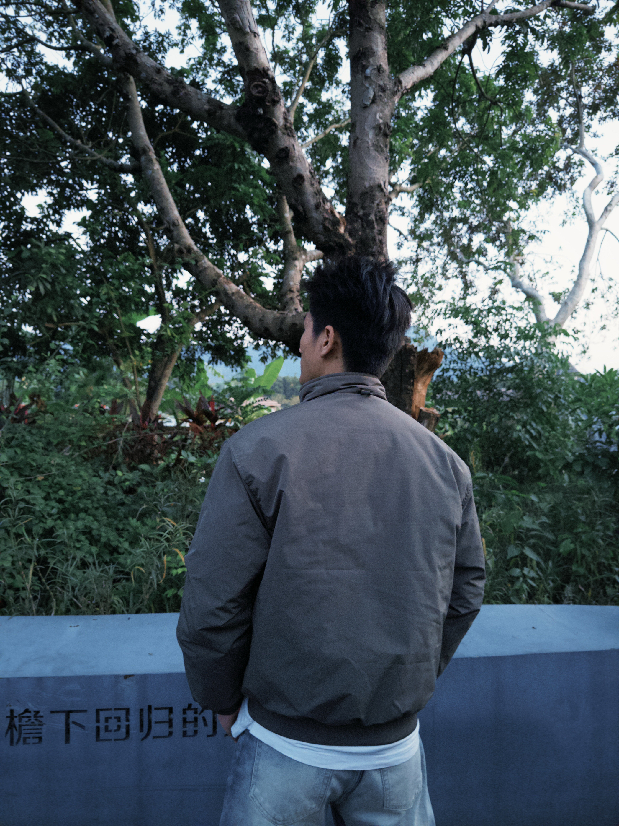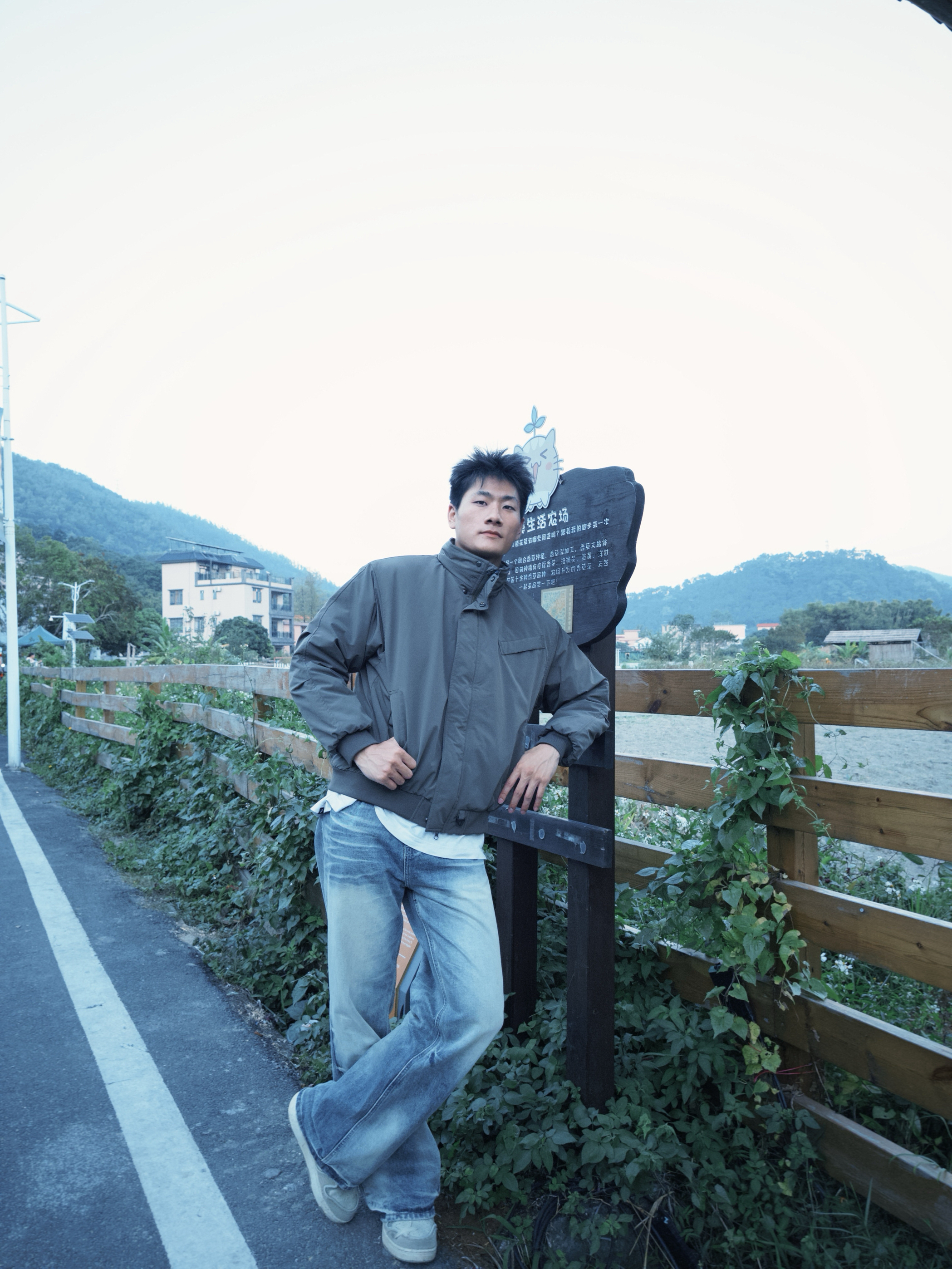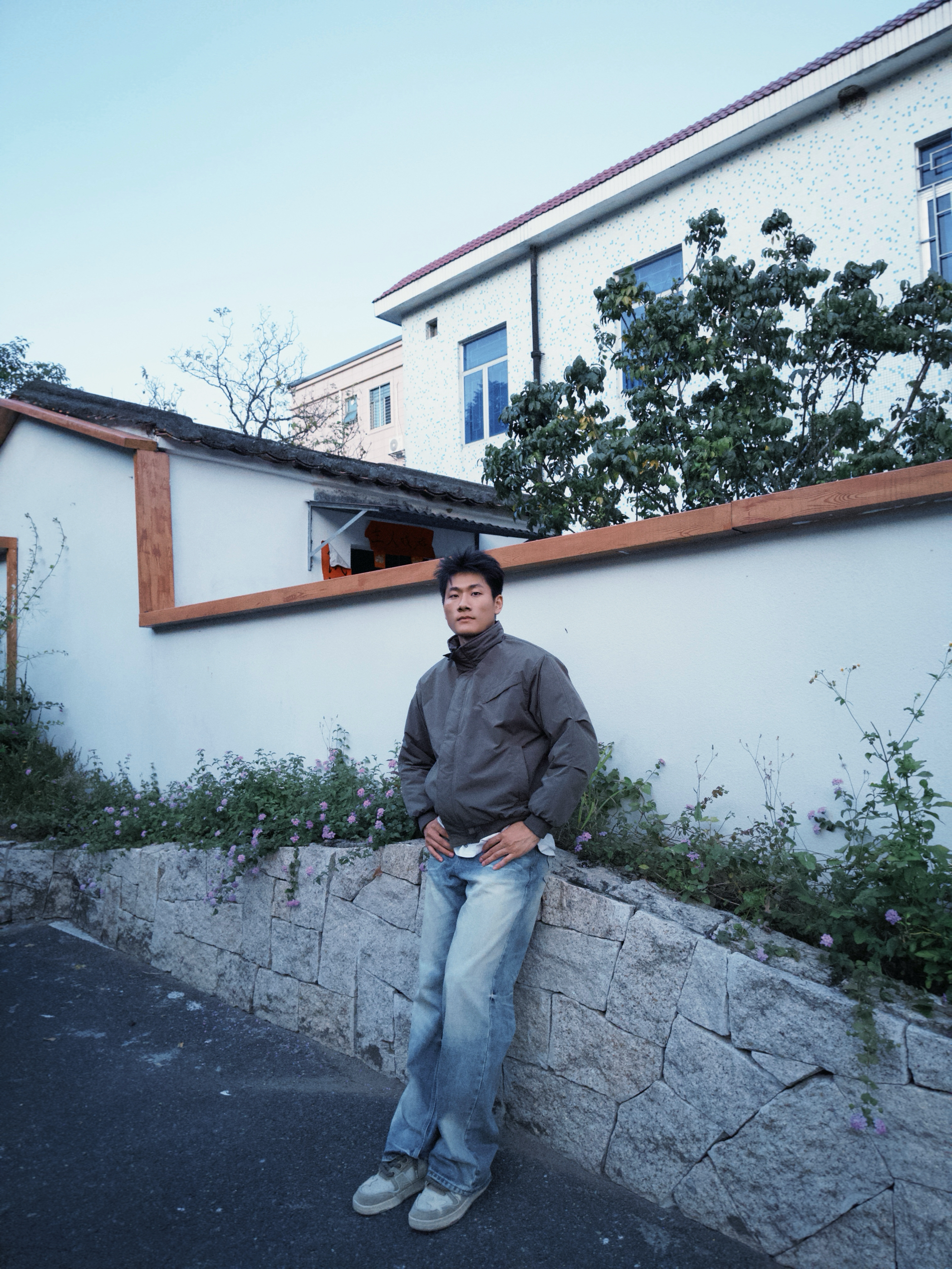 “这深灰夹克棉服是我出门的‘随手抓款’——立领裹着刚好挡风,面料轻软不压身,靠石墙站半天也不硌,配浅蓝牛仔裤往巷子里一站,利落又不突兀。现在这温度穿不闷汗,抬手、走动都没束缚感,属于‘舒服还能搭遍衣柜’的款。