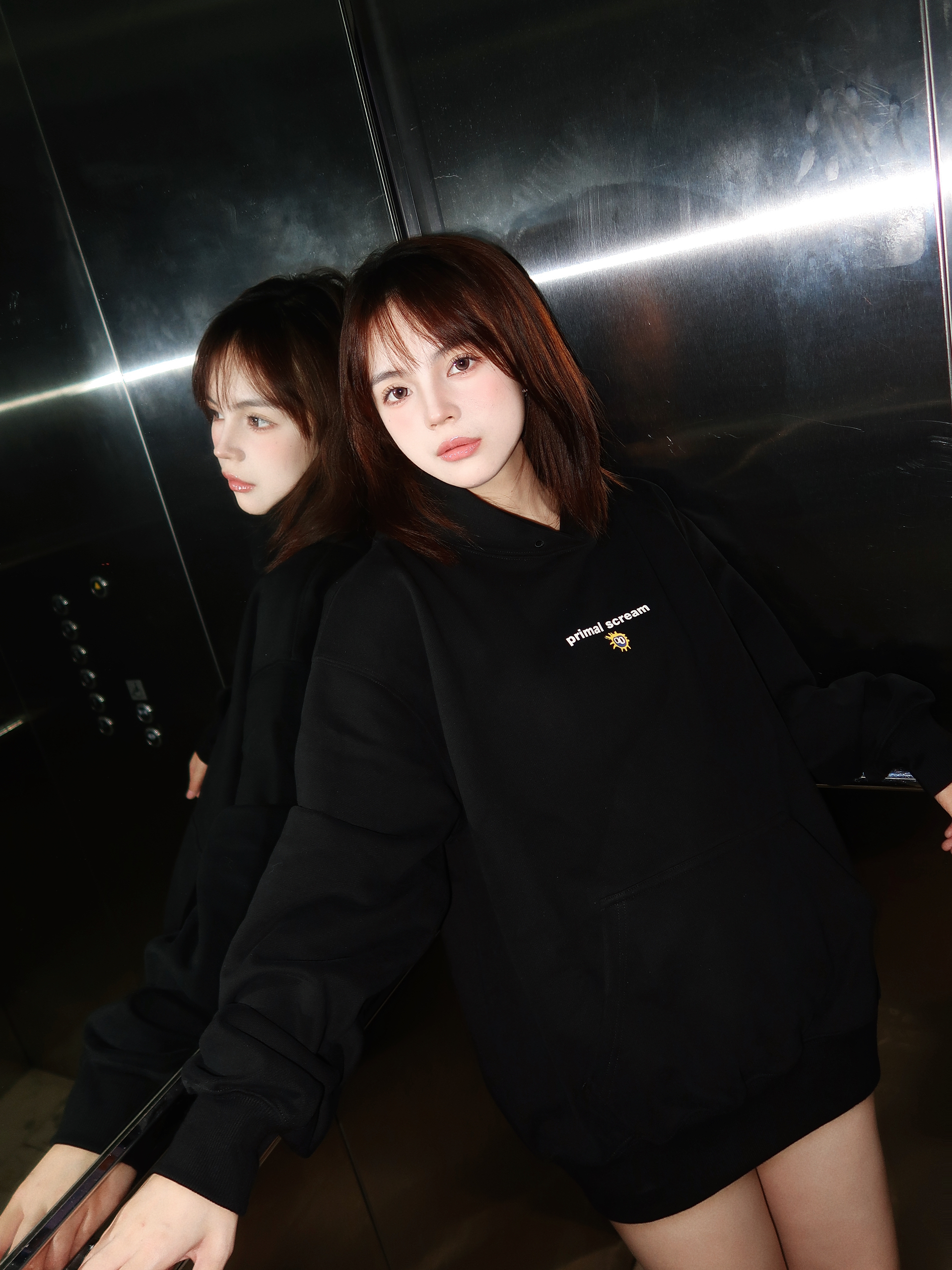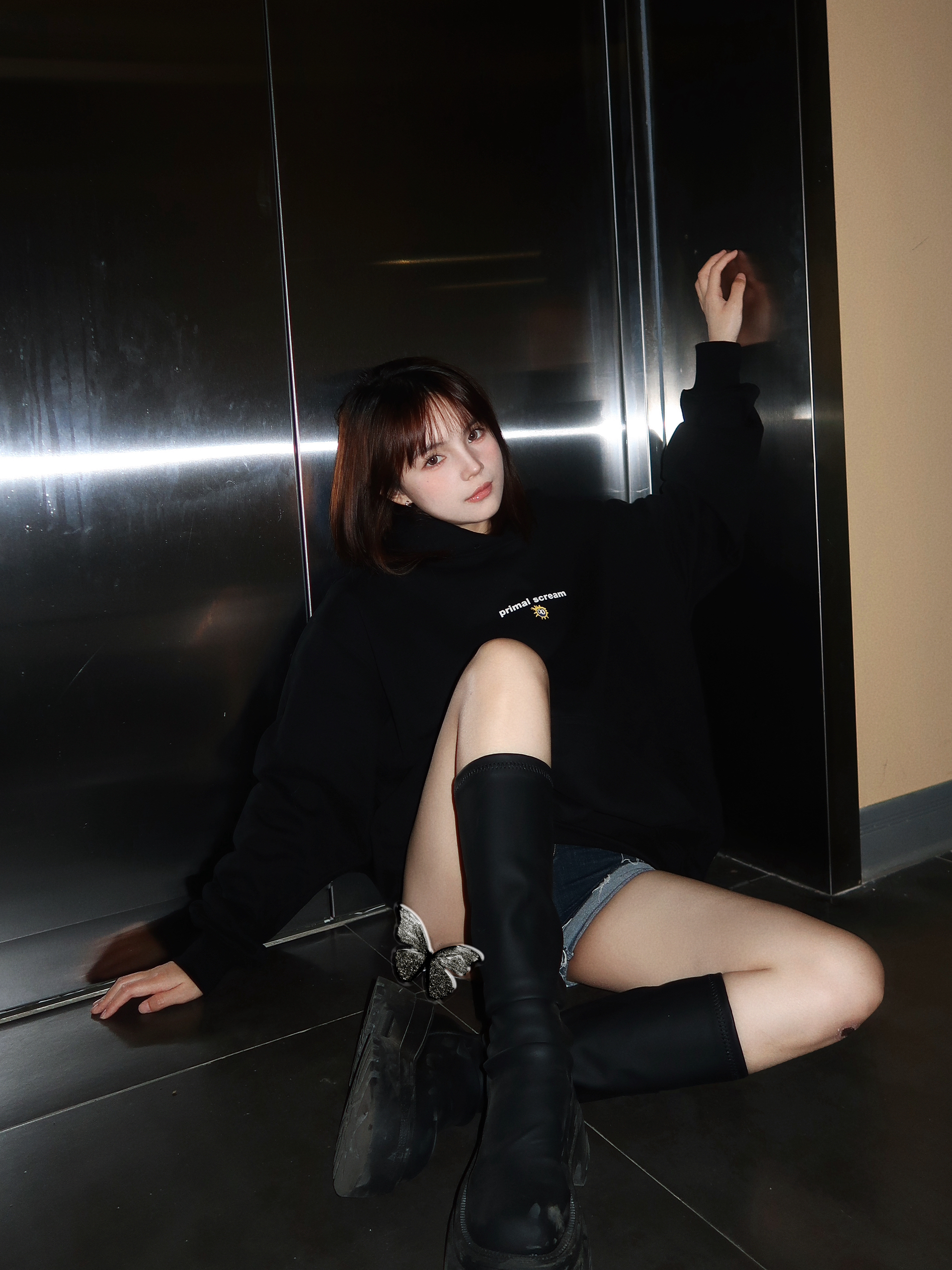 谁懂啊!oversize黑卫衣+下衣失踪+厚底长靴=腿长2米的懒人公式!卫衣是重磅面料软乎乎但超有型,小字母标低调又有细节感,直接当裙子穿都够遮肉~靴子选了今年超火的厚底中筒款,方头+微弹靴筒把腿型衬得巨直!走一天都不磨脚,小个子直接焊在脚上! 这套属于“随便套上就能出门”的舒服穿搭,电梯间随便一拍都是冷感氛围美女,秋冬这么穿又辣又暖✨