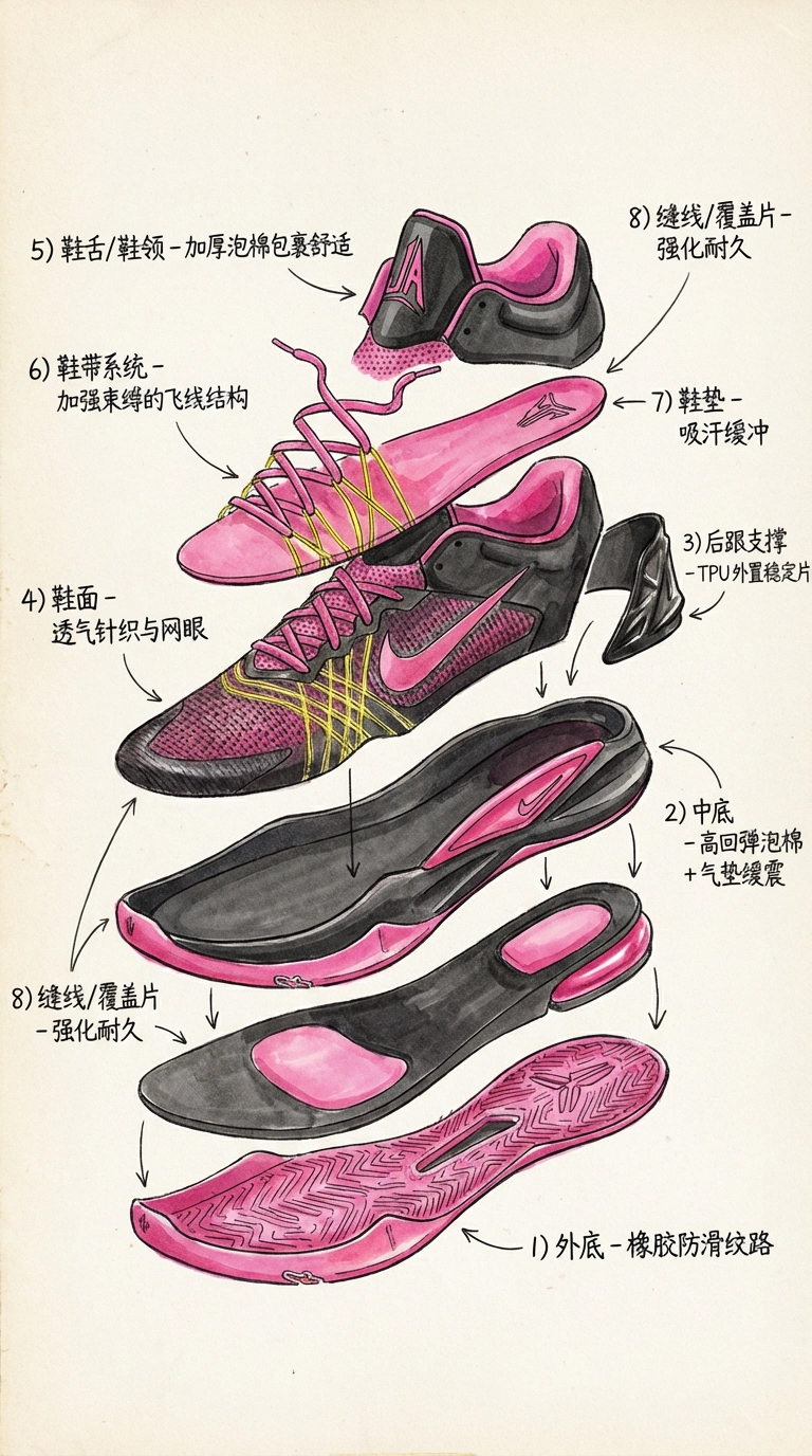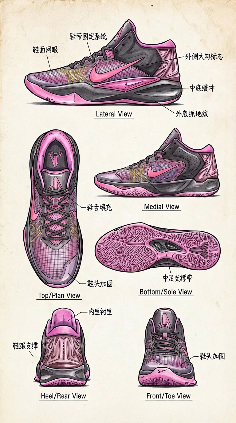 贾3才出来没多久,外媒又爆出莫兰特4代——Ja4谍照 这次曝光的是四个配色,有你喜欢的颜色? 咋一看,我怎么感觉还有点kd12的影子? 自己制作了手绘图,看看ja4的配置对比ja3能否迎来大升级