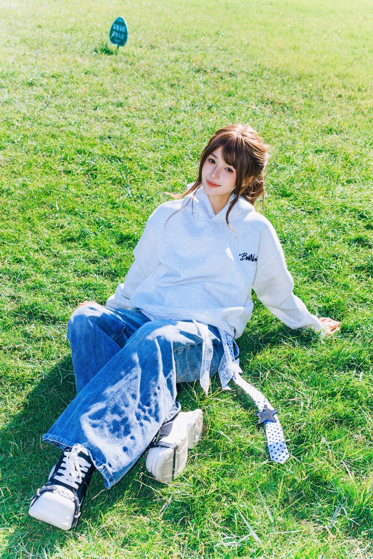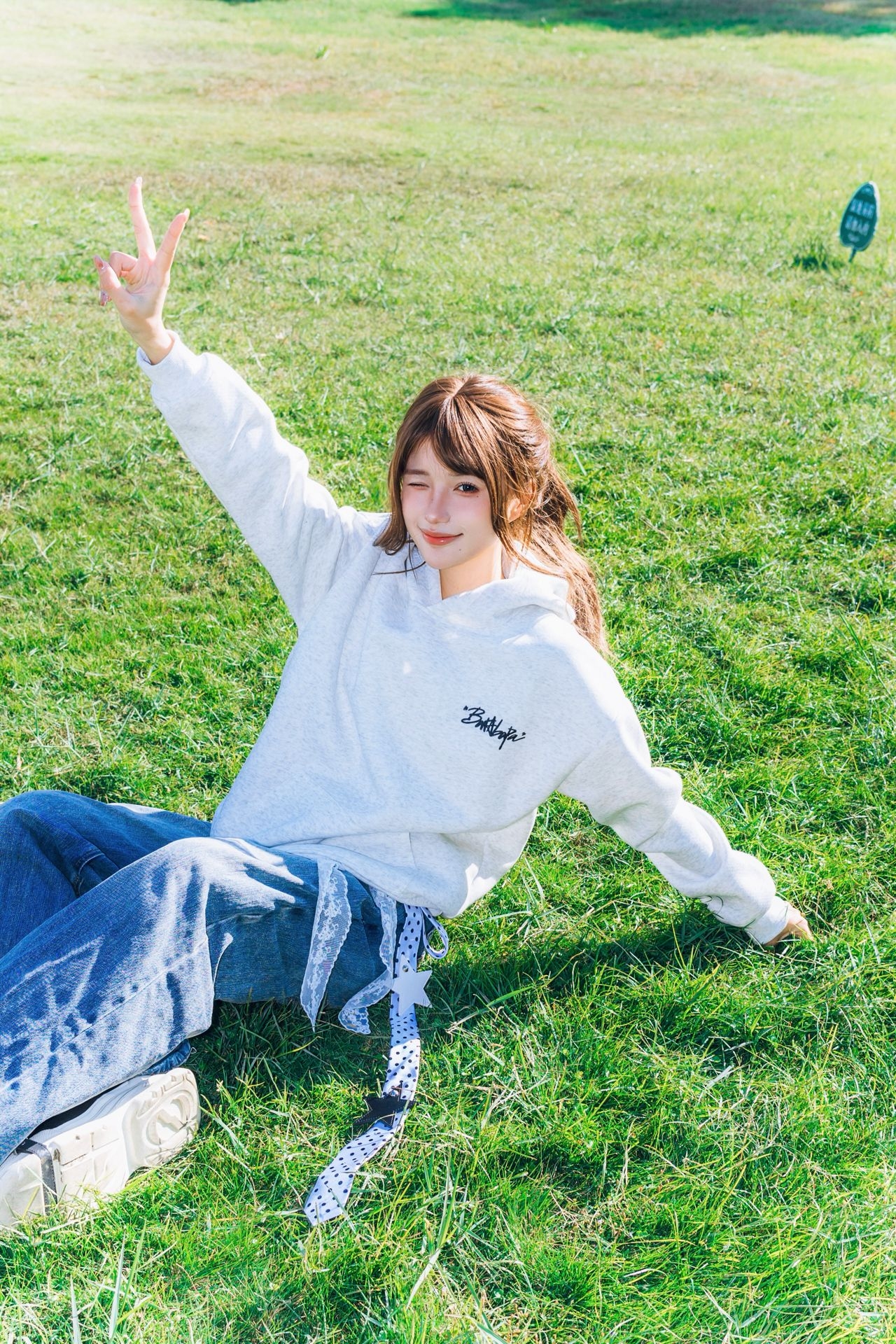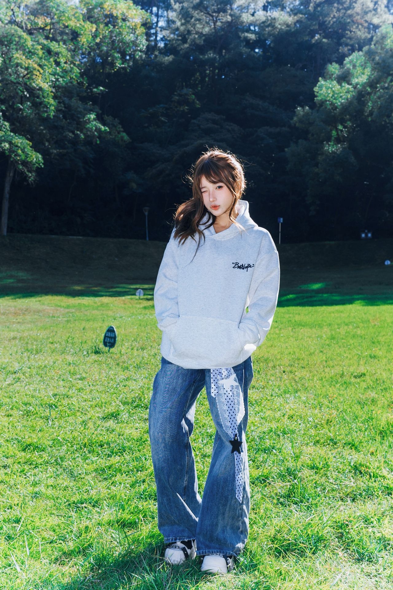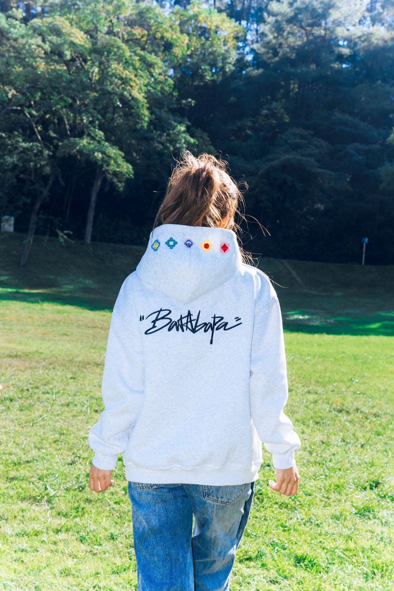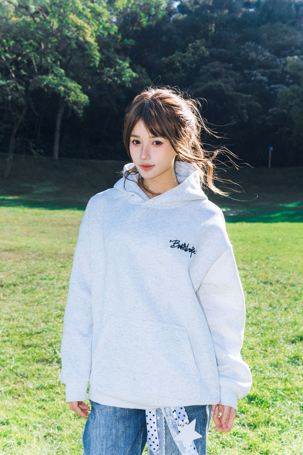 南方的秋天依旧还是绿油油的 好天气很适合去公园闲逛🚶♀️➡️ 🏷️ 今日上身:慵懒风涂鸦连帽卫衣 浅灰色基础款自带松弛感 连帽边缘的彩色小刺绣直接把细节拉满 日常搭牛仔裤就是干净又有风格的出街look