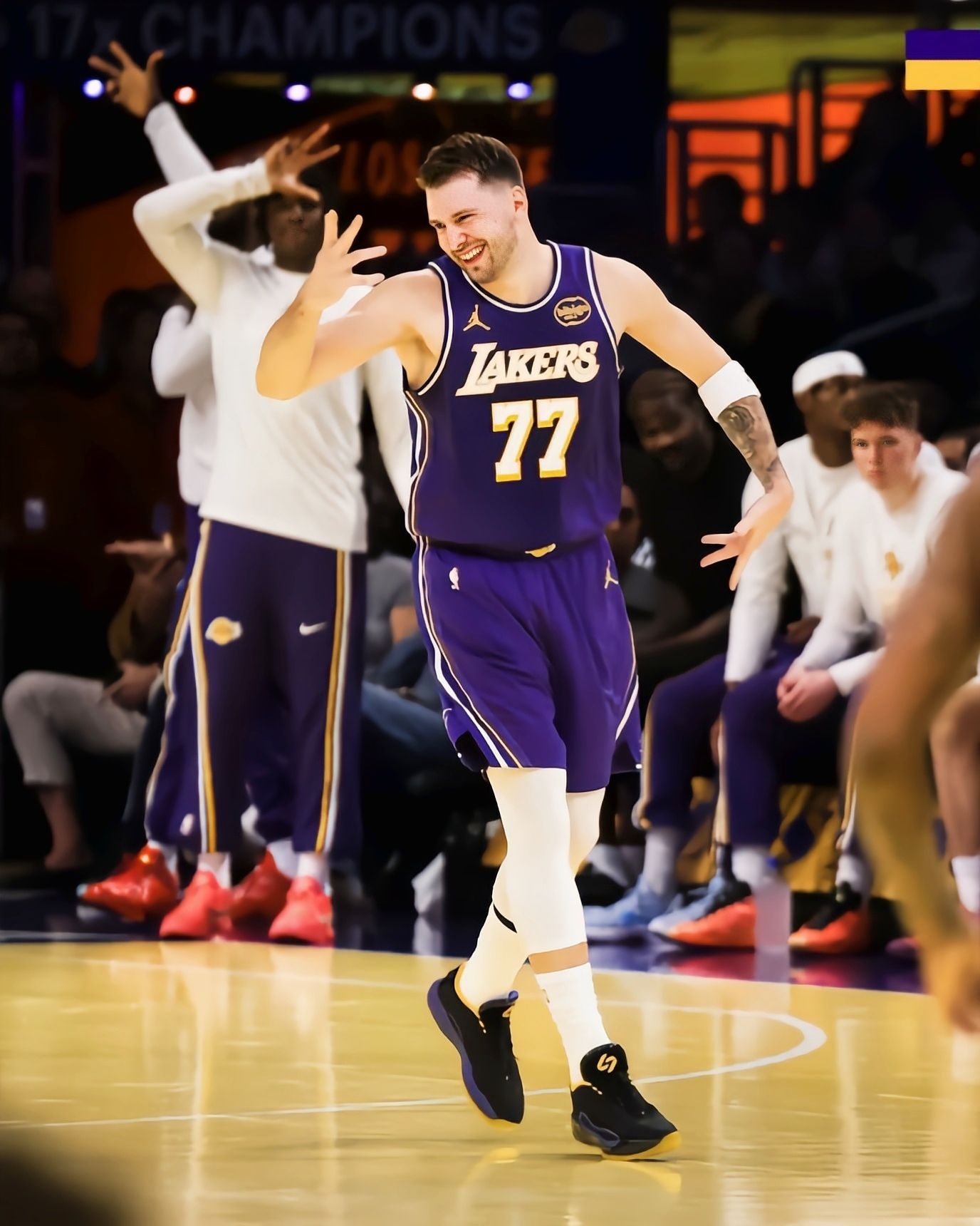 昨日NBA杯小组赛湖人135-118战胜快船,本场比赛,湖人队球员出场38分钟,投篮28中14,其中三分球12中7,罚球11中8,得到43分9篮板13助攻1抢断1盖帽。比赛中,东契奇上脚湖人配色Jordan Luka4 PE 东子这双湖人紫黄配色的Luka4也太搭湖人球衣了吧!黑底色+紫黄点缀,低调又有球队那味儿,日常穿出门配运动裤也不违和。 说回实战——看东子全场跑下来的状态,这鞋应该挺...