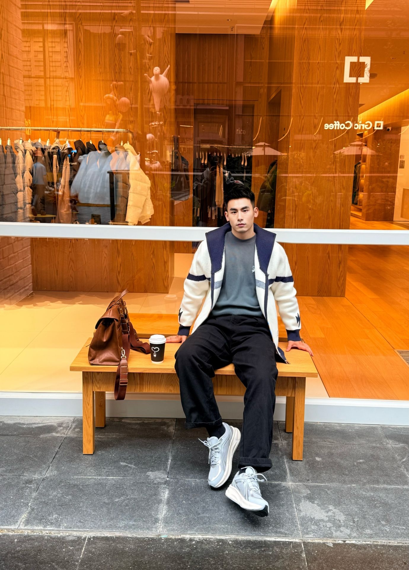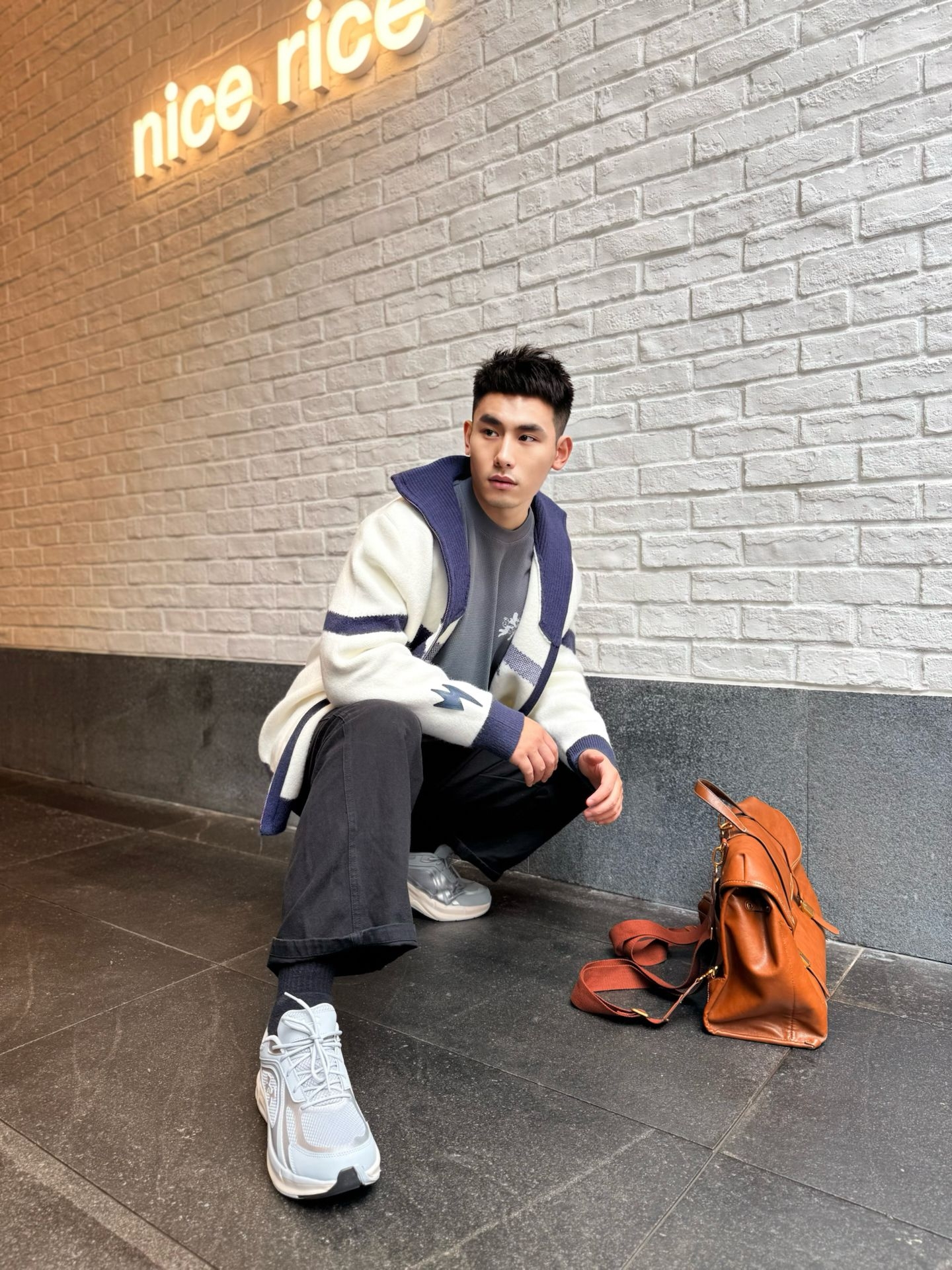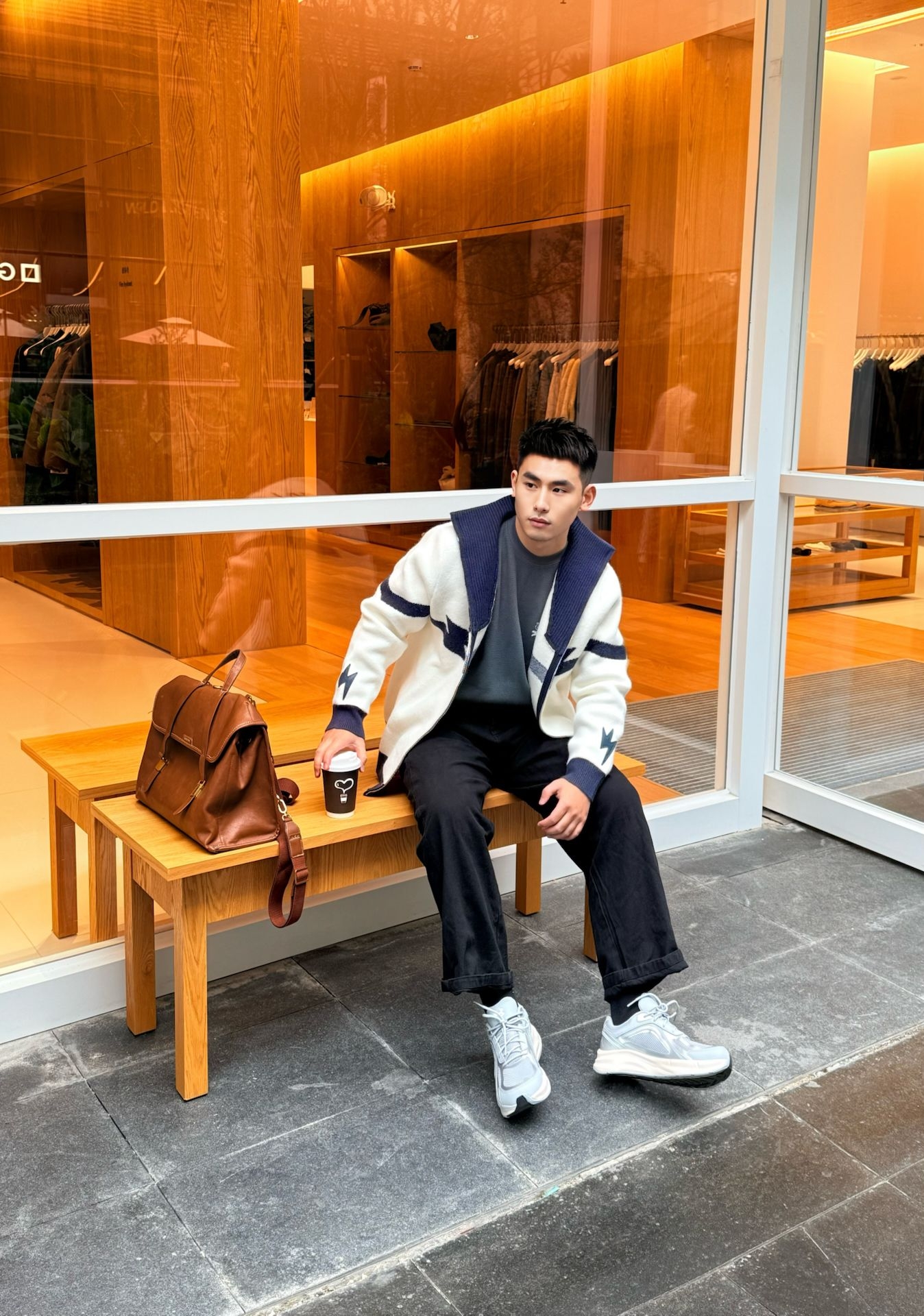 白蓝针织外套配黑色直筒裤,简约清爽; 重点来咯!脚踩安德玛HOVR Phantom运动鞋,蓝灰色调增添活力,针织鞋面轻盈包裹感很舒服,所以上脚走路不怕硌着不舒服! 整体风格舒适休闲,兼具运动与通勤感,轻松驾驭多种场合。