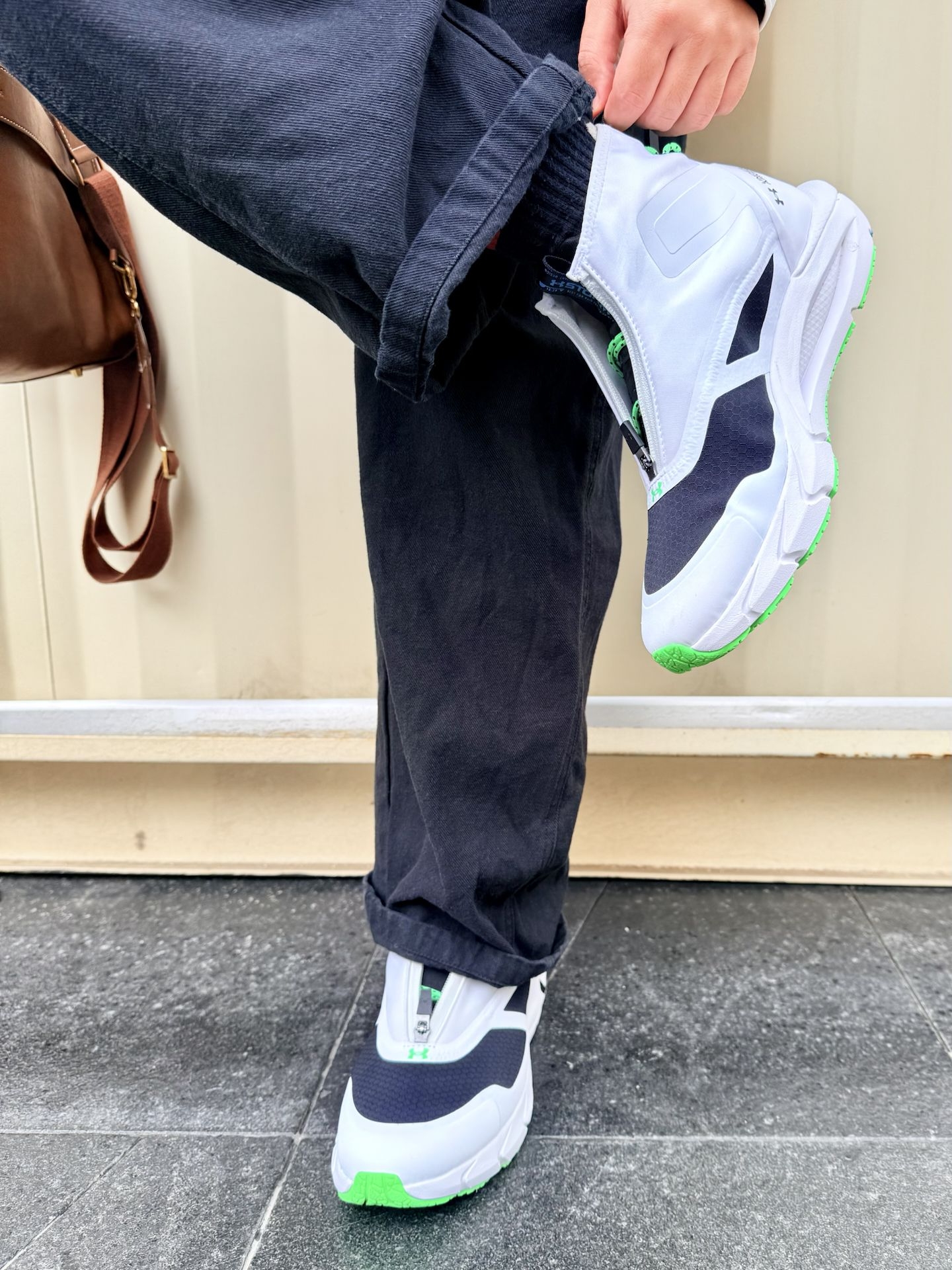 冬天第一套穿搭来咯!白色羽绒服搭配黑色直筒裤,冬天简约黑白配清爽又耐看。 这双Under Armour白色高帮鞋注入一些不同风格,自带一些运动活力,说说这双鞋的感觉:因为是内外双层鞋面,所以质感很轻盈,穿上去很贴合、舒适,而且橡胶外底很轻并且强韧,我上脚后体验感就回弹力很强,而且这双鞋后跟配有抽绳,非常方便调节,所以一体式鞋舌搭配拉链设计,方便穿脱,懒人的福音!!这几款功能太强了! 整体是冬日实用...