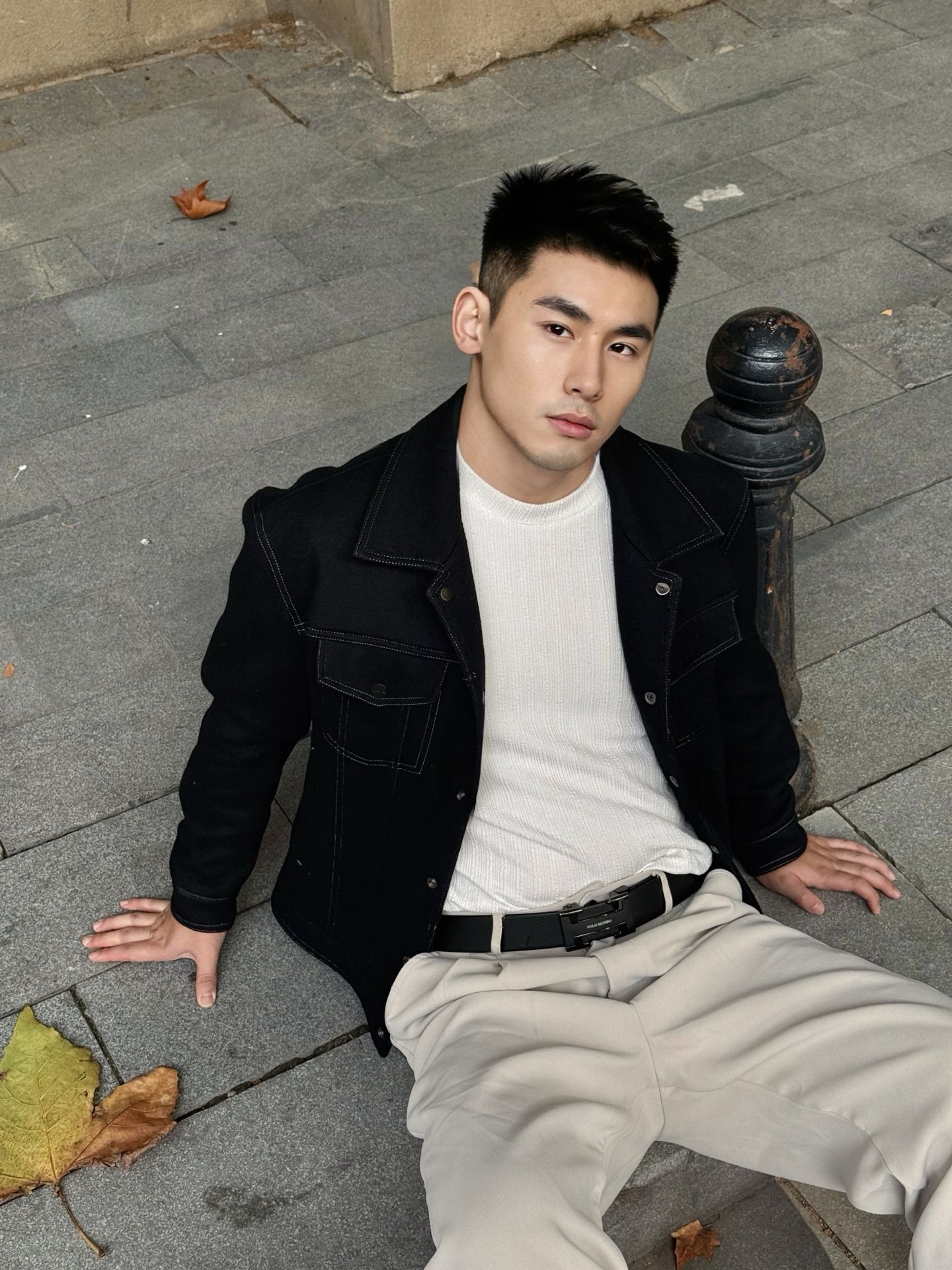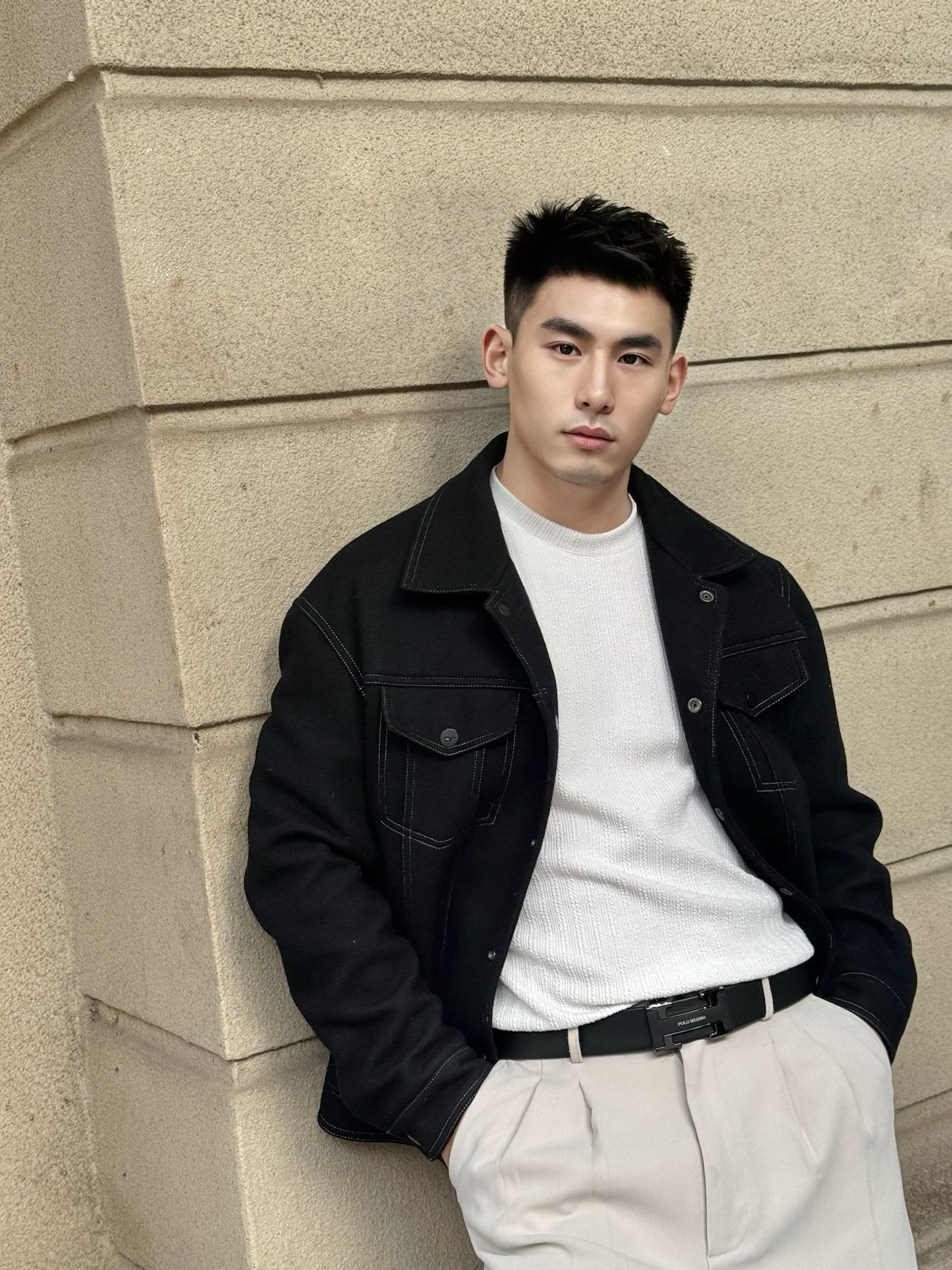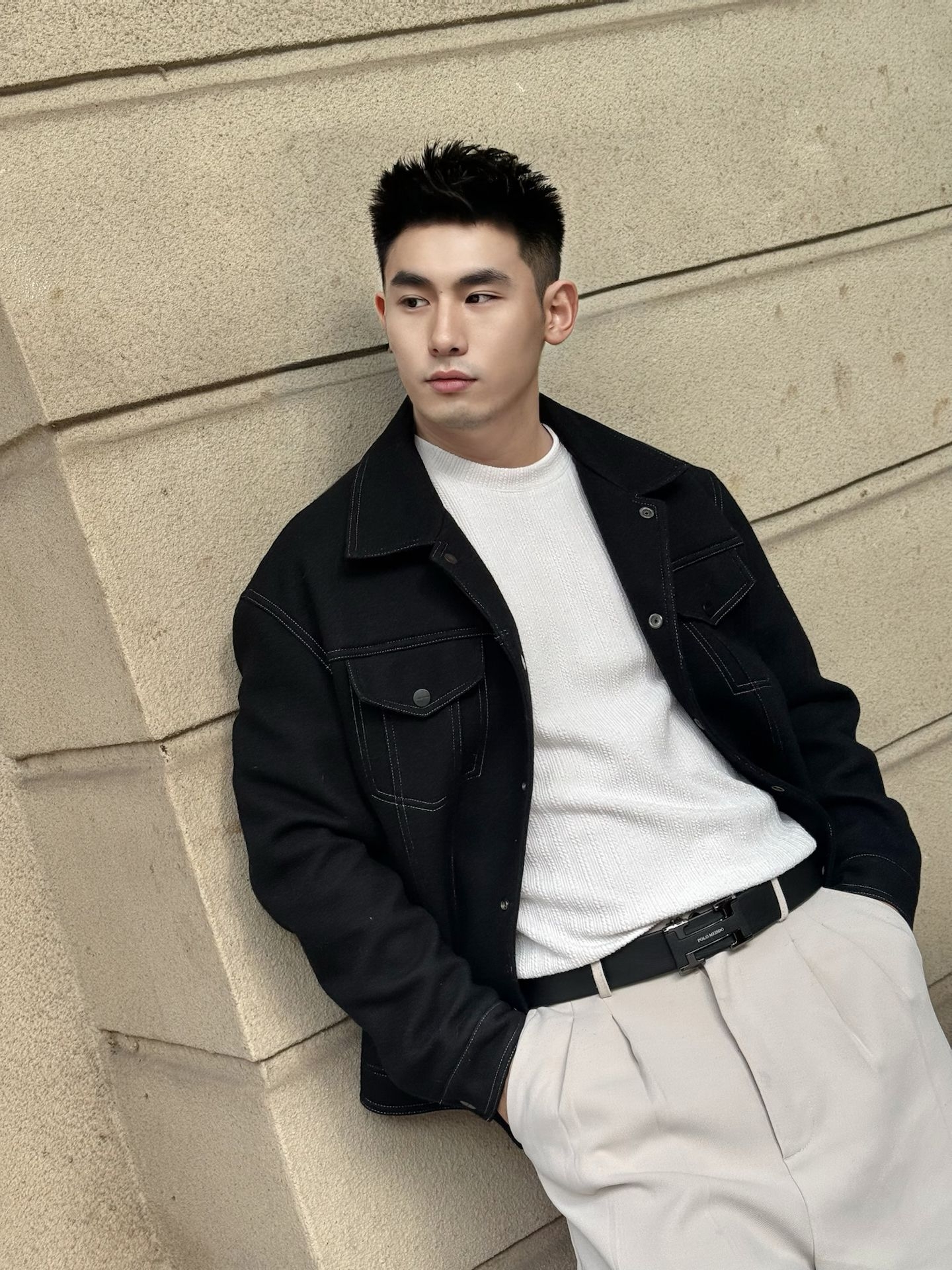 酷感黑白,经典配色松弛有型!这身穿搭将黑色短款毛呢外套与全套白色内搭、直筒白西裤组合,干练利落又不失休闲感。 一条POLOMEISDO的皮带,这次皮带头设计奢感很足,极简中透出高级潮流触觉。超级喜欢!自己用,送人都有派头,整体风格是现代简约风,完美平衡通勤与街头型格。
