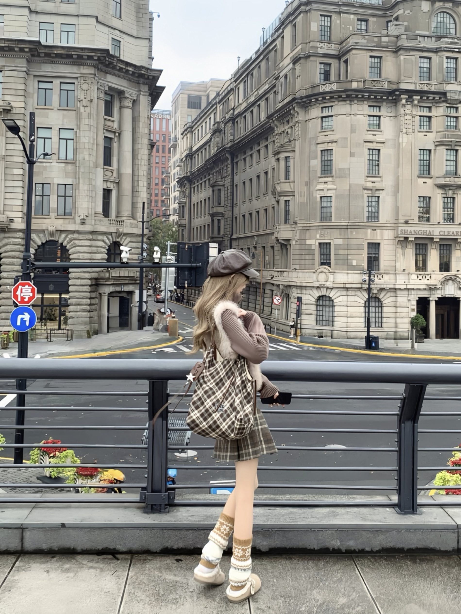 外滩走走拍拍~ 上海这个观景台真的很出片!!! 可惜是阴天..但也蛮有氛围感的🦦 #女生的宝藏格子短裙套装 #暖烘烘过冬搭子 #提前预习一下冬季穿搭 #点缀秋日的小配饰 #秋天美拉德时间到