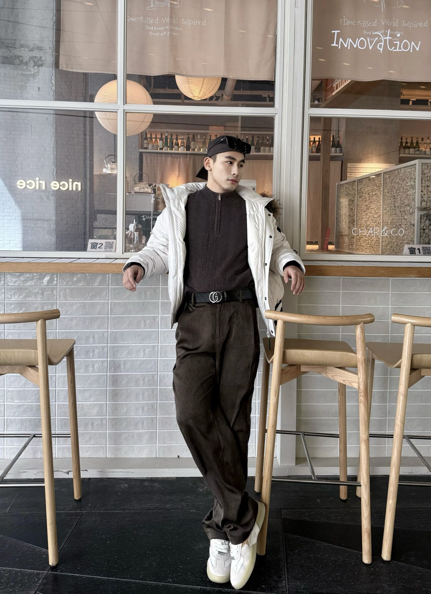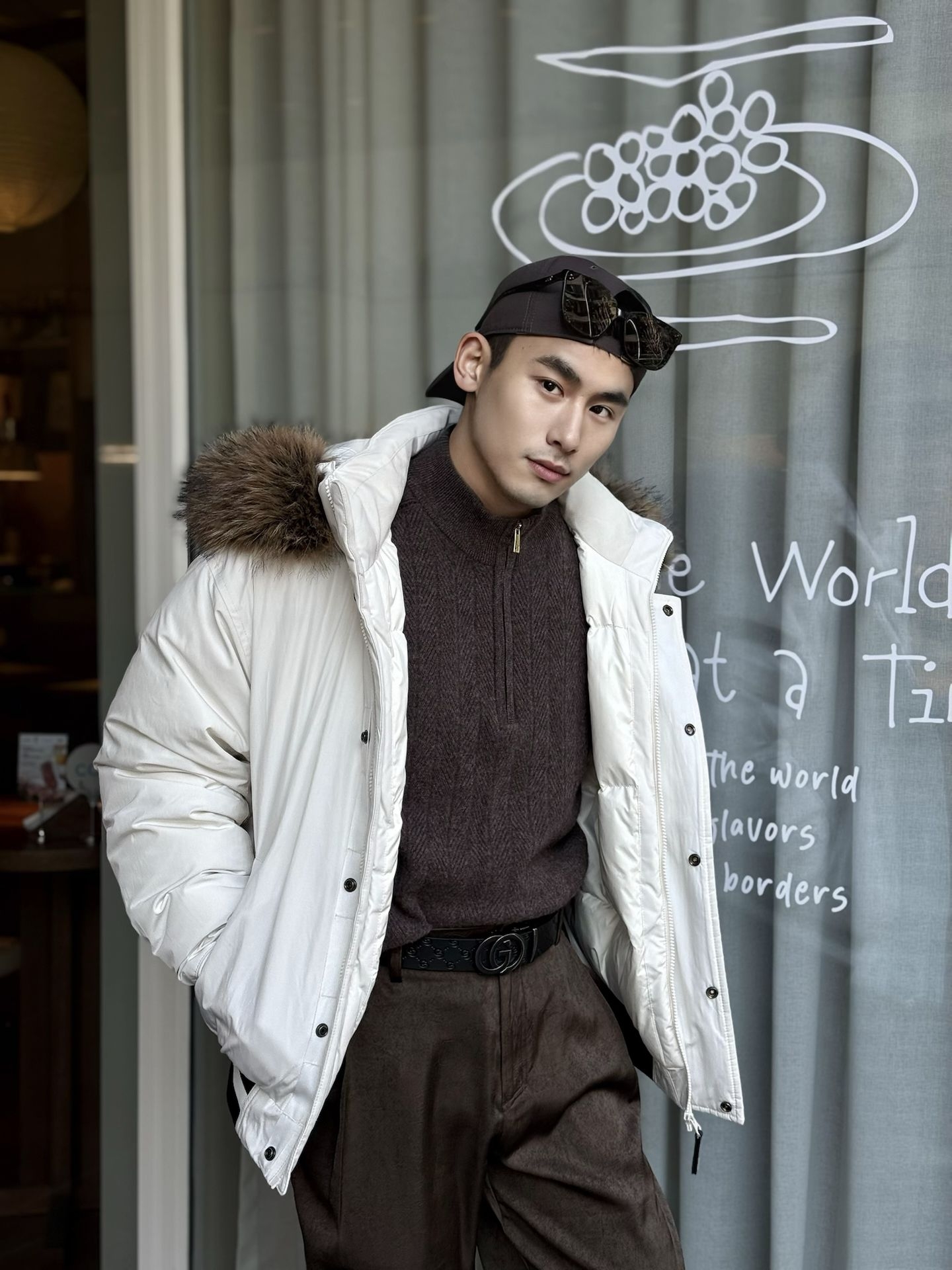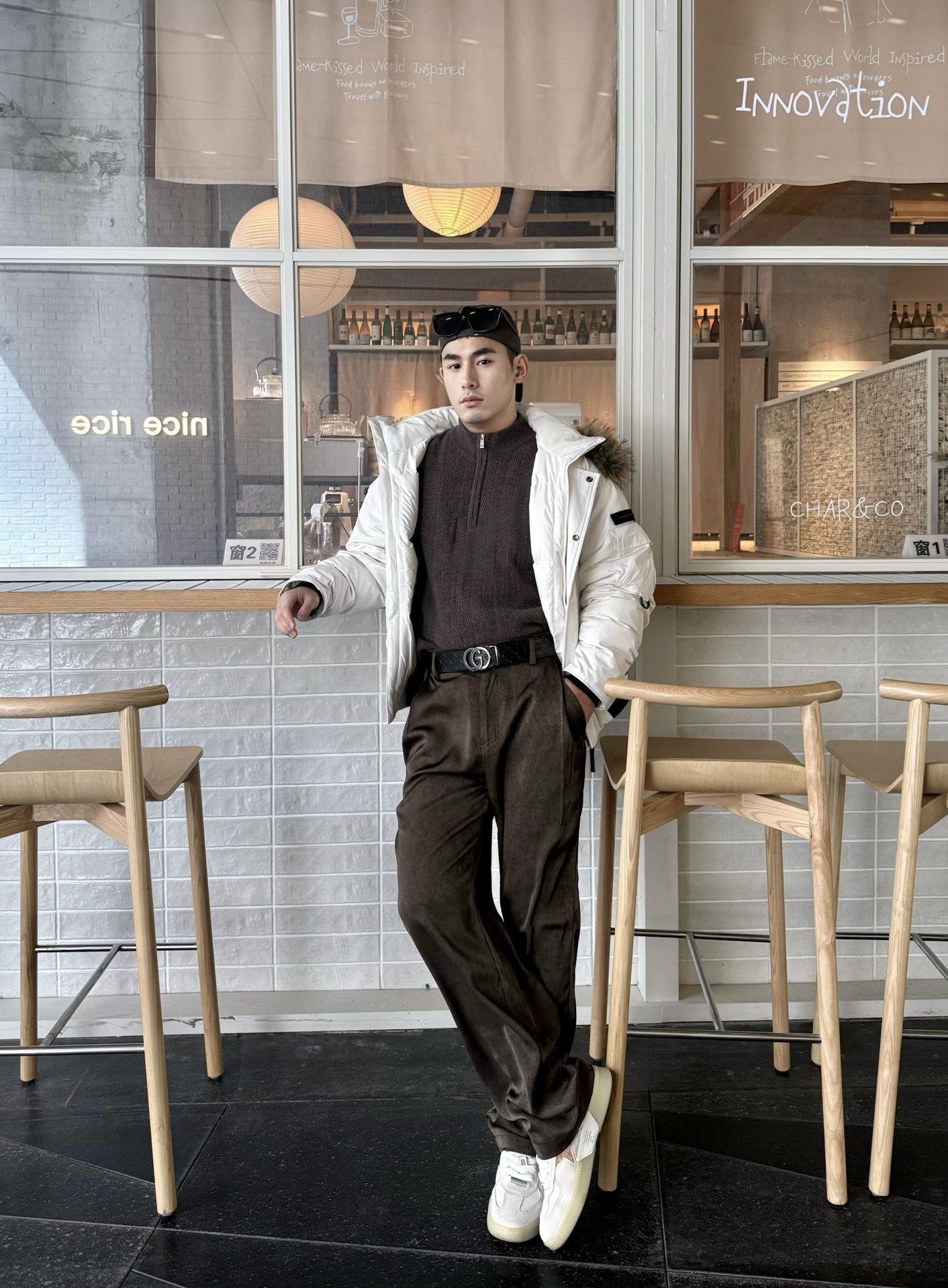 冬日暖棕系穿搭,简约松弛又不失高级感。白色羽绒服清爽明亮,内搭同色系毛衣与直筒裤,层次感十足。POLOMEISDO的皮带头非常有设计感,皮质也很柔软,整体低调提升质感,给穿搭赋予慵懒时髦感,更不费力出街!