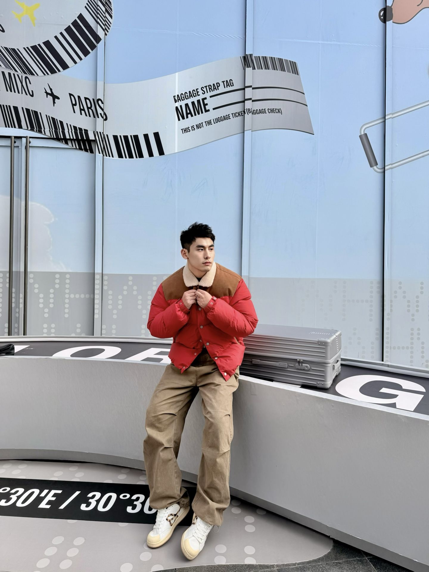 暖冬穿搭分享: 一件红白撞色羽绒服搭配卡其直筒裤,暖调又舒服,亮眼又利落。再一双白黄板鞋点缀,很有活力感!冬天穿非常亮眼!色彩也很明亮!这身冬日穿搭完美平衡温度与风度,用色彩碰撞穿出层次感,简约却不简单!
