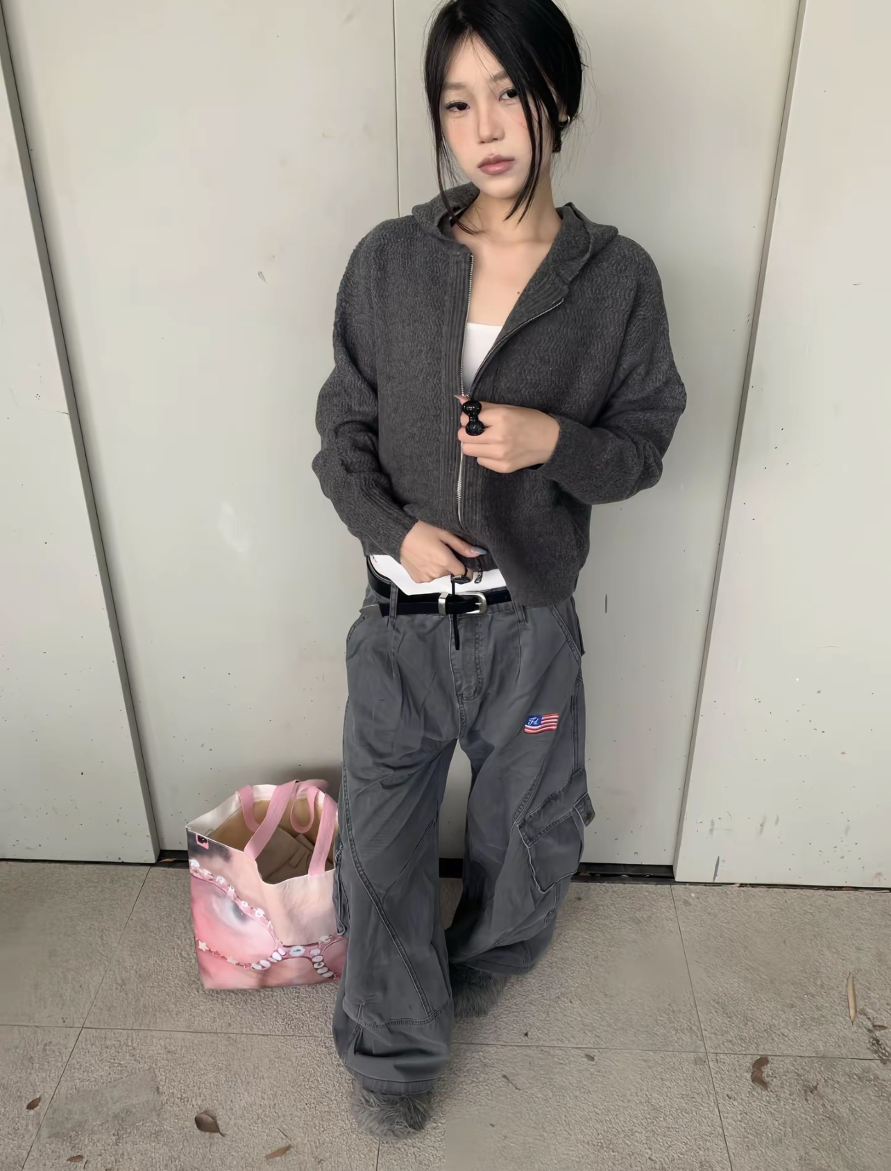 谁懂啊!这件灰调连帽开衫把“松弛氛围感”焊在身上了👇 软糯针织裹满全身,短款版型刚好掐出腰线,连帽+拉链设计又甜又飒,单穿内搭都能打——搭工装裤是清冷高街拽姐,配短裙又甜得毫不费力,随手一穿就是“毫不费力的时髦”! 灰调自带高级滤镜,显瘦还不挑皮,日常出街/宅家都能穿,软乎乎的触感直接把秋冬幸福感拉满!