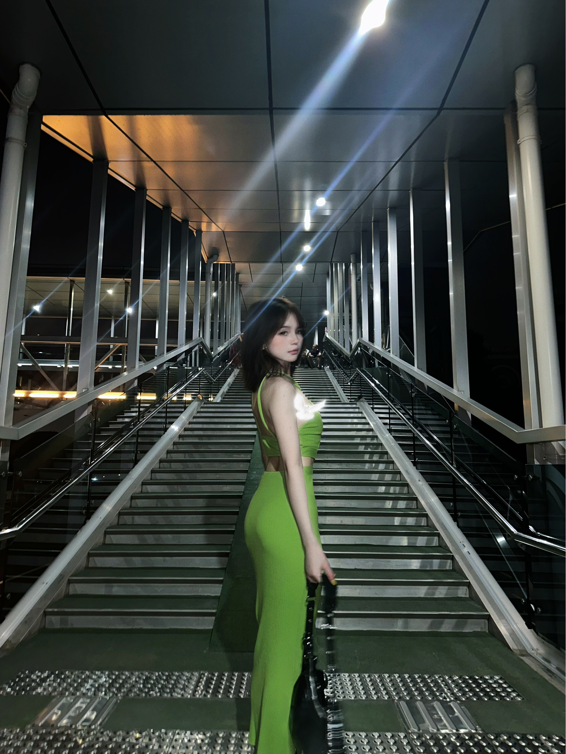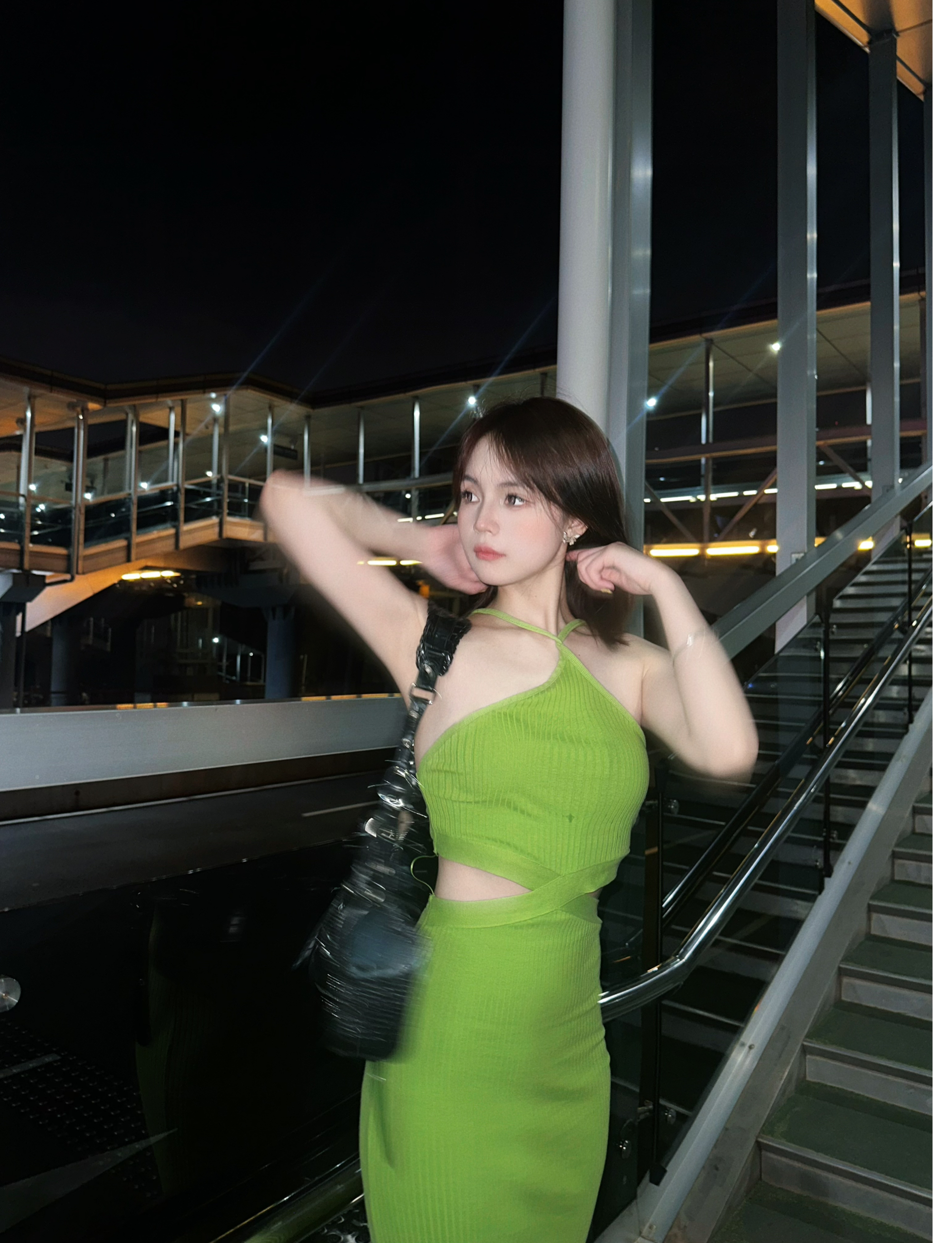 被ZARA这条挂脖绿裙美到失语!针织面料贴肤又显瘦,挂脖+腰侧挖空的设计刚好露对地方,显肩颈又藏不住的小性感~荧光绿自带“焦点滤镜”,晚上开闪光灯拍直接白到发光,配双细带凉鞋就能杀穿夜场!ZARA你是懂辣妹的,这波直接把秋夜氛围感拉满!