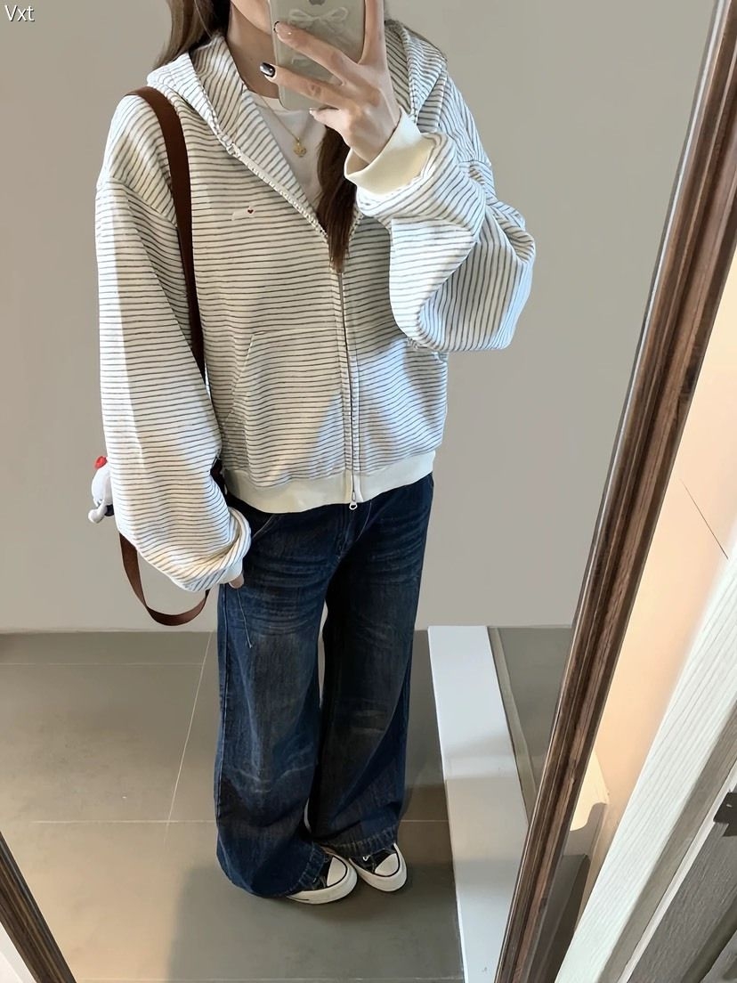 ✨甜度超标の奶fufu卫衣来咯✨ 宝子们!这件自带春日滤镜的白卫衣真的太懂少女心啦~软乎乎的亲肤面料,贴身穿像被云朵裹住,糯叽叽的触感谁穿谁上瘾😜 胸前的蓝色手写体印花超有设计感,搭配小徽章贴标,甜酷感拿捏得刚刚好~宽松的版型对各种身材都超友好,藏肉显瘦一级棒,梨形身材、微胖姐妹闭眼冲! 搭粉色休闲裤是元气甜妹,配牛仔裤又秒变韩系学妹,单穿内搭都好看✨春日出门遛弯、咖啡探店、宅家追剧穿它,舒服又出...