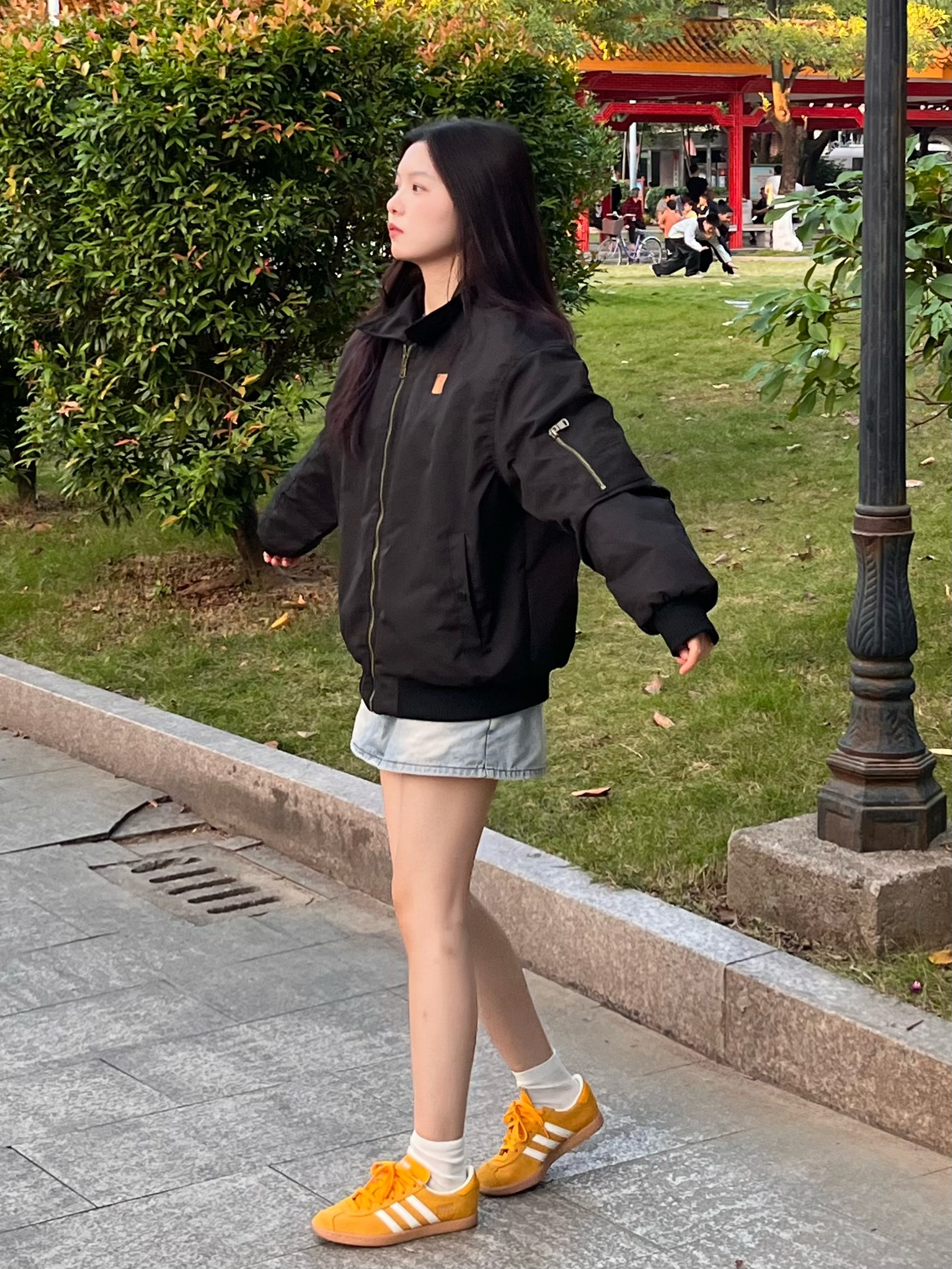 姐妹们!这套穿搭公式我真的说累了✨ 黑色宽松外套版型超正 不挑身材还显瘦 搭配短裙营造层次感 重点来了——脚上这双亮黄色阿迪板鞋👟 瞬间提亮全身 沉闷感全无 最关键的是 这套单品都很百搭 拆开也能配其他衣服 性价比拉满 你们最近买到最满意的穿搭单品是什么? 求安利!👀