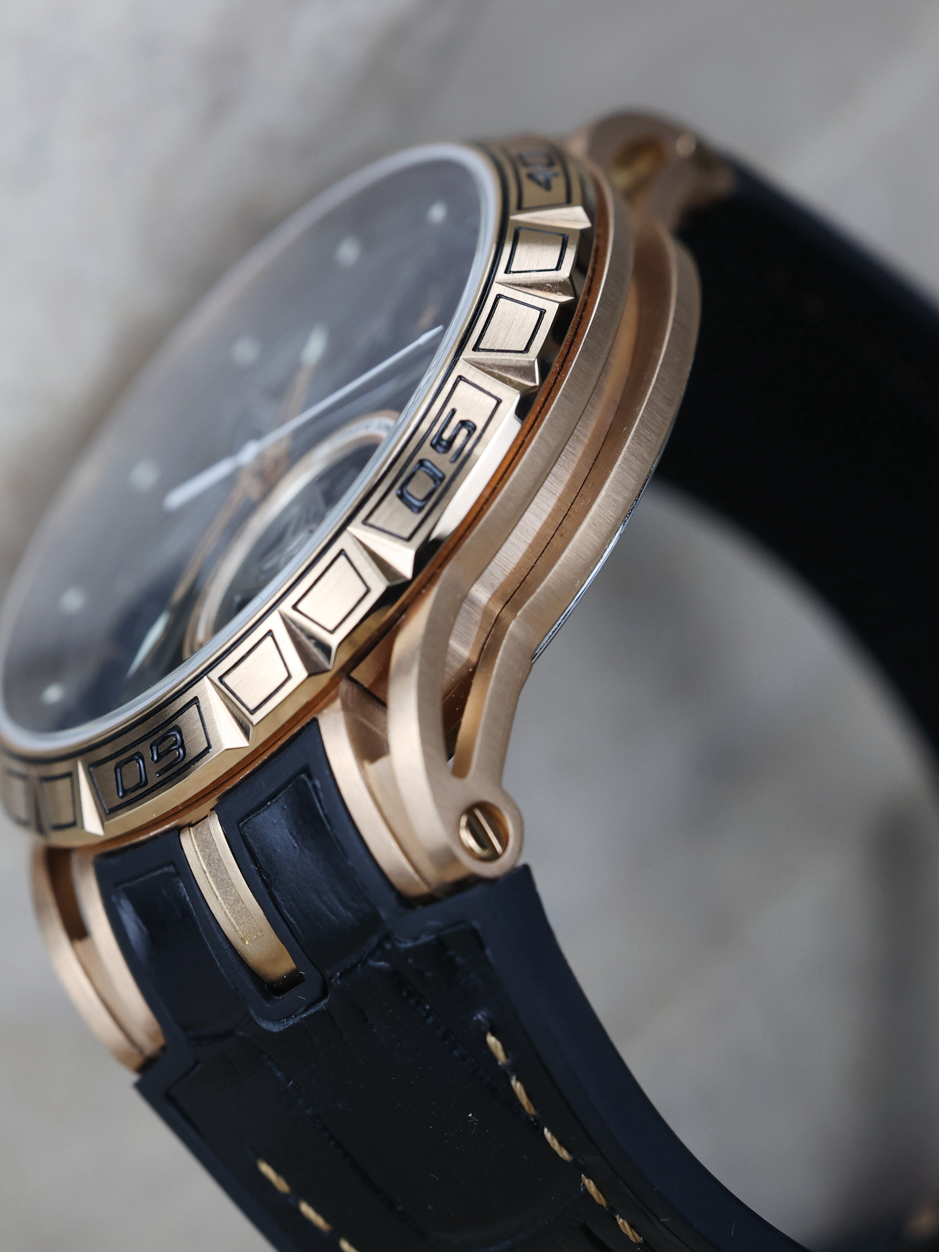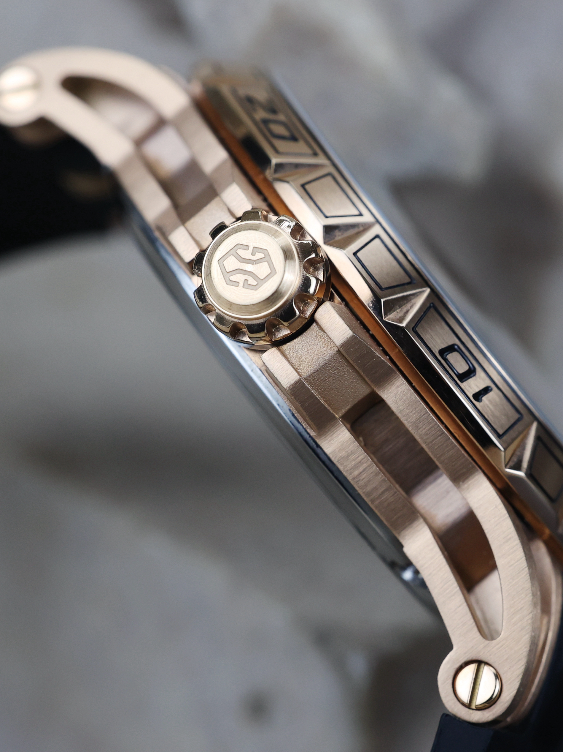 喜欢这块手表的起因,还真是因为这个表冠的质感,后来才发现它的镂空效果也挺漂亮,有种机械框架的感觉,让我一眼望去就有种荷尔蒙爆发的冲动,真是爱了~