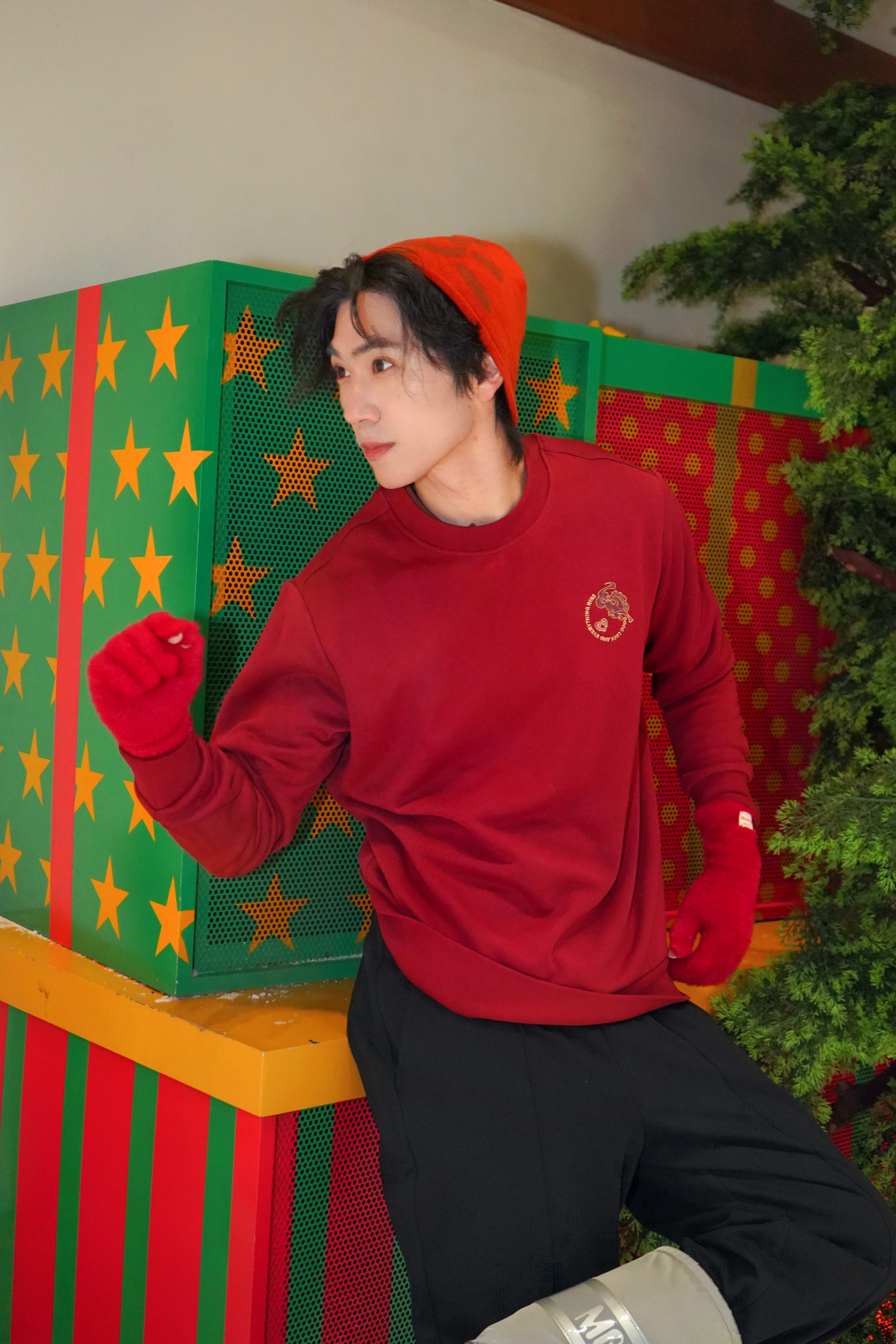 懂潮流趋势的已经开始预制圣诞照片了, 而我的cnyootd混入圣诞氛围了, 柔系美式风的暖冬look上线, 像是落雪下温柔的神, 🌰亮红色和温暖冬日中的雪季更配噢, 黑色卫裤配上雪地靴, 经典黑红银色, 超喜庆超帅气!这回头率💯包的!
