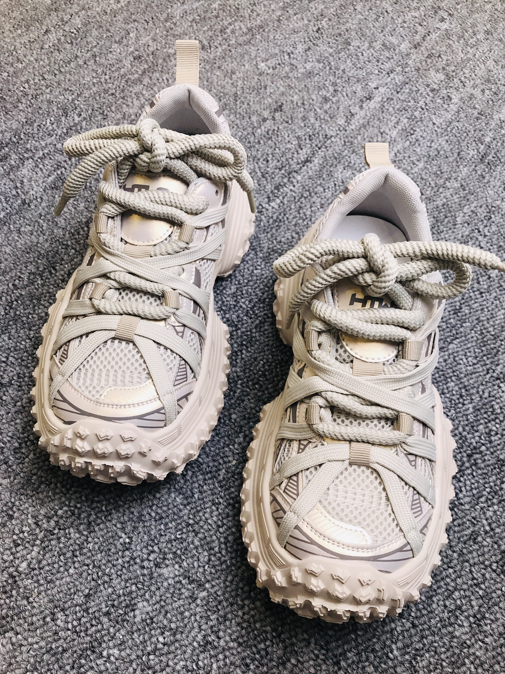 这双 Hotwind/热风 5cm老爹鞋直接是小个子穿搭宝藏 立体镂空鞋面透气不闷脚,鞋头也不会挤脚趾,耐磨橡胶底雨天防滑稳稳的 低帮设计露出纤细脚踝,米白配色自带清冷滤镜 配阔腿裤秒变清冷系通勤人,搭碎花裙碰撞甜盐反差萌。5cm增高悄悄拉长腿型