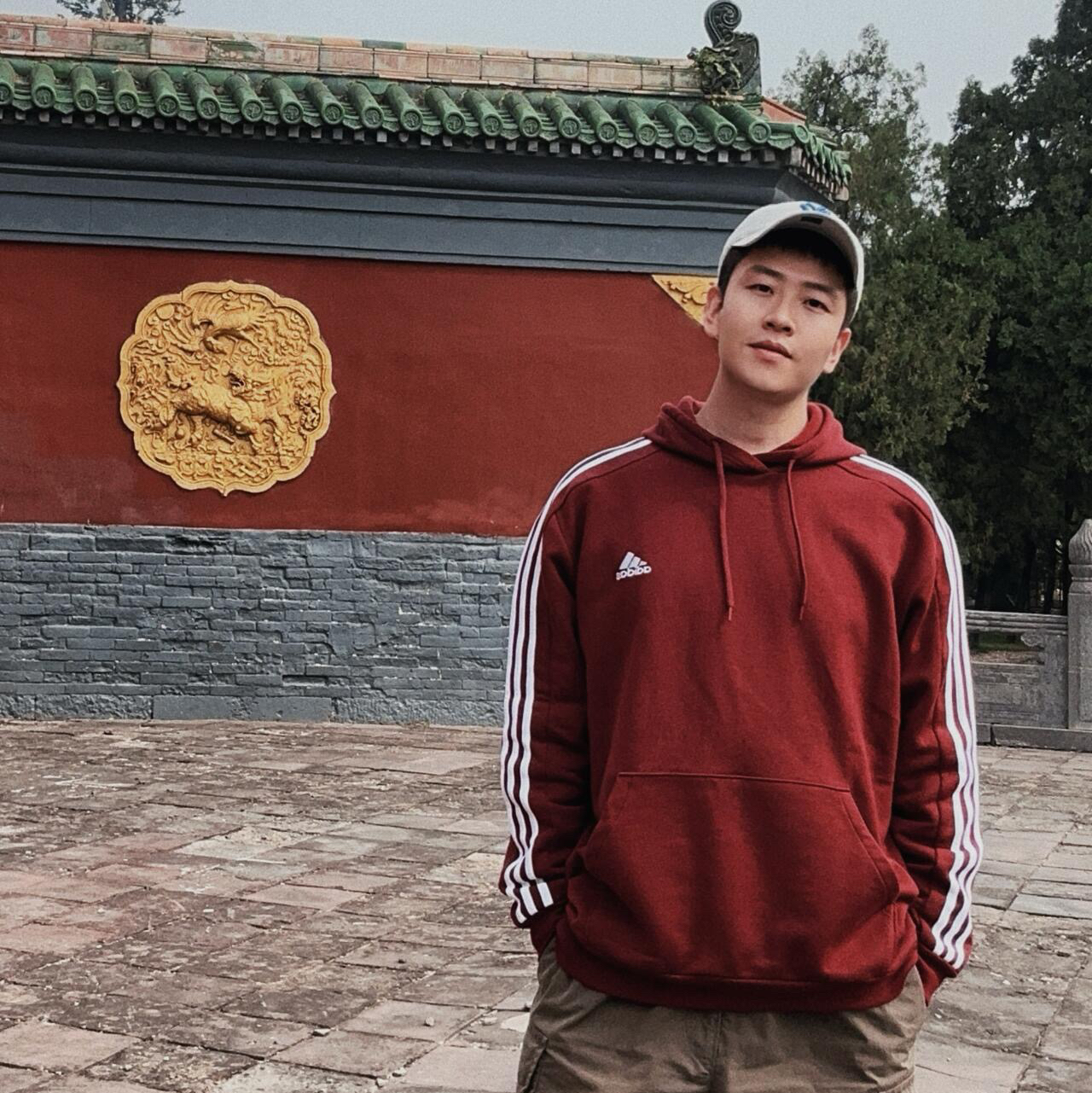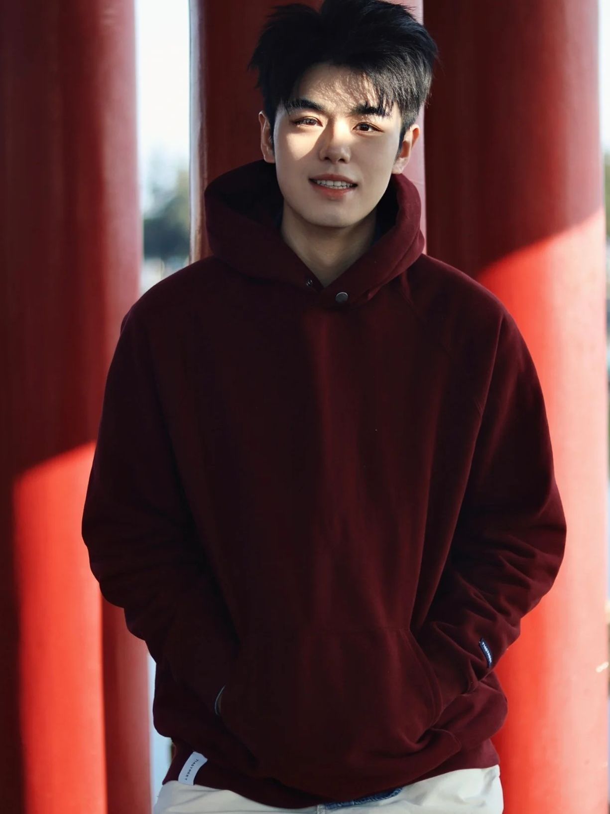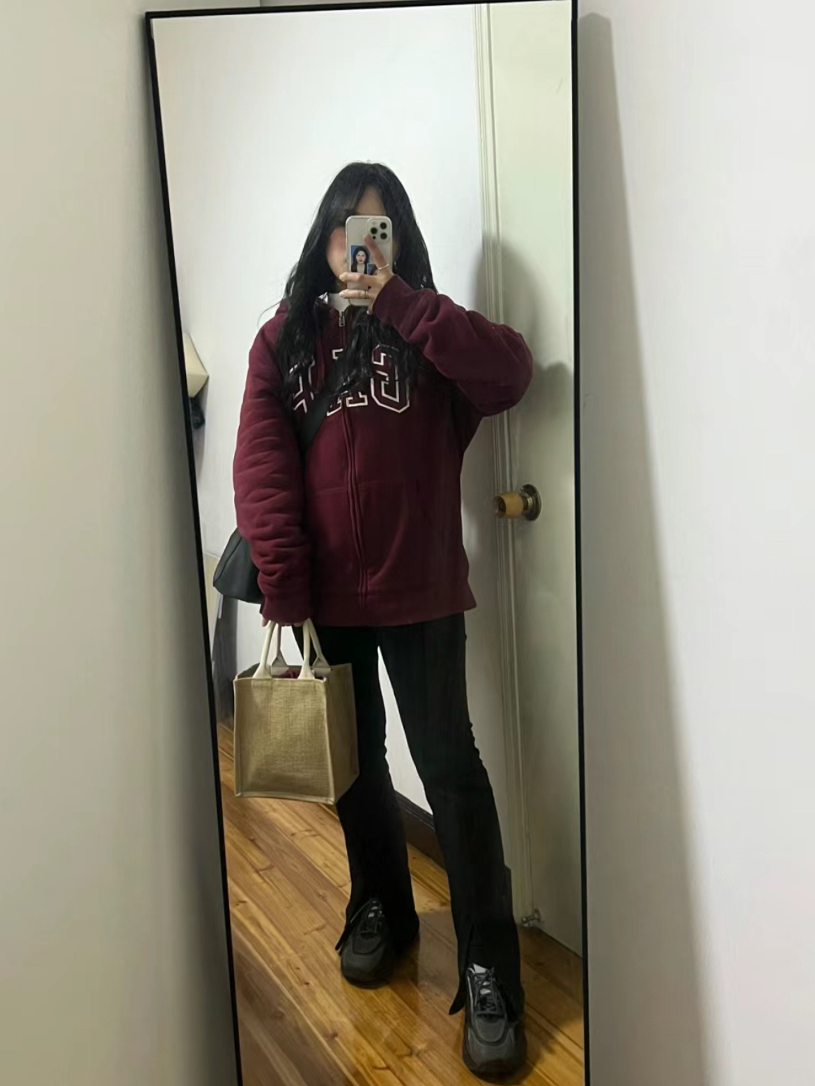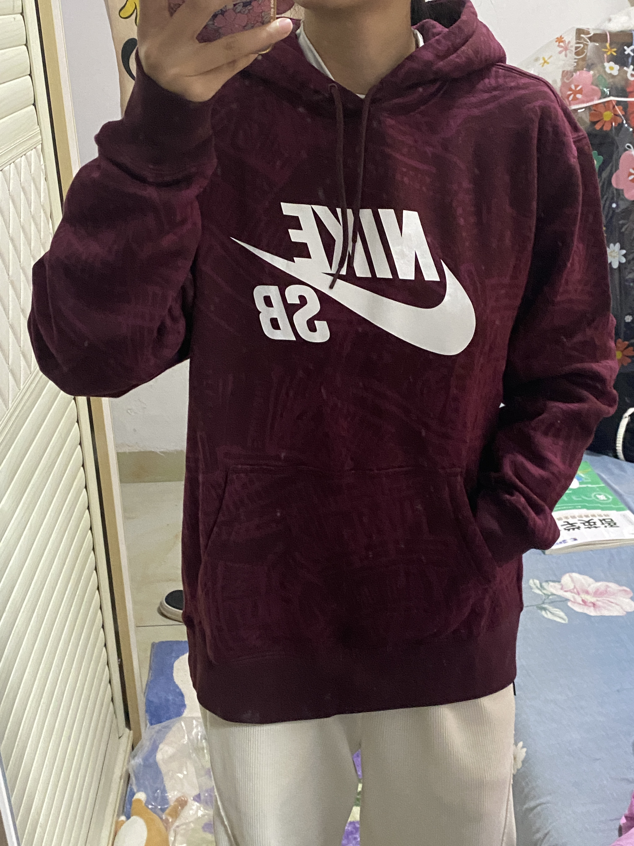身高|体重:160cm|55kg 👔 上衣:酒红色阿迪达斯卫衣 👖 下装:黑色裤子