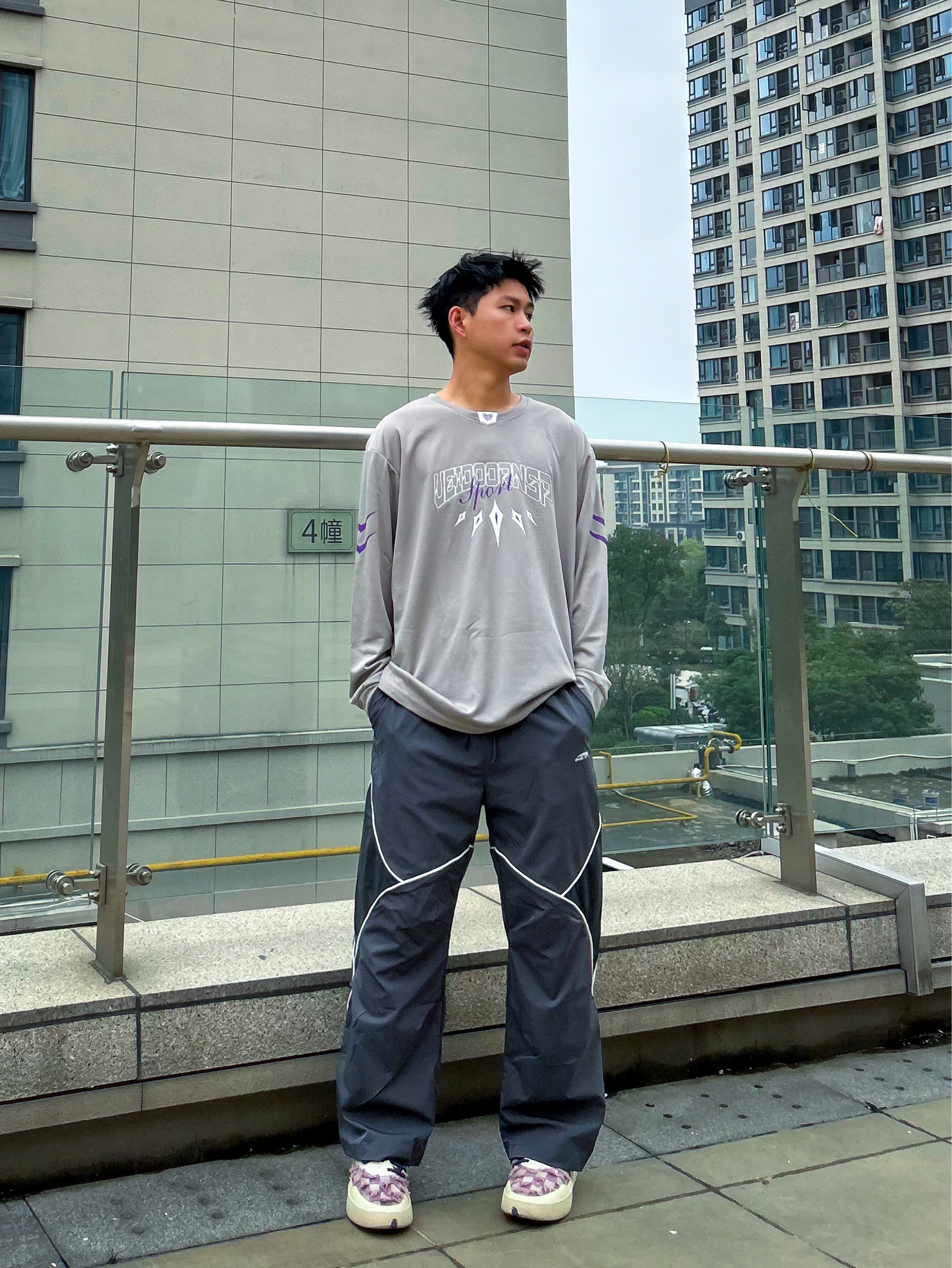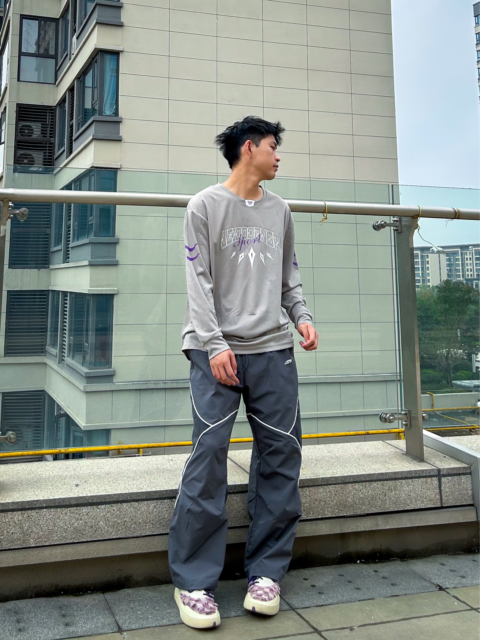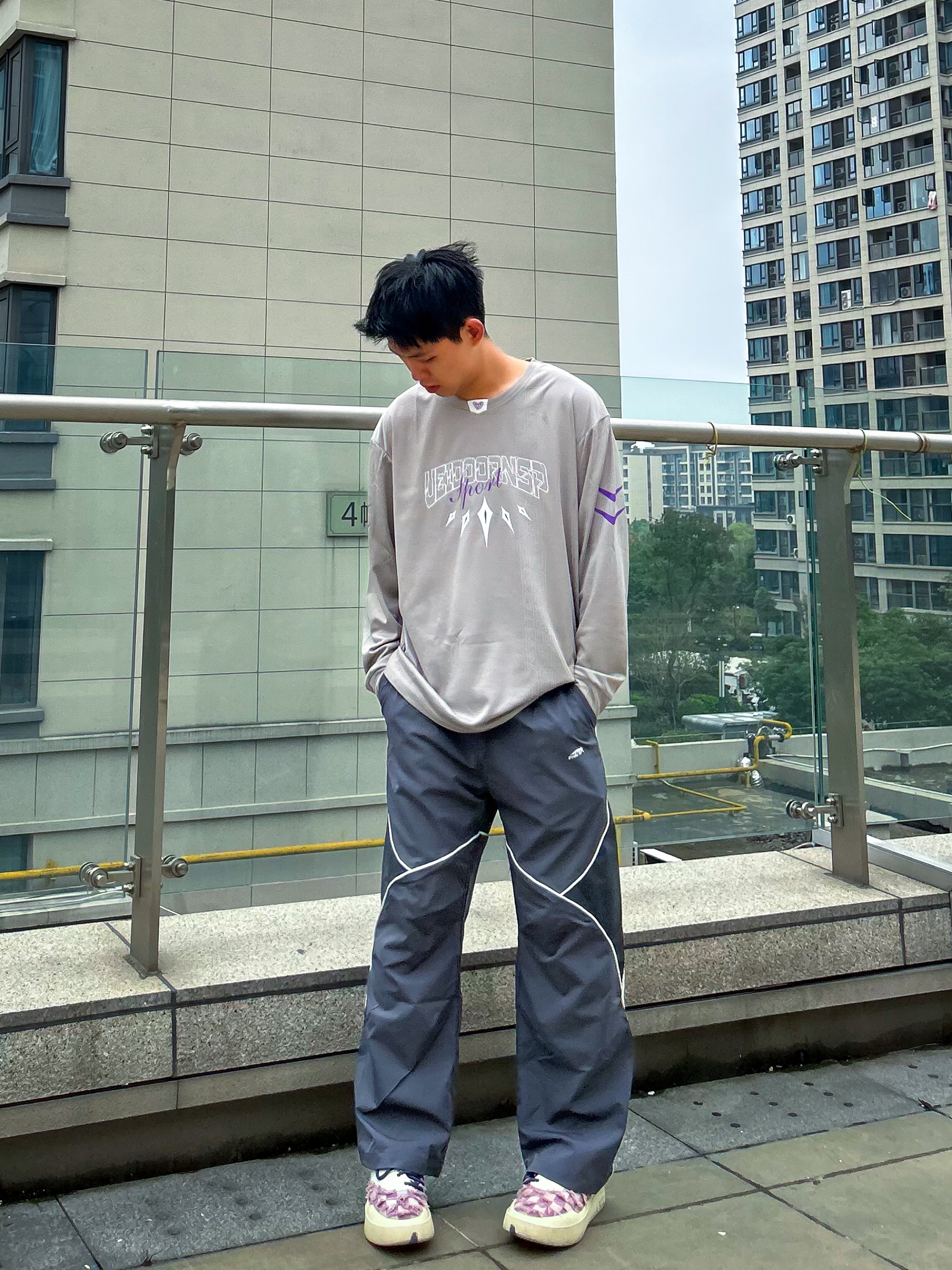 哈咯,这里是爱打球爱穿搭的卢_SG 年度穿搭运动休闲穿搭分享! 上身搭配一件灰色印花长袖 下身选择的是 维动 VEIDOORN 梭织运动长裤 深灰主色搭配白色线条设计,几何拼接超有设计感! 宽松版型和立体剪裁真的显瘦又显腿长! 梭织面料,舒适透气,运动时穿也完全无束缚! 日常搭配休闲上衣或打球时的运动装都是很好选择! 潮流感拉满,真的谁穿谁帅! 整体协调又有层次感!