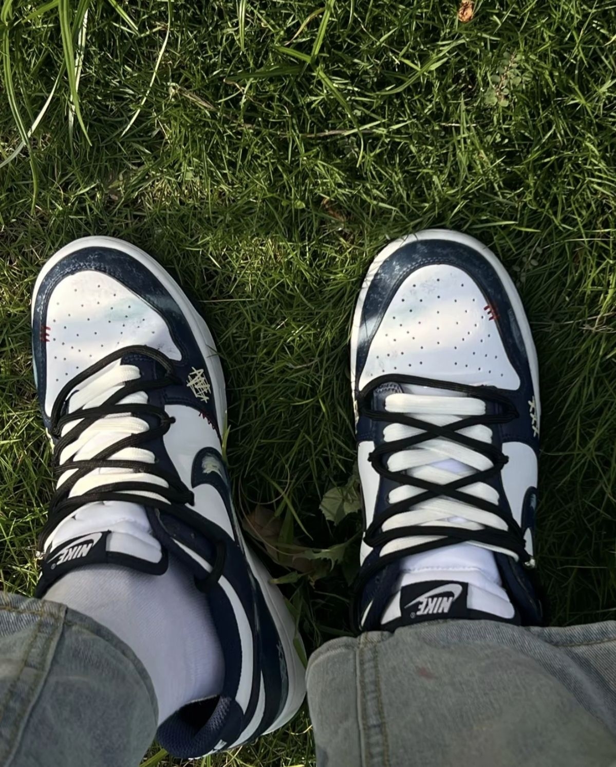 本篇笔记关联了【定制球鞋】 Nike Dunk 板鞋 平跟系带防滑耐磨做旧高街简约百搭潮流复古美式 靛蓝笔触等商品,为用户提供真实的使用体验和购买参考。