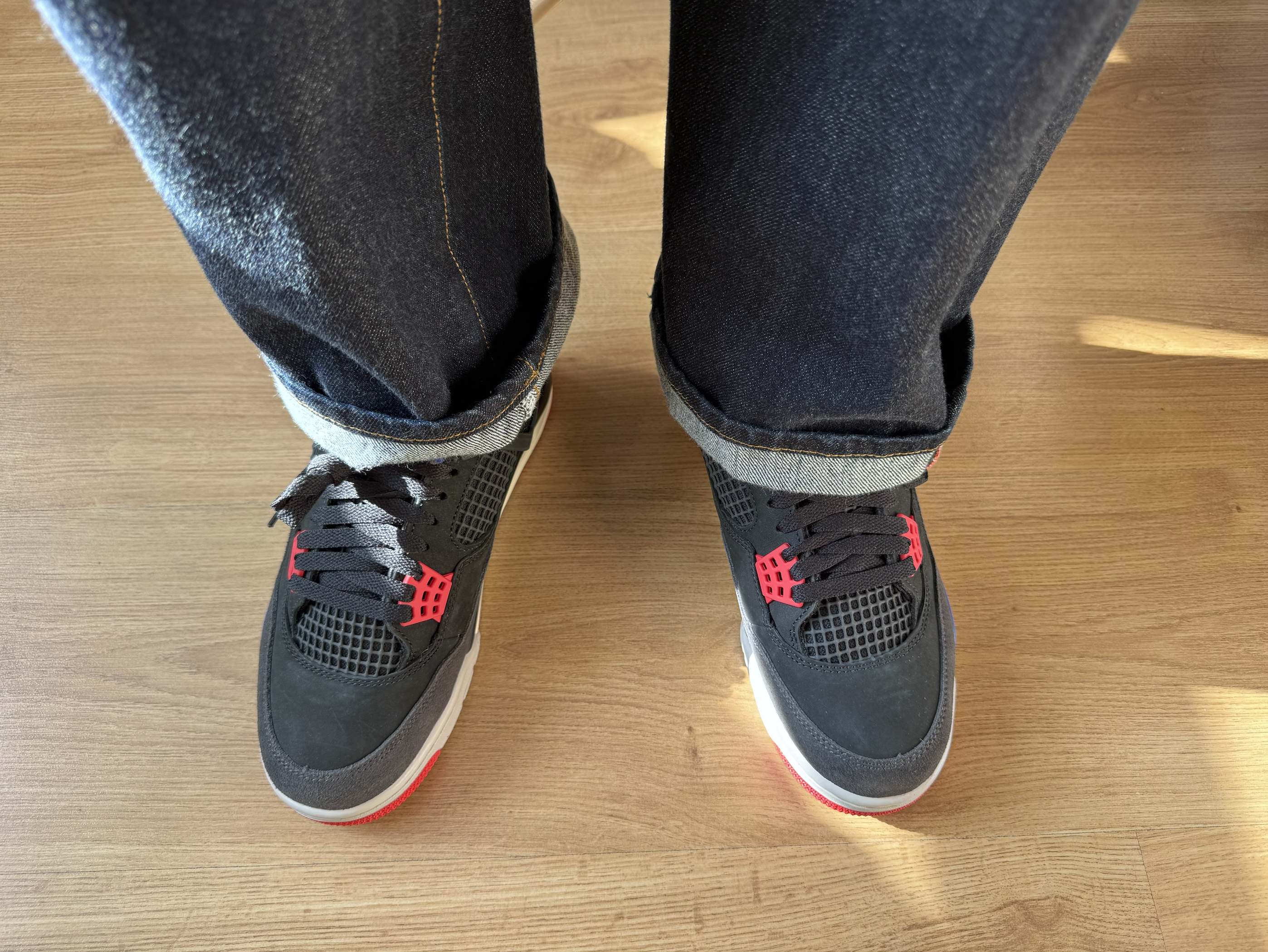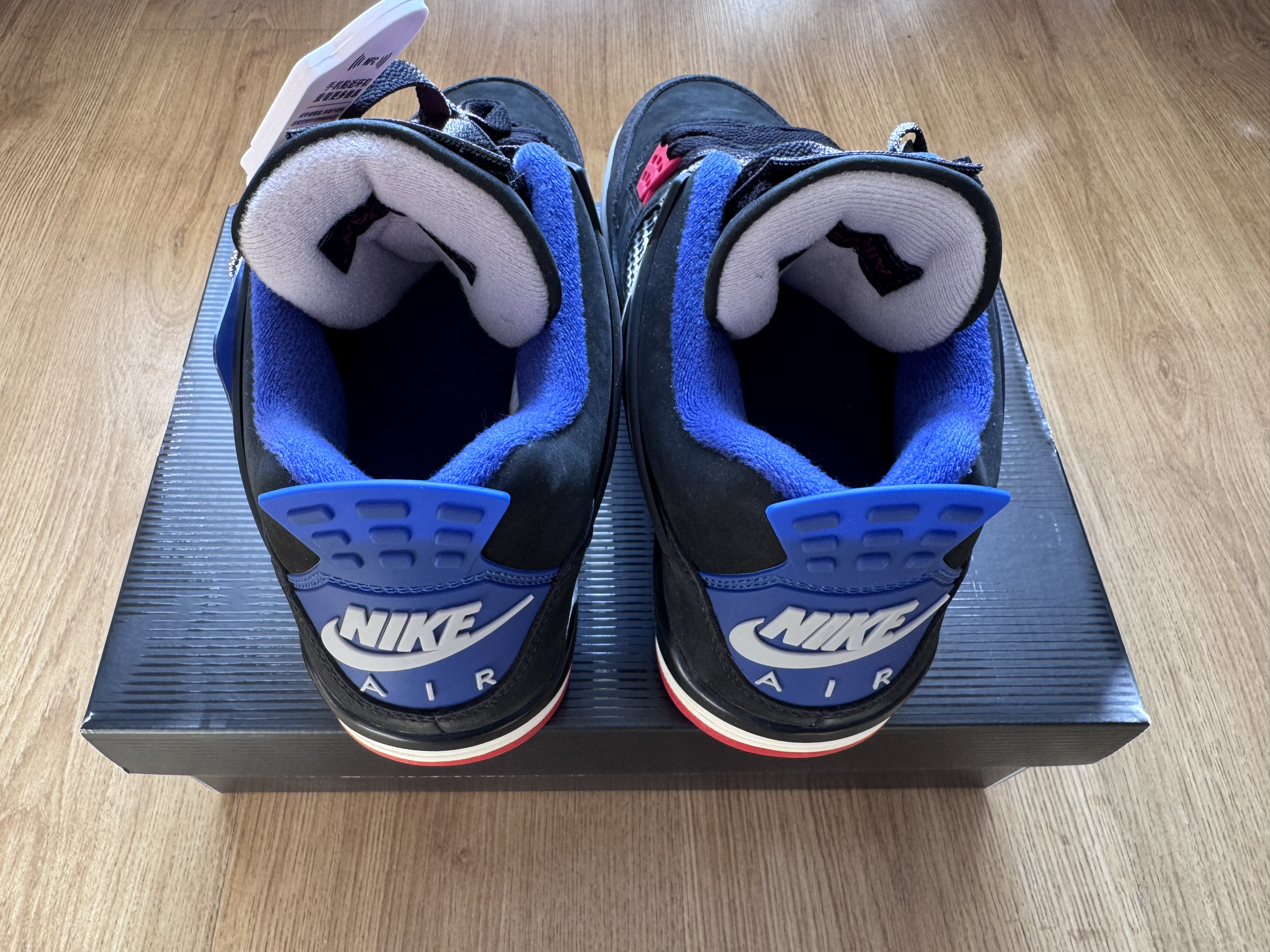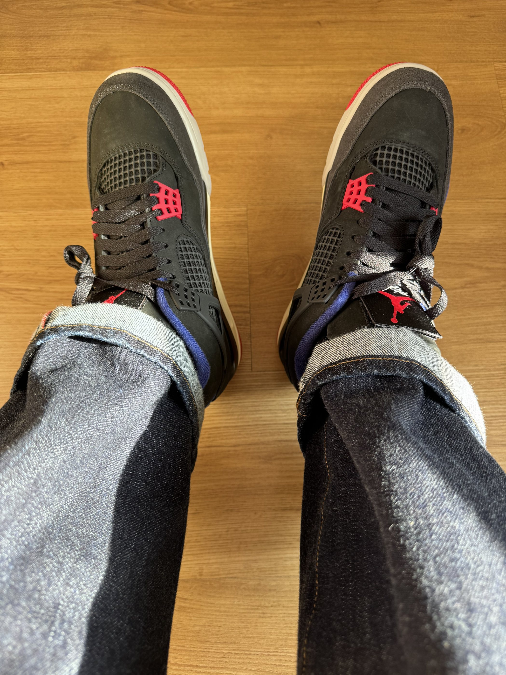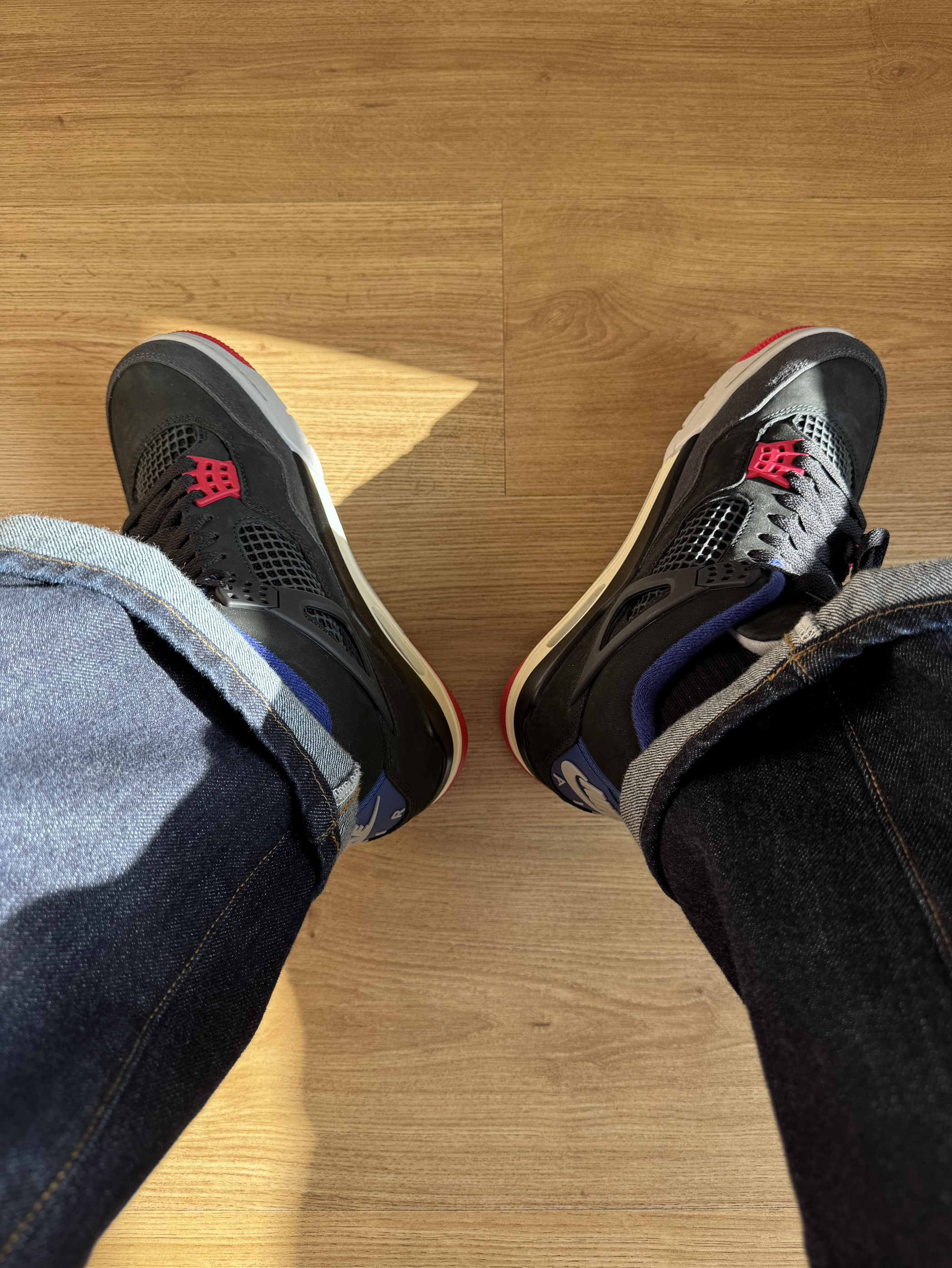 鞋:Jordan Air Jordan 4 Rare Air Laser 谁能拒绝一双“百事可乐”版的aj4呢,蓝红配色真是靓到我的心巴上,上脚好看足够惊艳,穿上“百事可乐”百事顺遂,鞋很厚适合秋冬且百搭! ⚠️鞋盒封面有亮点 ⚠️鞋舌魔术贴(我是银标,没中金标,甚是可惜) ⚠️脚宽拍大一码