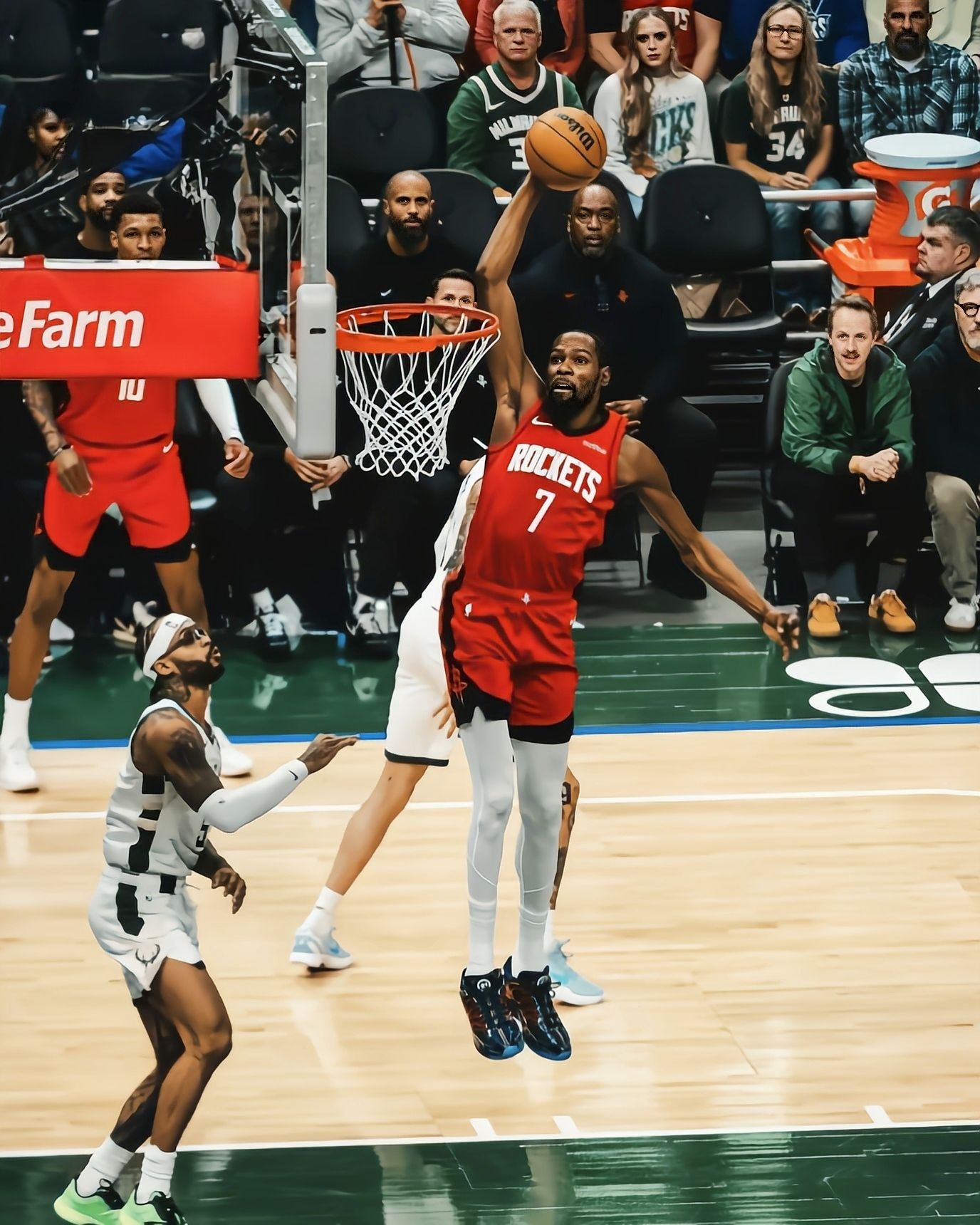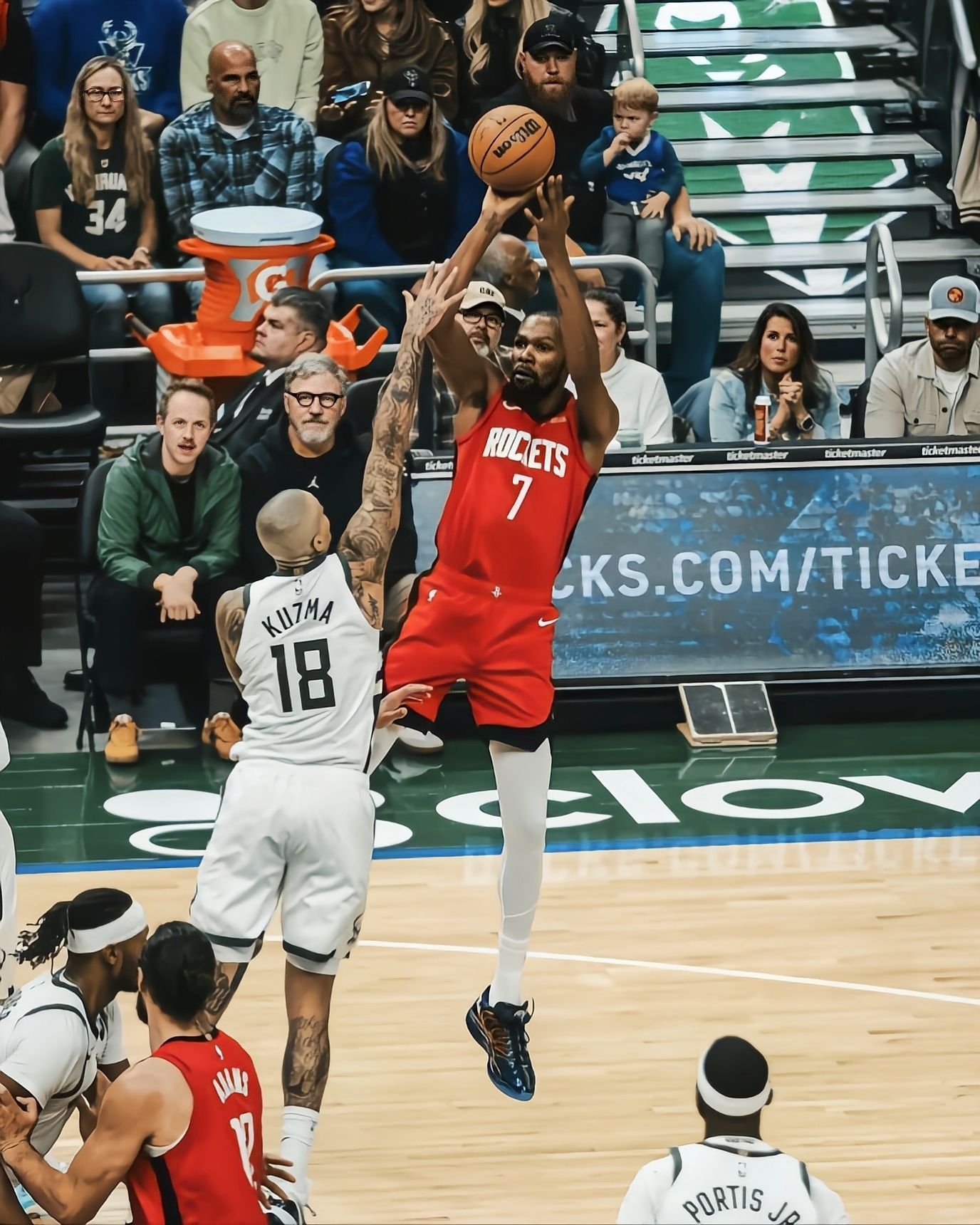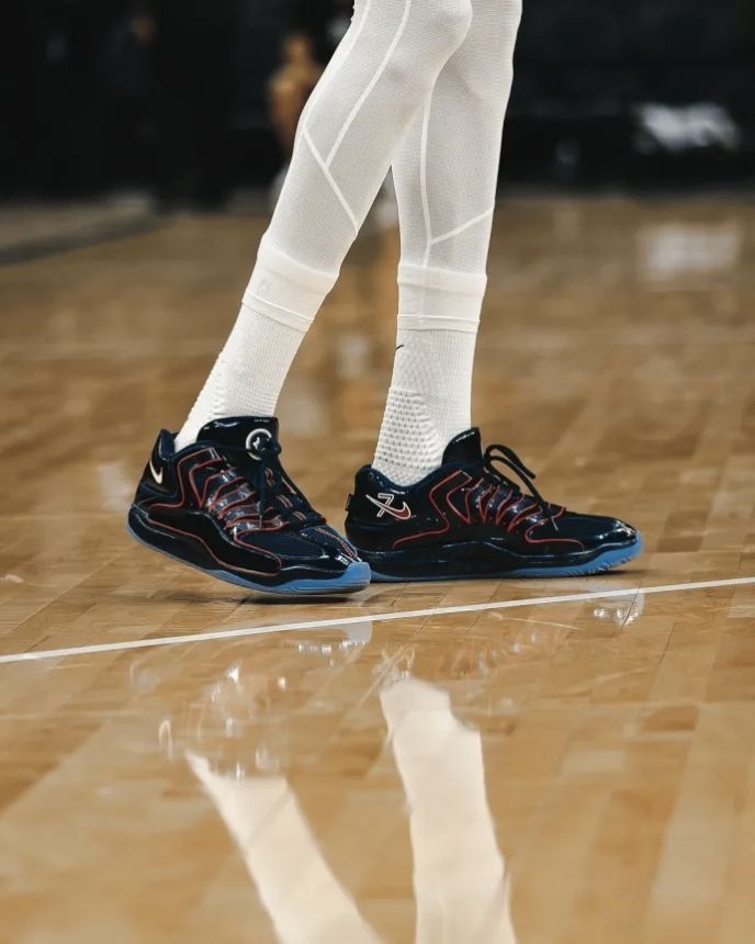 看阿杜穿这双KD18“PSG”打比赛,直接被这鞋的脚感戳中了——毕竟是给杜兰特量身调的鞋,完全适配他那种丝滑的持球和投篮节奏。 先讲实战体验,中底是那种“软弹但不拖沓”的调调,不像有些鞋踩上去陷得深,阿杜接球投篮的那一下,脚感反馈特别跟脚,起跳的时候回弹给得刚好,不会卸力。抗扭这块也够稳,鞋身侧面的支撑片虽然看着薄,但变向的时候脚在鞋里一点不晃,像阿杜这种大幅度的试探步后突破,安全感直接拉满。...