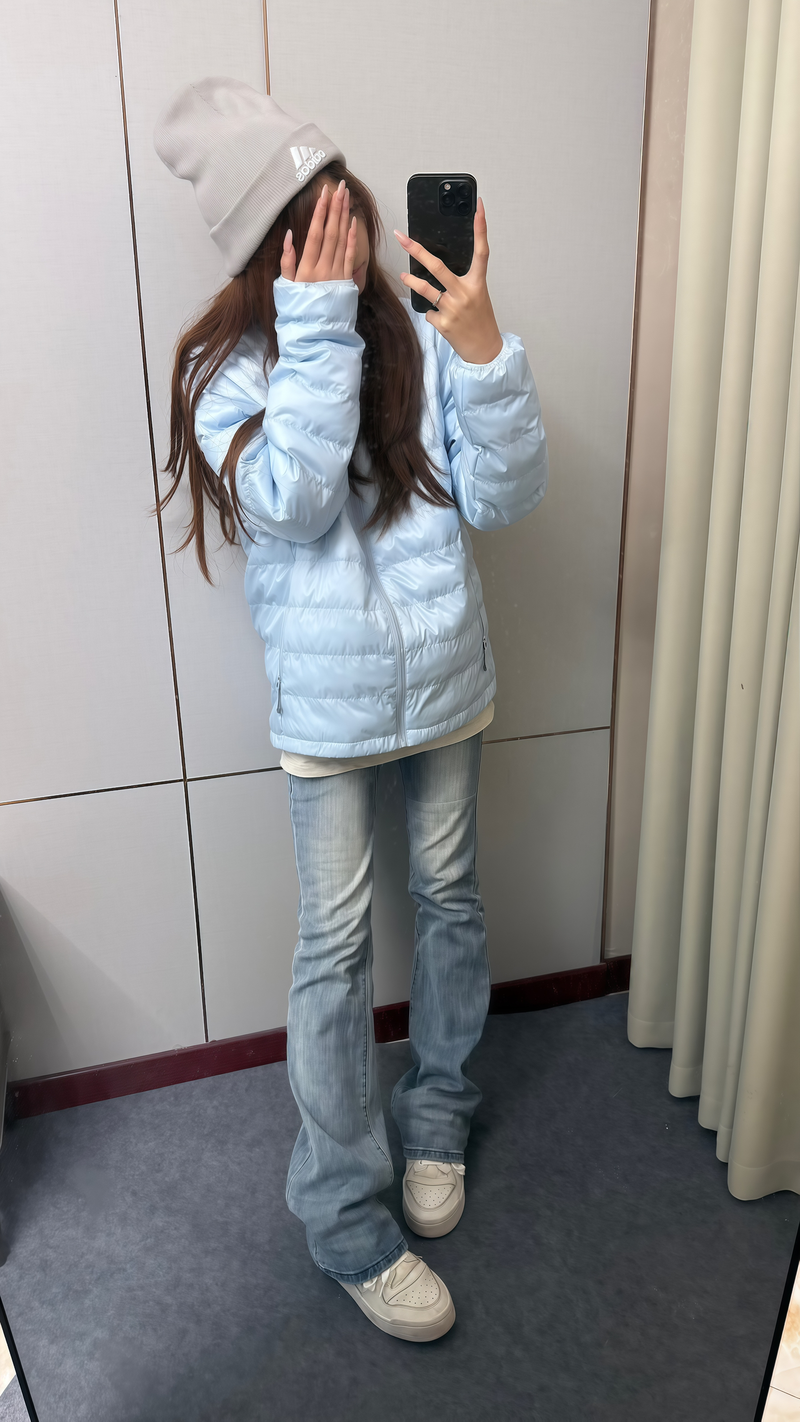 秋冬穿浅蓝色真的好奶乎乎的呀~真的嘎嘎适合学生党萌妹子们穿!
