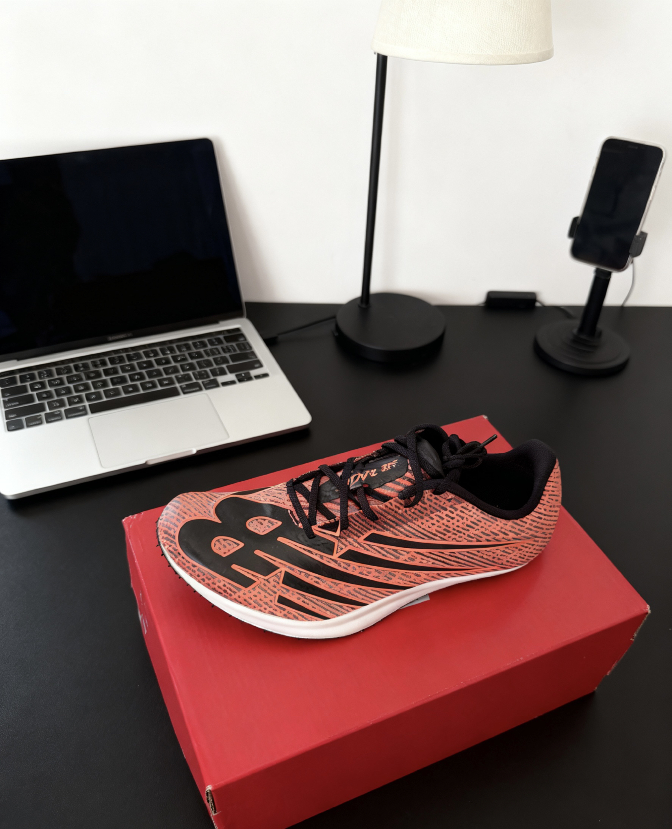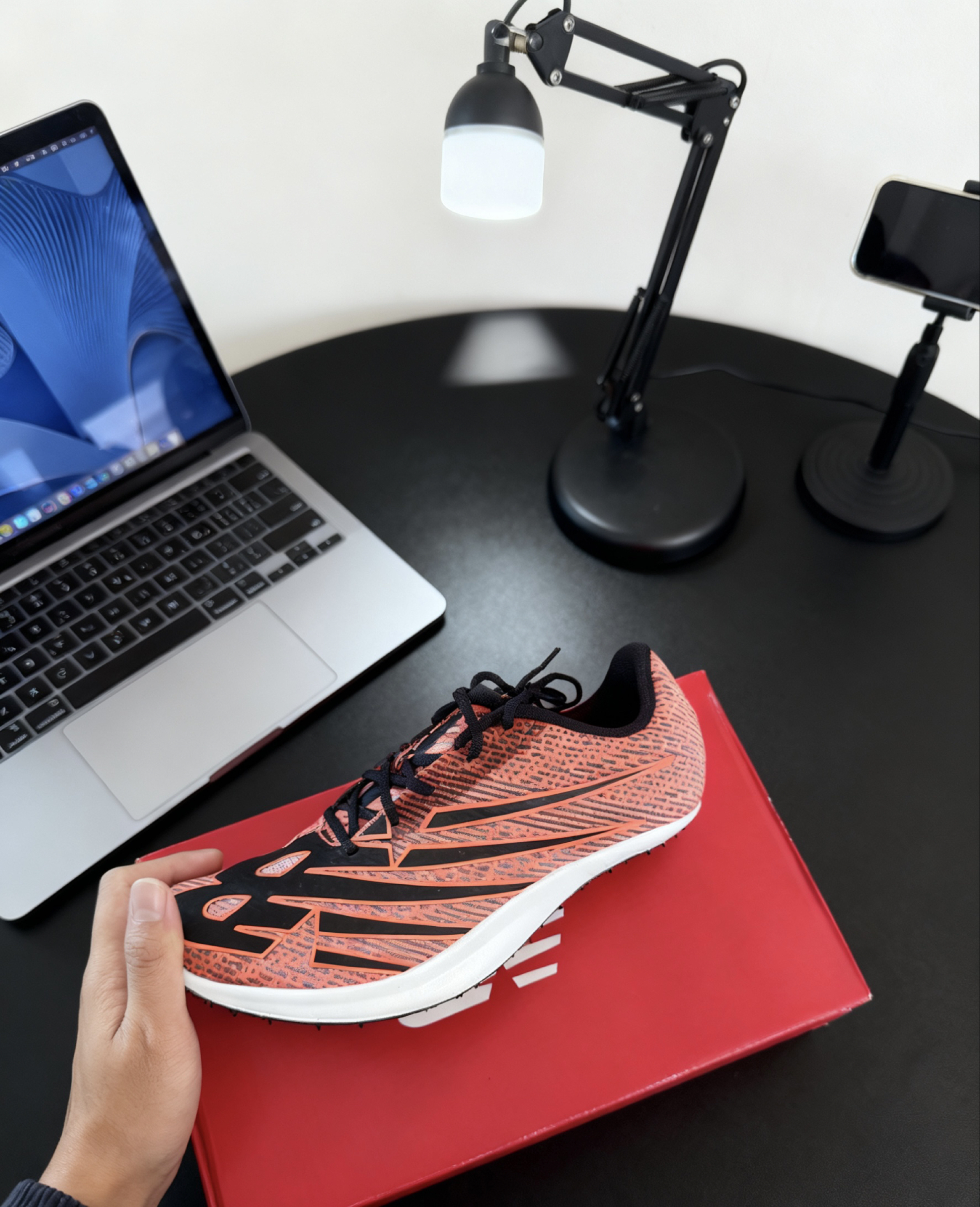 这双新百伦竞速鞋上田径场太炸了!橙黑撞色在跑道上超惹眼,脚感轻得像没穿鞋,蹬地反馈巨直接,弯道提速时抓地力也稳,练短跑简直是buff加持。