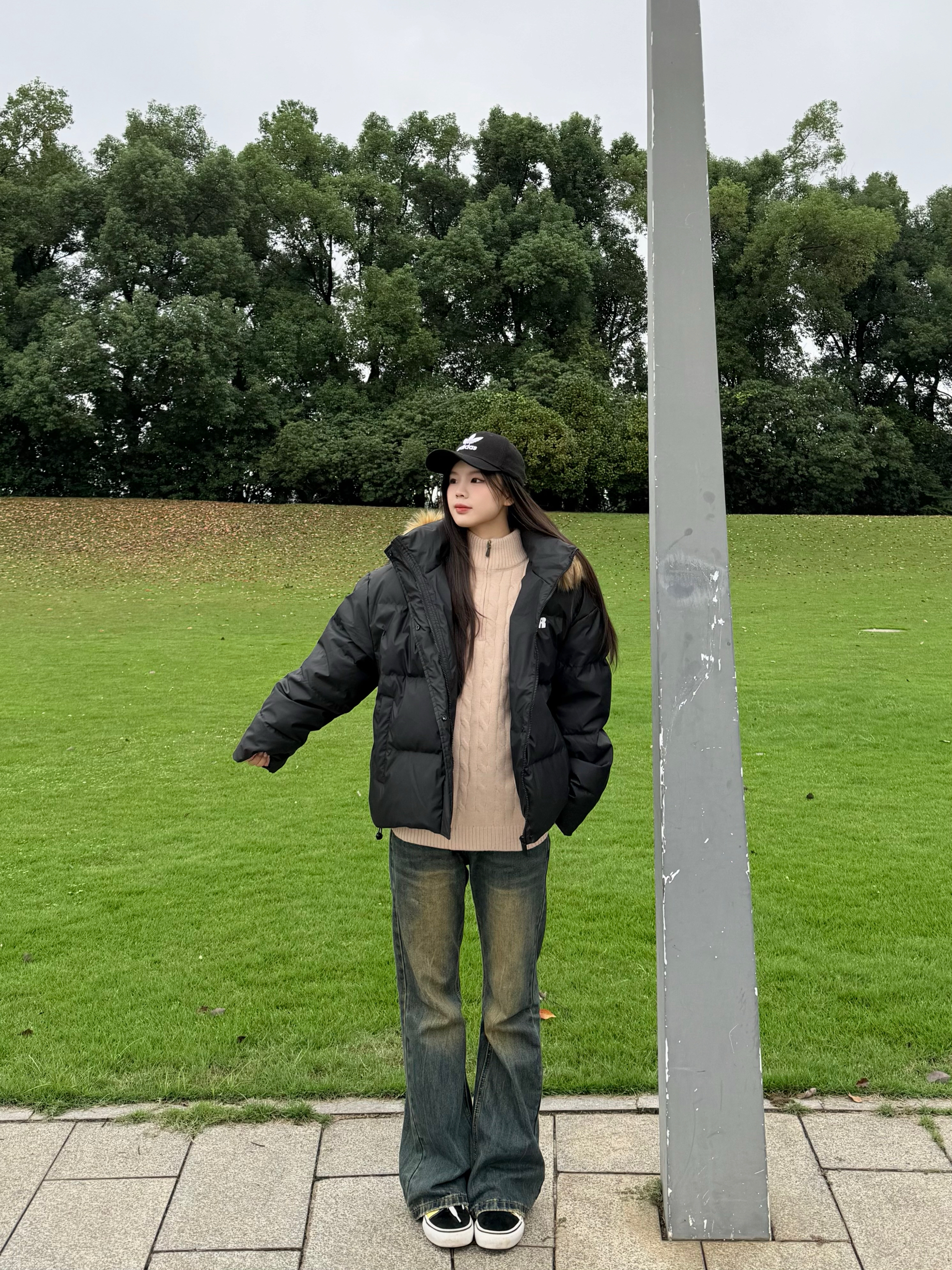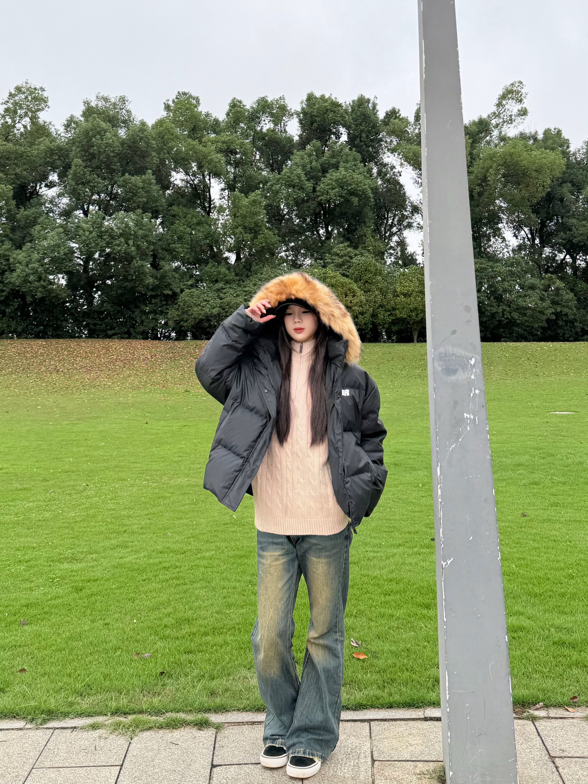 身高|体重:168|51 🧍♂️ 穿搭风格:复古街头风 👔 上衣:FDR 🧶内搭:拉夫劳伦 👖 下装:三叔 👟 鞋子:名创优品 谁懂啊家人们!最近降温直接把我冻傻,这套穿搭救了我老命~ 黑色大毛领羽绒服又暖又酷,这个毛领真的很显脸小!内里搭个温柔的针织衫,层次感不就来了~ 再配条做旧阔腿牛仔裤,拉高腰线还遮肉,脚上踩双撞色帆布鞋,休闲感拉满~ 你们秋冬都爱怎么搭?快分享给我抄作业👇