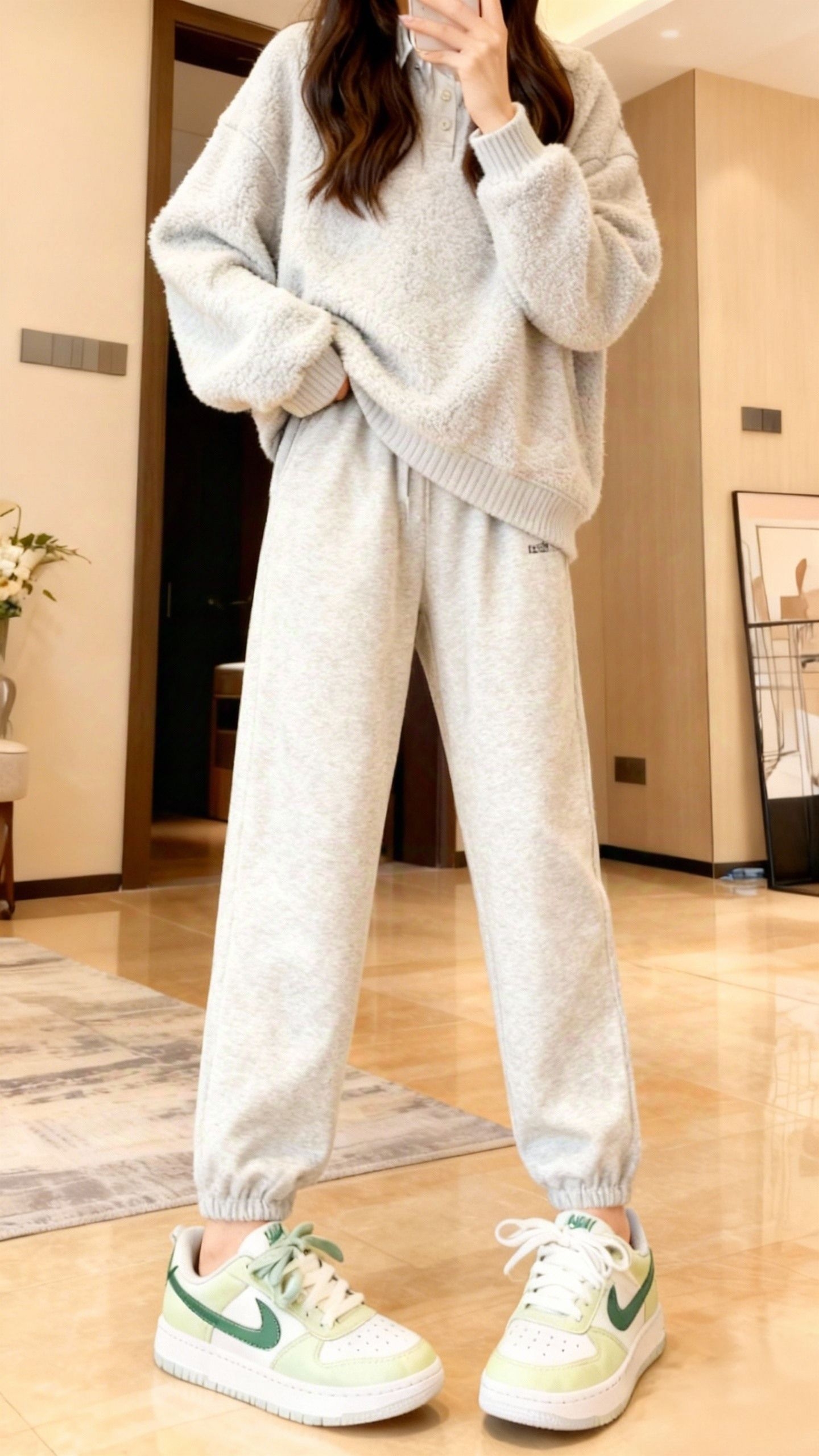 这双Nike薄荷绿板鞋太好穿了!冬天穿毛绒卫衣配百褶裙搭它,直接就是甜妹本妹,换条同色卫裤也好看,早上赶课、上班挤地铁,脚一伸就穿上不用磨蹭,这鞋底防滑得很,踩冰面、湿地板都没摔过,溅上奶茶咖啡拿纸一擦就没印,穿上轻得跟没穿鞋似的,走一天路脚都不酸,女生穿刚好合脚不晃荡,这薄荷绿贼显白,不管搭卫衣、裙子还是裤子都好看。