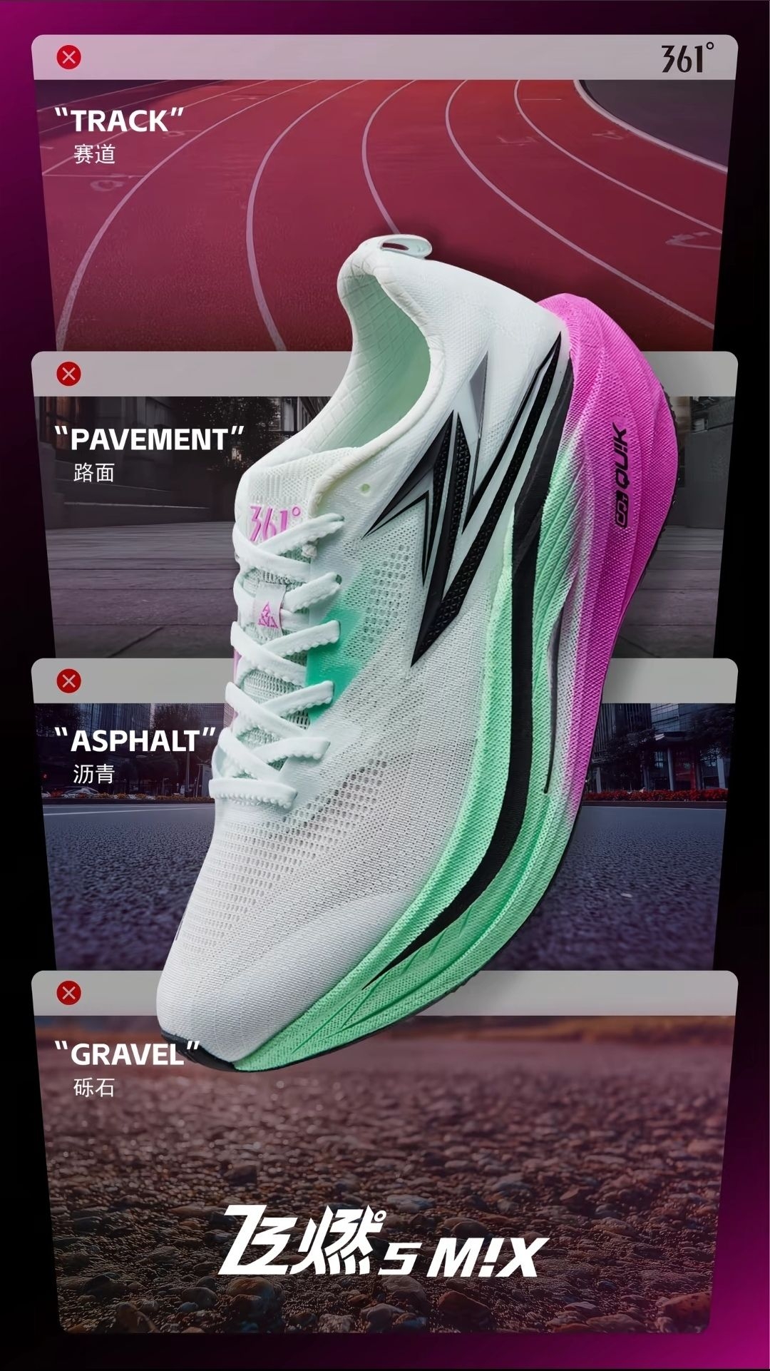 从飞燃的“速度与激情”,到栗蜂的“轻盈与浪漫”,再到大地的“日常与舒适”—— 361°跑鞋矩阵,不只是“一双鞋”,更是你跑步路上的“伙伴”: 它懂你对速度的追求,也懂你对舒适的渴望; 它陪你征服赛道,也陪你走过日常; 因为我们知道,“跑”的意义,从来都不止于“跑”, 而是“穿上它,你就能成为更好的自己”。