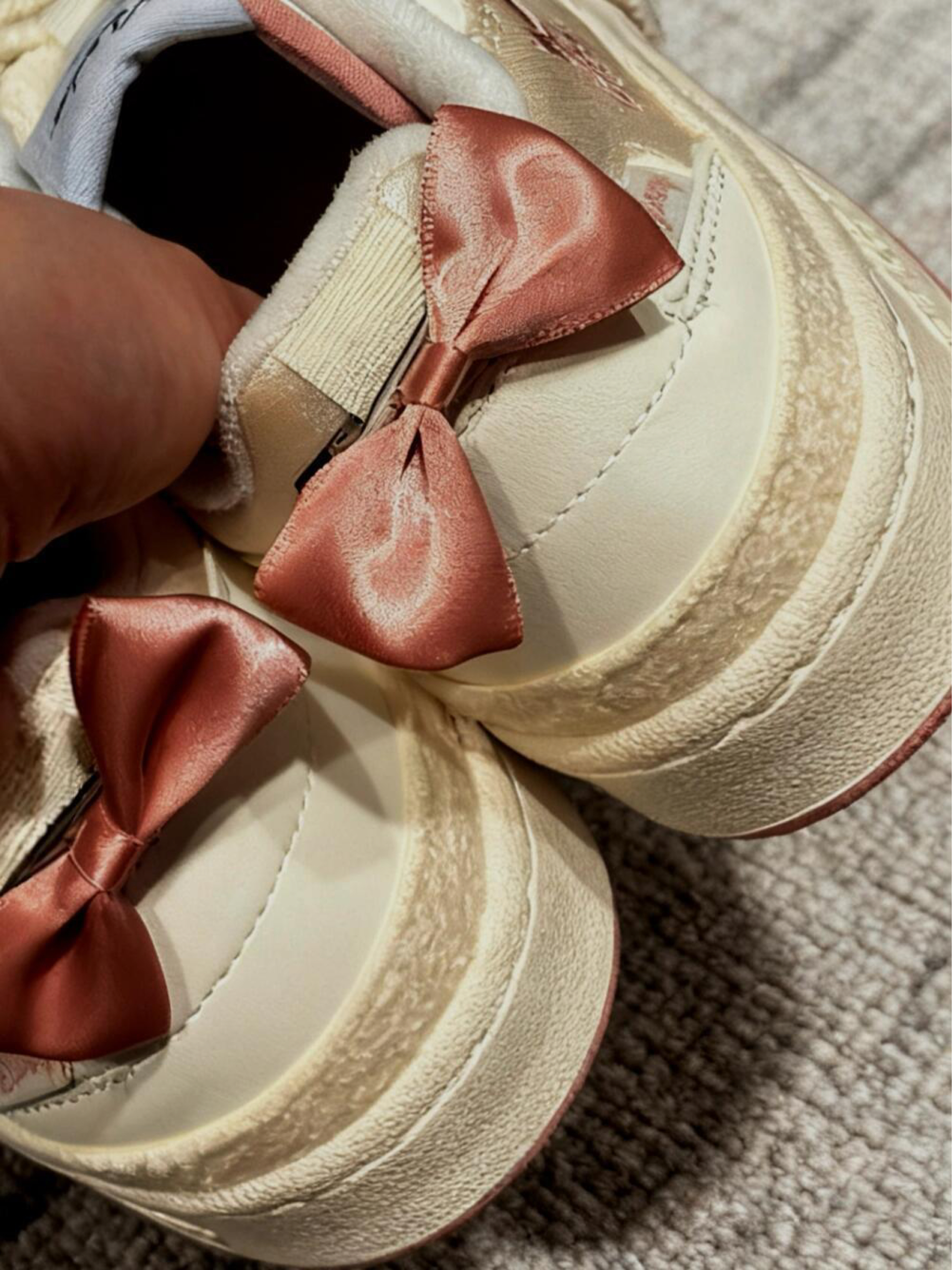 最近新入的这双奶白拼色板鞋,直接承包了我所有温柔系穿搭!分享一波上脚近两周的真实体验,主打一个甜而不腻、好看又好穿~ 第一眼就被鞋身的细节拿捏了:奶呼呼的米白色调,搭配豆沙粉的小刺绣和鞋后跟的酒红蝴蝶结,还有可爱的卡通小标签,甜感刚刚好,不会显得幼稚,日常穿温柔又有辨识度。 ✅ 超实用的穿搭小技巧: 1. 奶白+豆沙粉的配色和浅色系绝配!搭米白色针织裤、浅杏色牛仔裤,同色系穿搭温柔感拉满;搭...