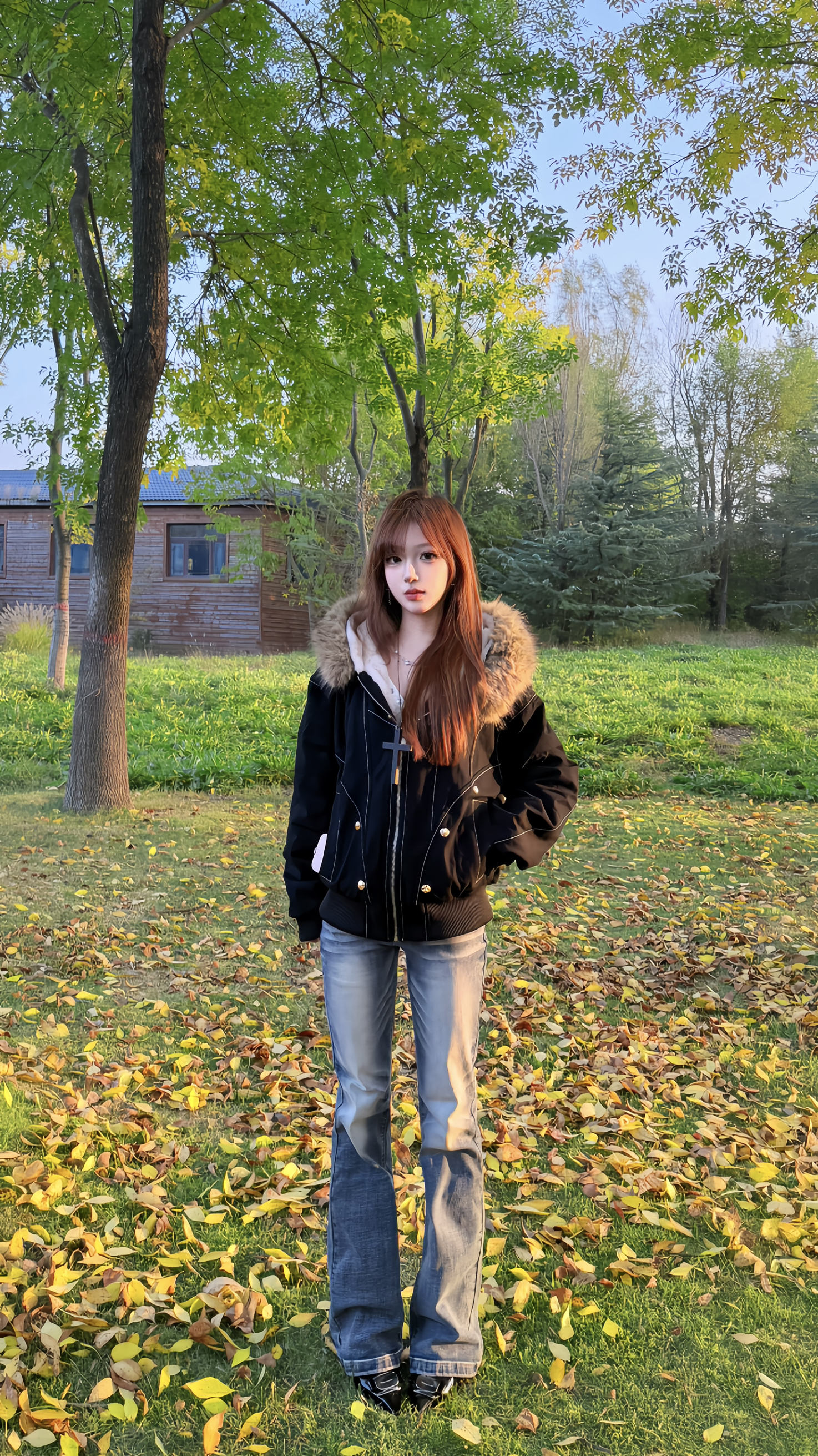 本篇笔记关联了 掐腰双扣高腰喇叭韩系牛仔裤 女装 基础色、拉链工装毛领连帽棉服 基础色等商品,为用户提供真实的使用体验和购买参考。