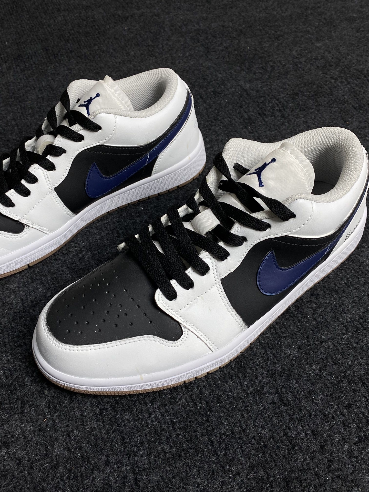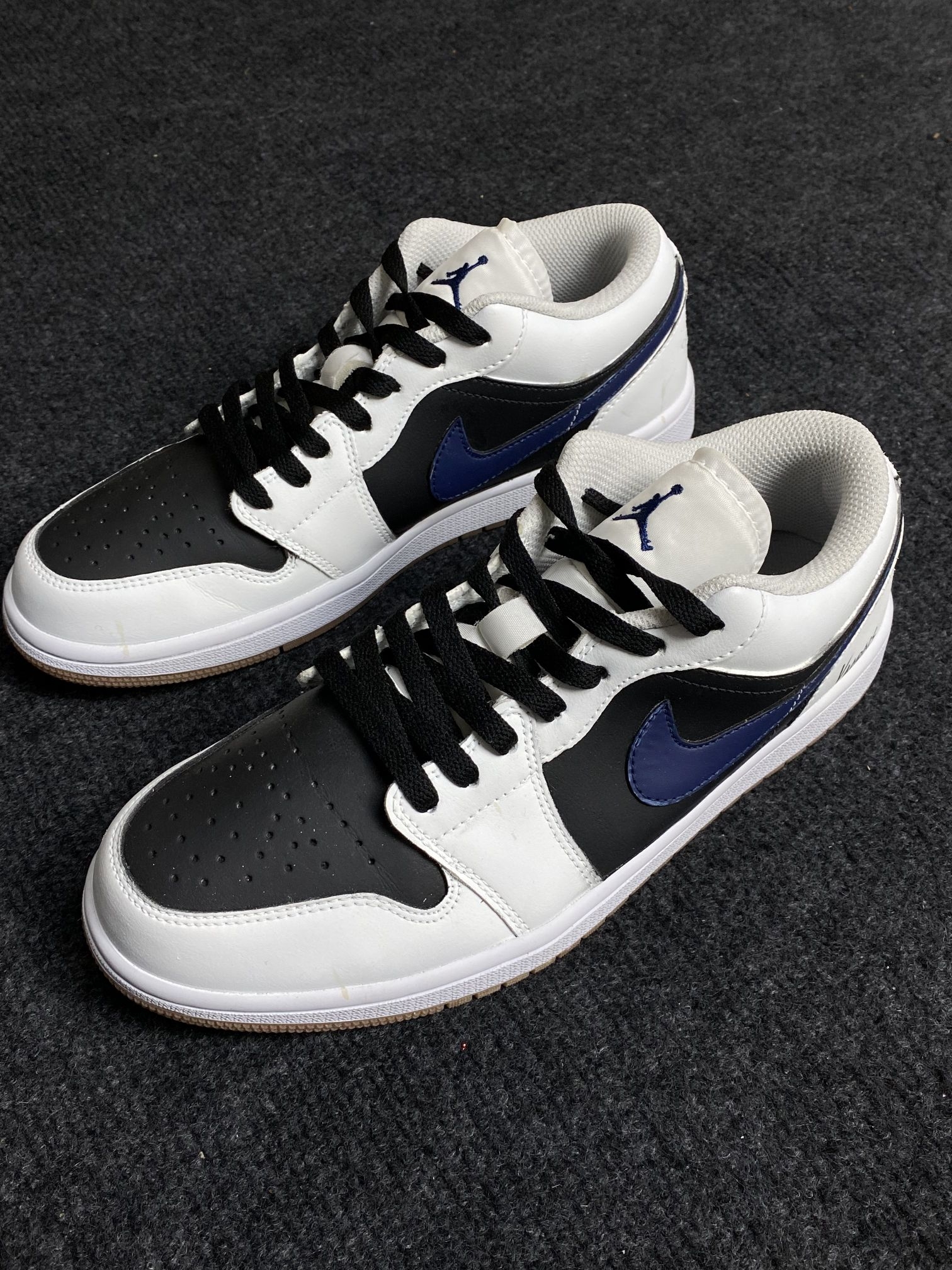 最近很喜欢穿这双鞋出门,我觉🉐适配这个季节,搭配也不挑衣服😄 配色简约但不简单,黑白撞色很耐看👀深蓝色的勾子贯穿鞋身,经典AJ1版型👿 鞋底是加深纹路牛筋大底,防滑的同时也很耐造!!周末去公园散步走了一整天脚也没觉得累🚶🏼♂️🏃🏻♂️ 日常好打理,皮革材质脏了就用湿毛巾擦一擦就行,我穿一个多月了,平时脱下来之后擦一擦,还像新的一样😜 上班、逛街、旅行都OK,拍照还出片📸尺码标准不偏码...
