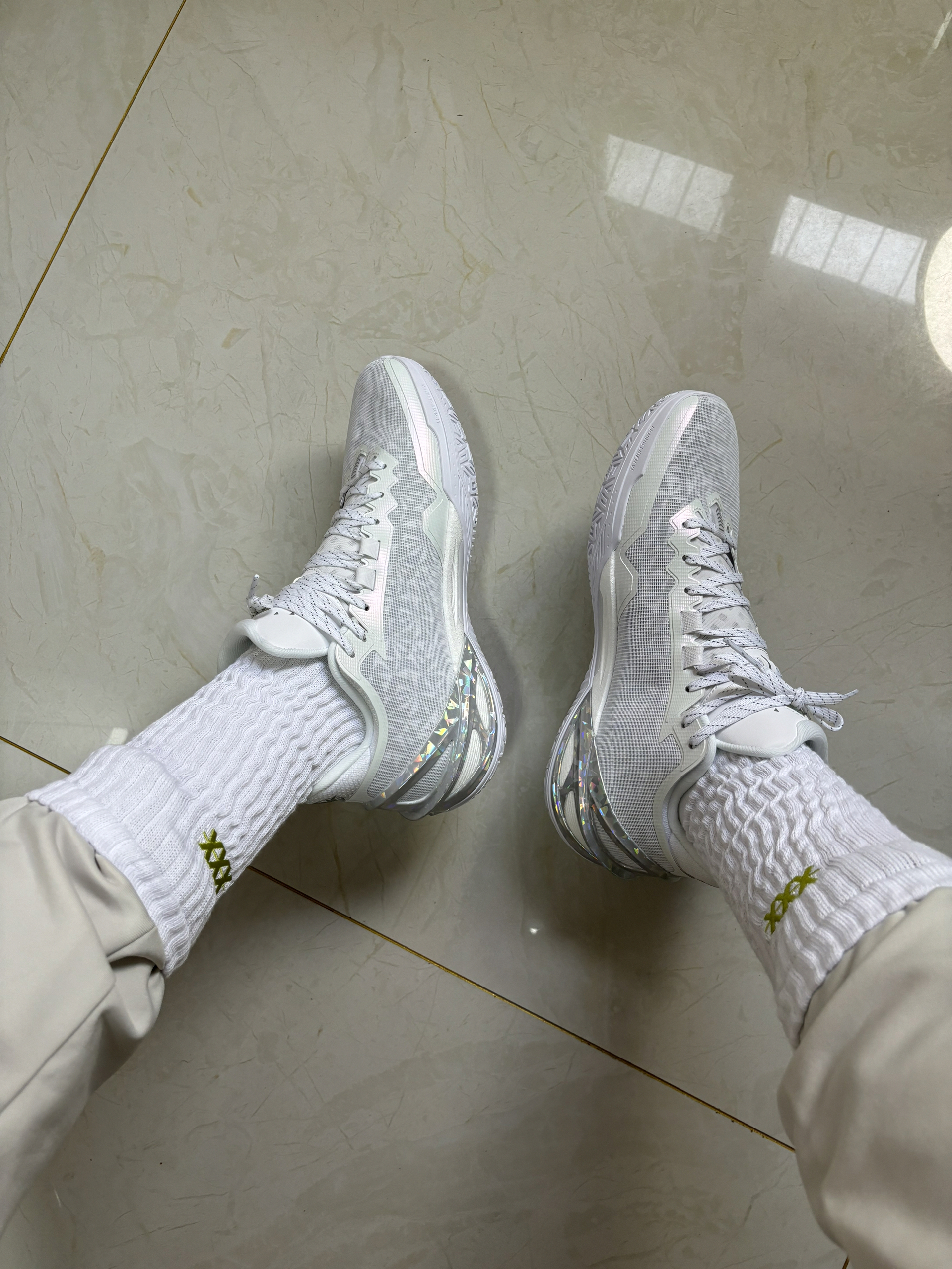 最近发售的新配色“暮光”,里夫斯3代这双鞋的性能表现我觉得还是蛮全面的。 鞋身设计上,飞刀状侧墙TPU,增加稳定性的同时,让鞋身更多元素,热区电绣鞋面,强度很不错。 后跟三片上翻TPU,似成叠山峰,也展现了后跟的的稳定性提升。 全掌咻弹科技,对于我63KG的体重反馈是偏韧弹,较大体重的后卫、锋线我觉得也可以适配。