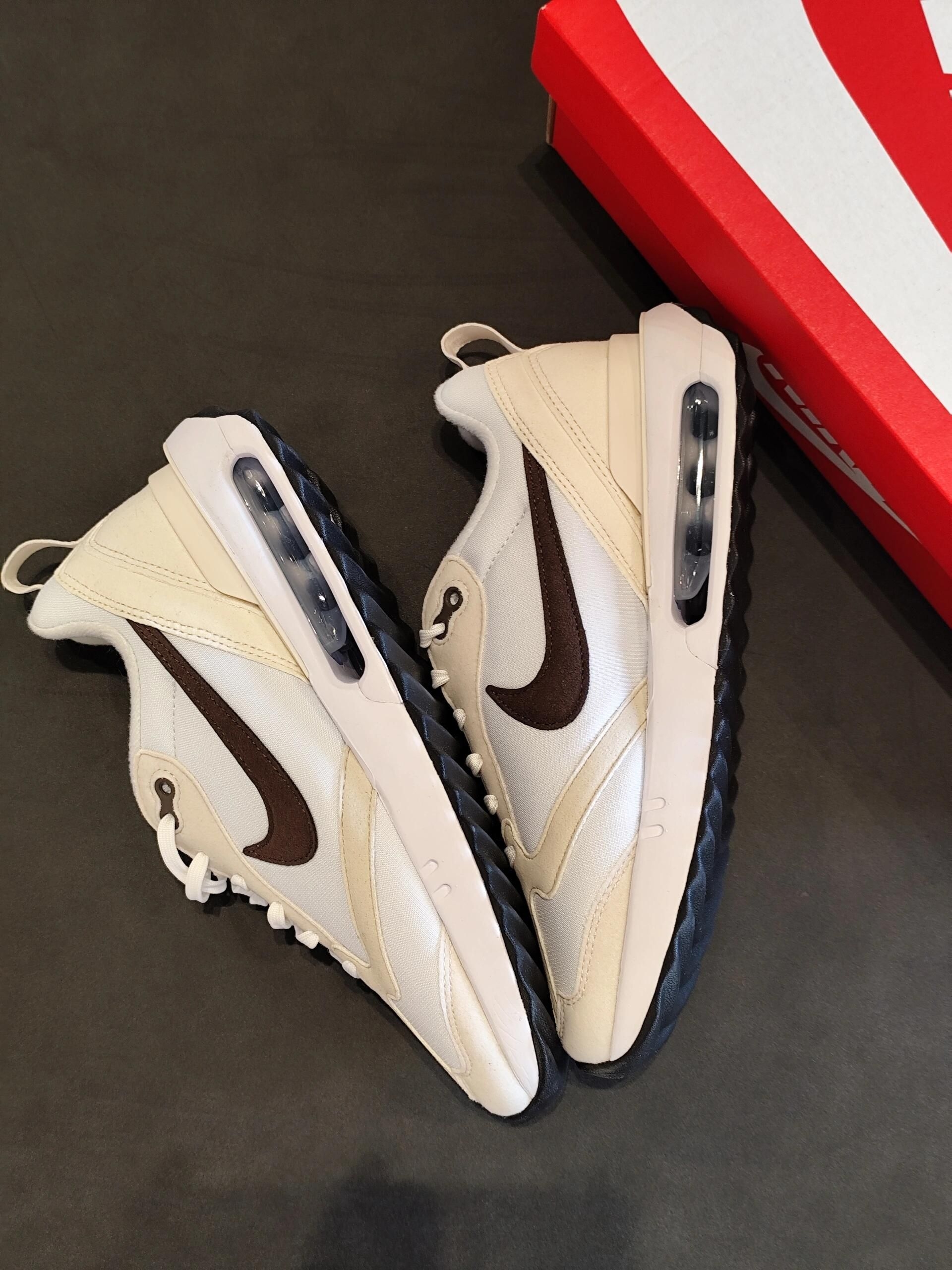 ✅ 核心亮点 1️⃣ 缓震科技:Air Max气垫单元结合双密度泡棉,实现从脚跟到脚尖的绵软过渡 2️⃣ 配色美学:米白与深棕的复古碰撞,荔枝纹皮革提升整体质感层次 3️⃣ 实用设计:加宽鞋楦配合记忆棉鞋舌,消除长时间行走的压迫感 🔥 穿着体验 ・ 连续站立3小时足底仍保持舒适状态 ・ 地铁楼梯急行时气垫单元提供明显回弹反馈 ・ 网眼内衬在28℃环境下有效抑制闷热感