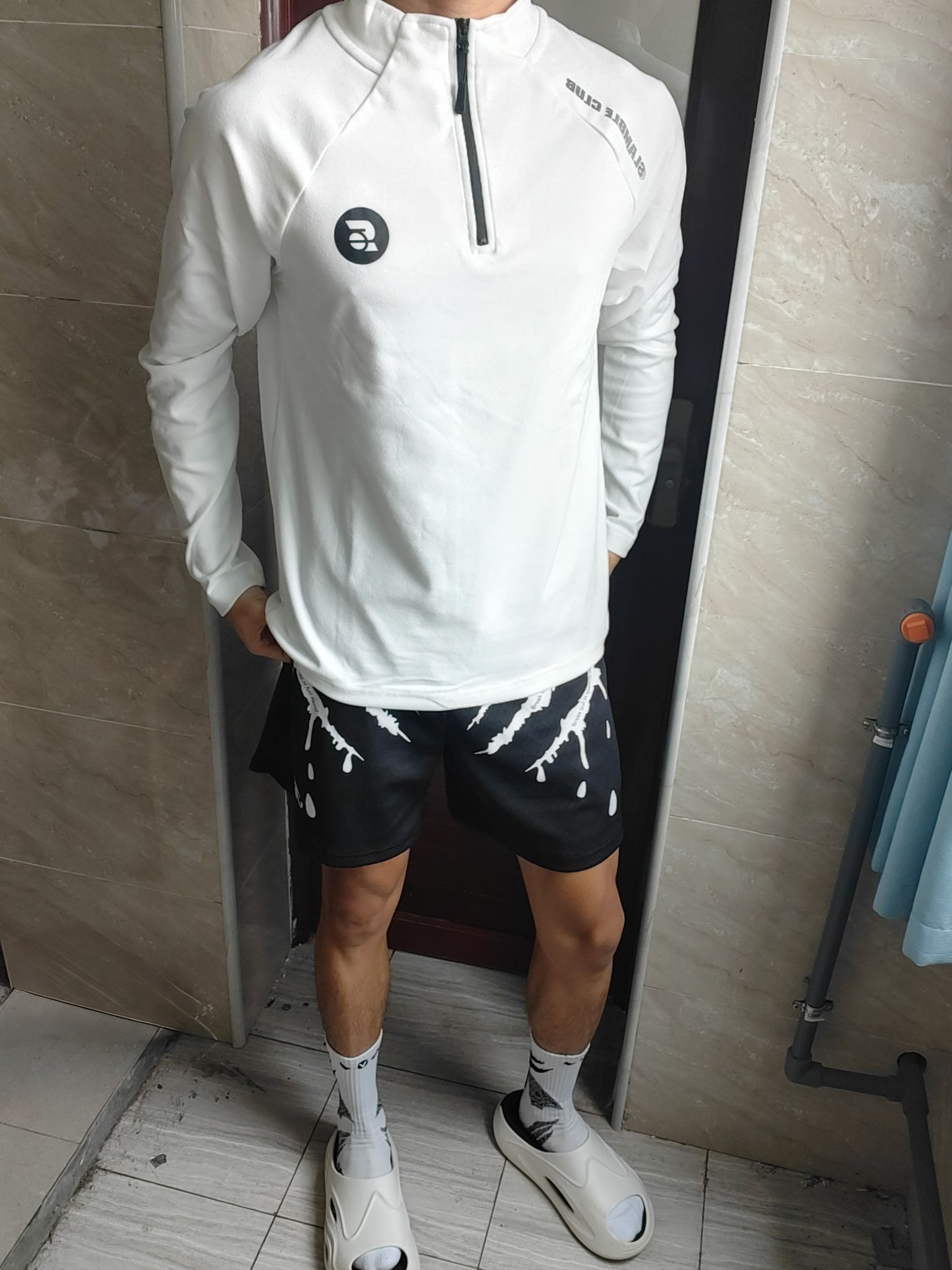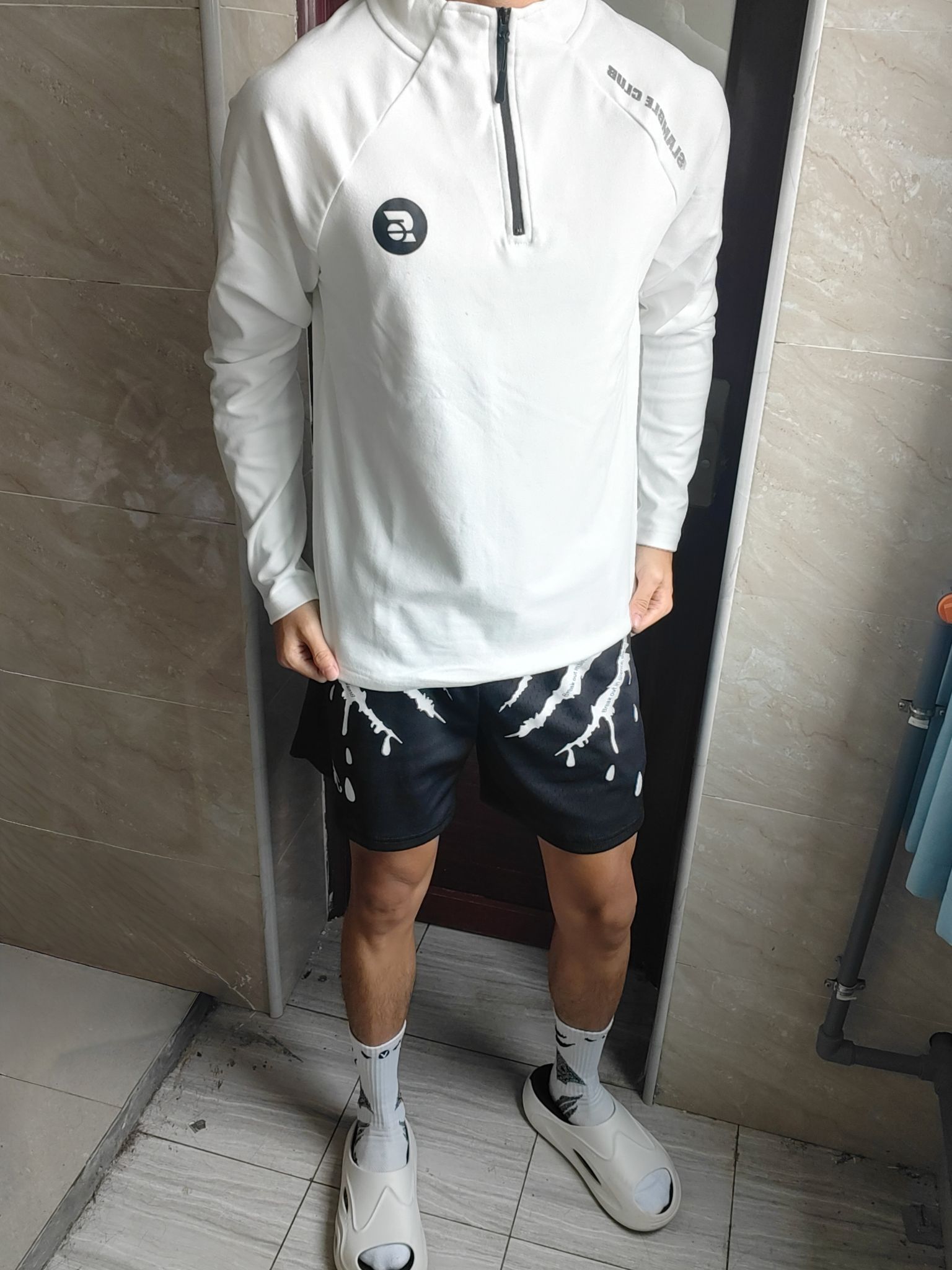 今天穿的是slamble的半拉链保暖外套。首先材质方面很不错,面料摸着手感很舒服,虽然看着薄,但是穿在身上保暖效果还是很不错的,里面套个保暖内衣,外面穿一件这个就可以在秋冬出门了!