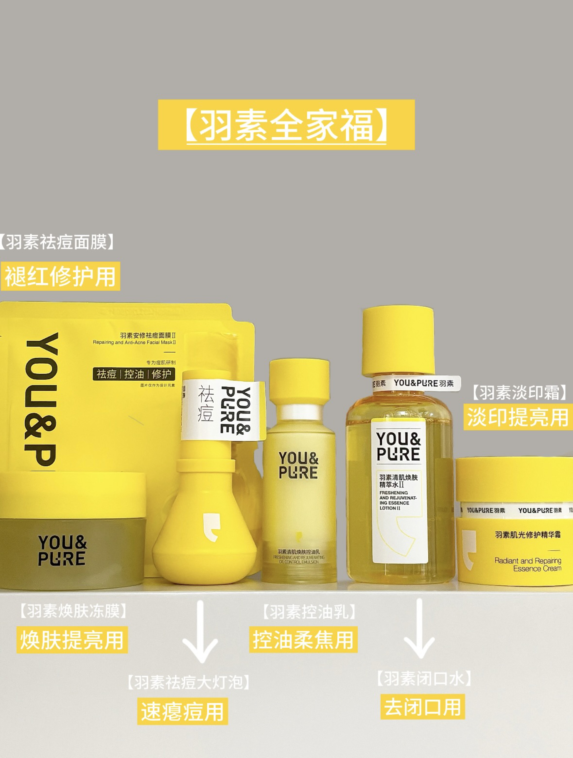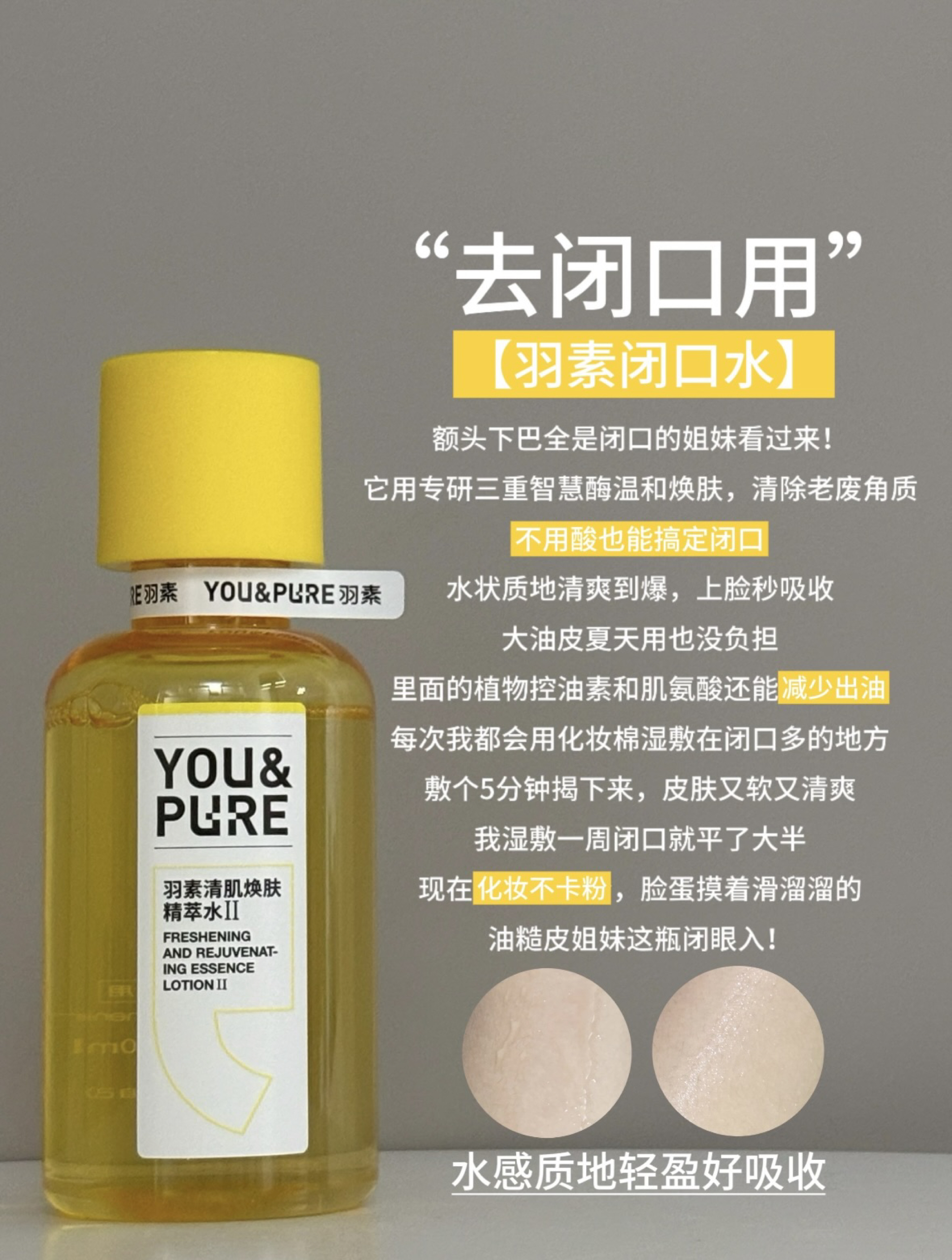 本篇笔记关联了YOU&PURE/羽素 大灯泡胶态硫快速瘪痘精华液 舒缓控油改善痘肌去闭口粉刺修印褪红 控油祛痘、YOU&PURE/羽素 细致嫩肤精萃乳 油痘肌 补水保湿、YOU&PURE/羽素 控油保湿清肌焕肤爽肤水 细毛孔祛闭口粉刺去糙皮无酸磨皮嫩肤 1.0等商品,为用户提供真实的使用体验和购买参考。