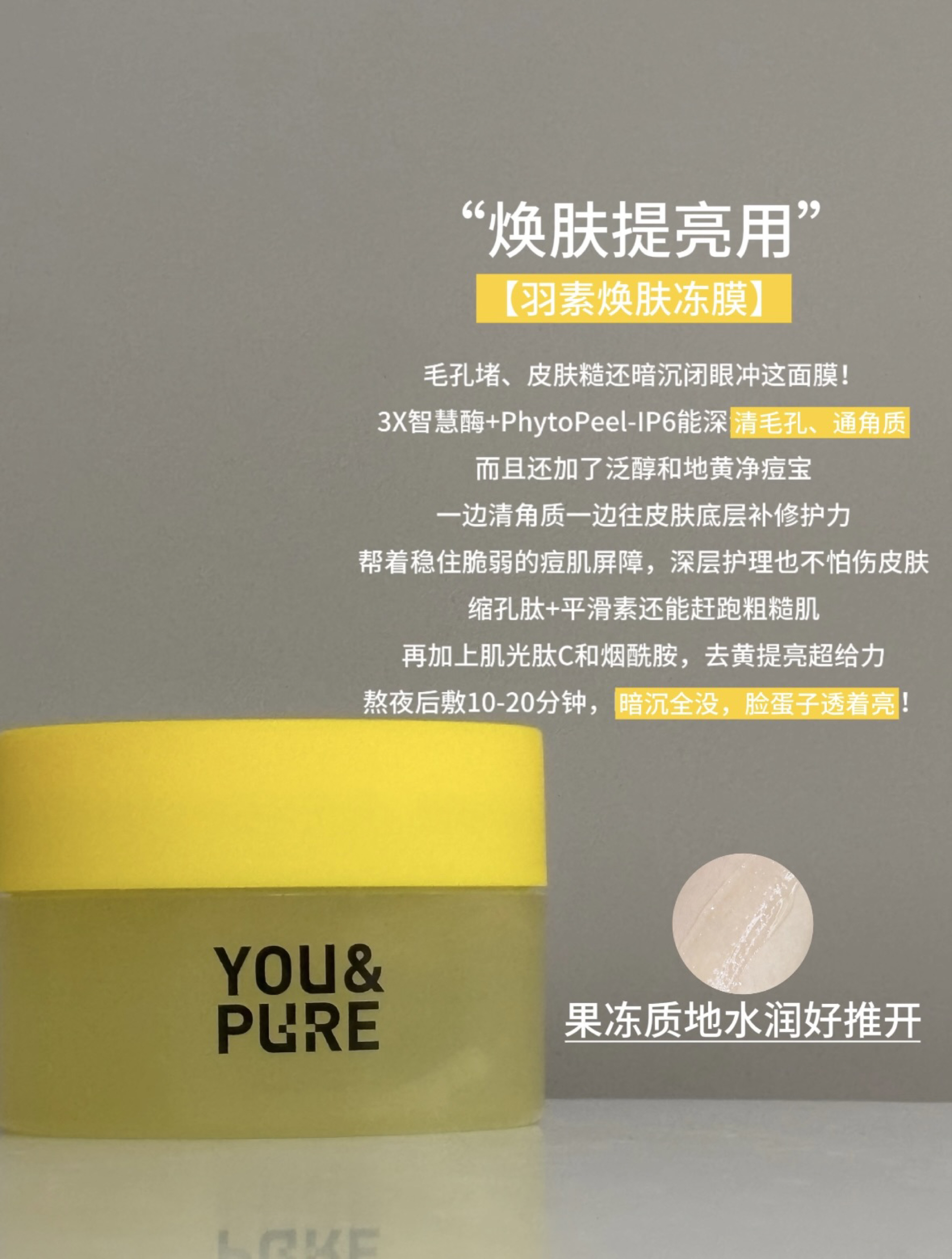 🌙 夜间修护三部曲(针对爆痘期) 1️⃣ 羽素闭口水+祛痘大灯泡+祛痘面膜 • 洁面后先用闭口水湿敷T区5分钟(三重智慧酶疏通毛孔,植物控油素减少油光) • 局部点涂祛痘大灯泡成膜隔离(胶态硫+TAT技术直捣痘根,第二天红肿痘瘪一半) • 每周3次敷祛痘面膜(羽安修PRO+油橄榄叶快速褪红,膜布服帖如隐形绷带) 2️⃣ 熬夜急救组合:焕肤冻膜+淡印霜 • 冻膜厚敷10分钟(3X智慧酶+...