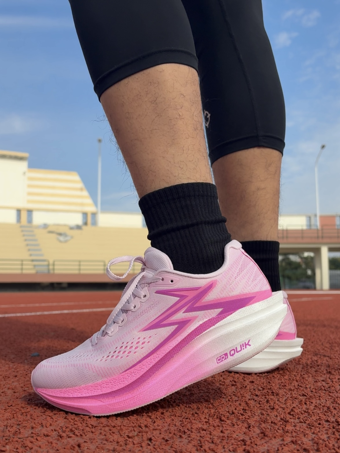 🏃匹威一家专门做碳板跑鞋的品牌,今天我穿着绝辰3.0 Pro的使用感受分享一下 🤗首先是这双鞋子上手就很轻,比一般鞋盒都轻很多,40码的鞋子单只质量在228克,这个也是一个竞速跑鞋应该具备的轻量化设计了 😱鞋面采用胶纵的材质,很透气,但是其包裹性非常足,一脚套的设计(鞋带只是辅助松紧),真个脚腕包裹都很到位。鞋子领口位置还有一半是加厚处理,既不会划伤后脚腕,跑起来更稳定不脱跟 弧形的一个鞋底...