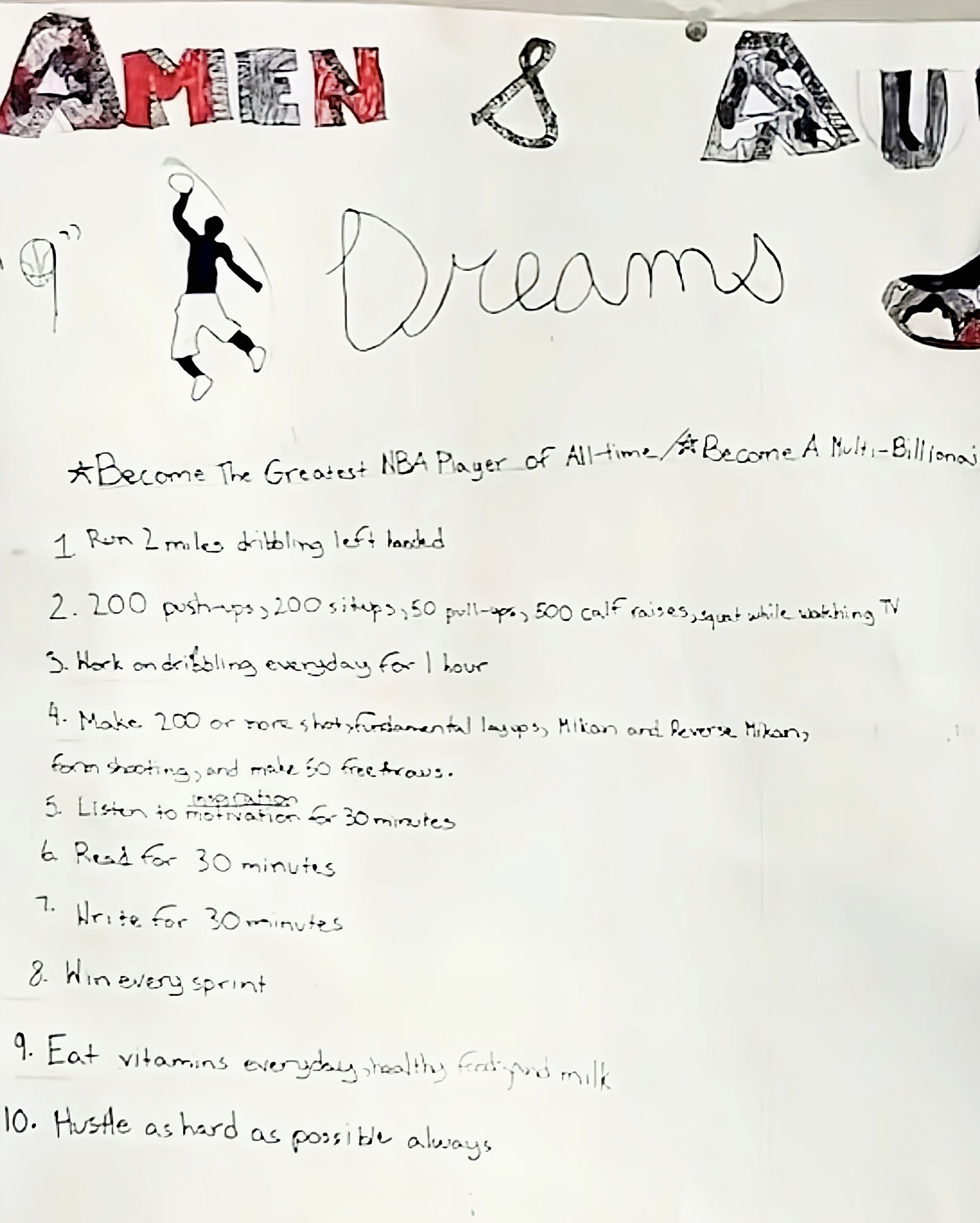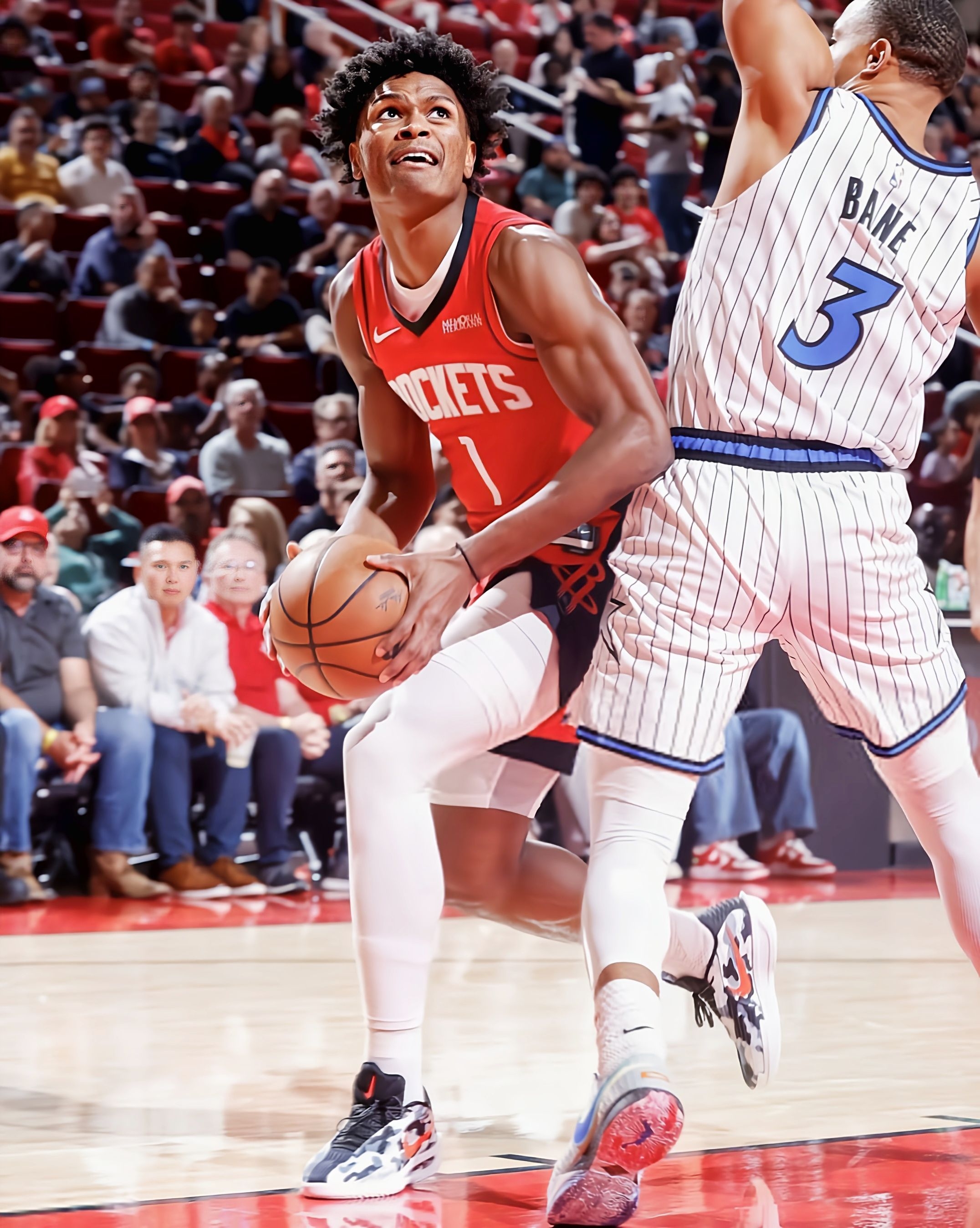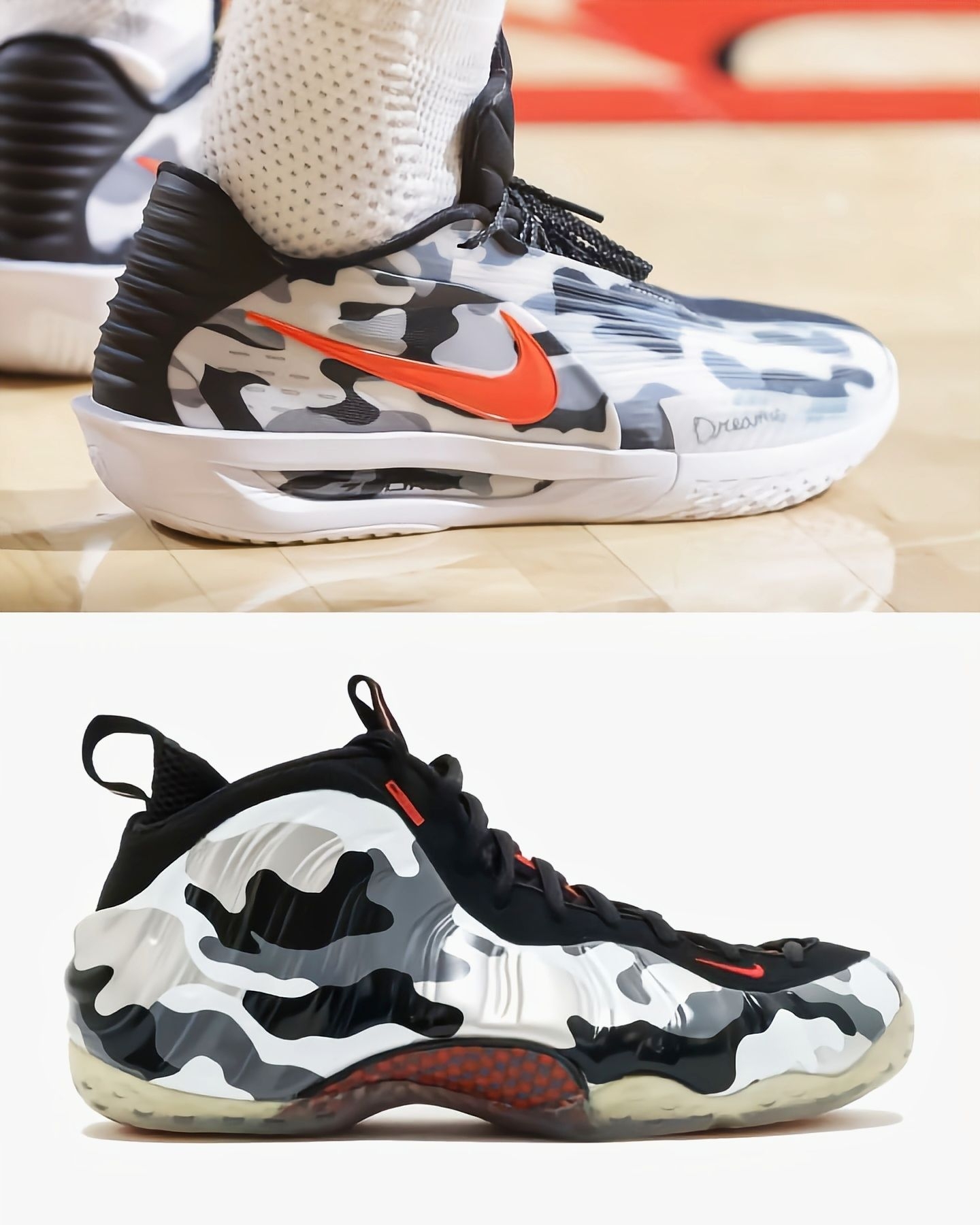 看火箭比赛的时候,阿门脚上这双迷彩G.T Cut3 Turbo直接把我看愣了——不是配色多炸,是这鞋背后的事儿太戳人。他和弟弟奥萨尔9岁那会,手写了份童年梦想清单,头一个就是拥有双迷彩喷Nike Foamposite One Fighter Jet,还特意把球鞋画在了清单上。现在打进NBA了,直接整了这双定制款,配色灵感就是当年的迷彩喷,鞋侧防侧翻角上还印着清单里的“Dreams”字样,这哪是穿鞋...