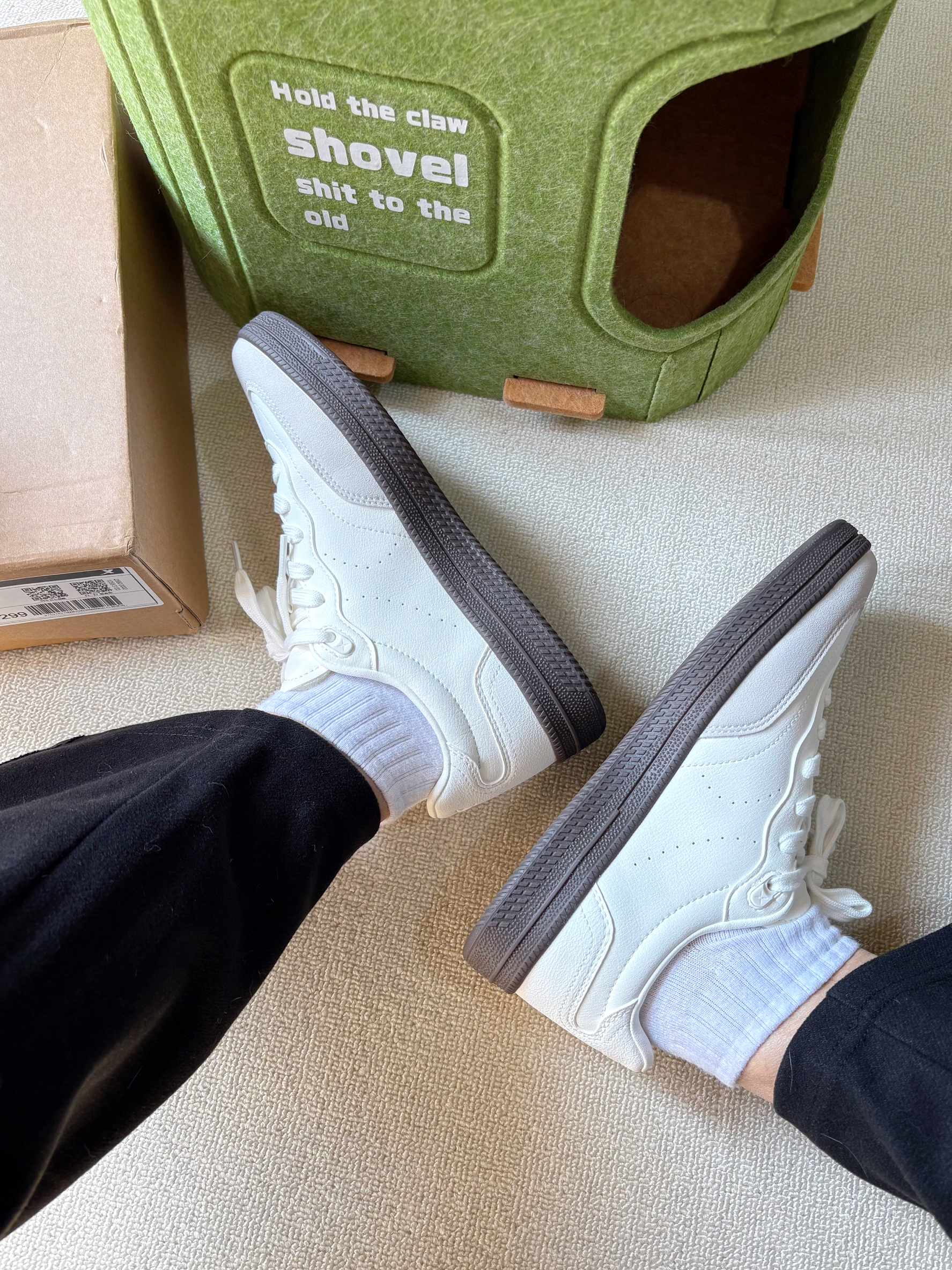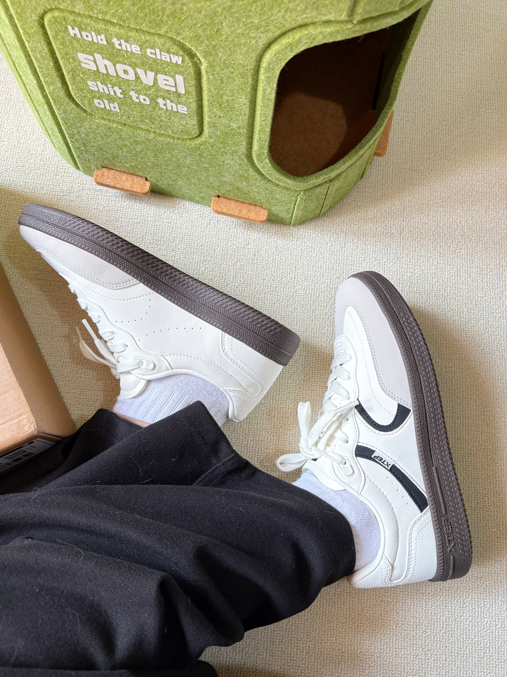 白色的鞋子永远都是最好搭配的单件 特步这双德训鞋上脚轻盈舒适 版型设计秀气,显脚小 配色也是经dian白色清爽又百搭 随便穿个小裙子和裤子就可以出门啦!