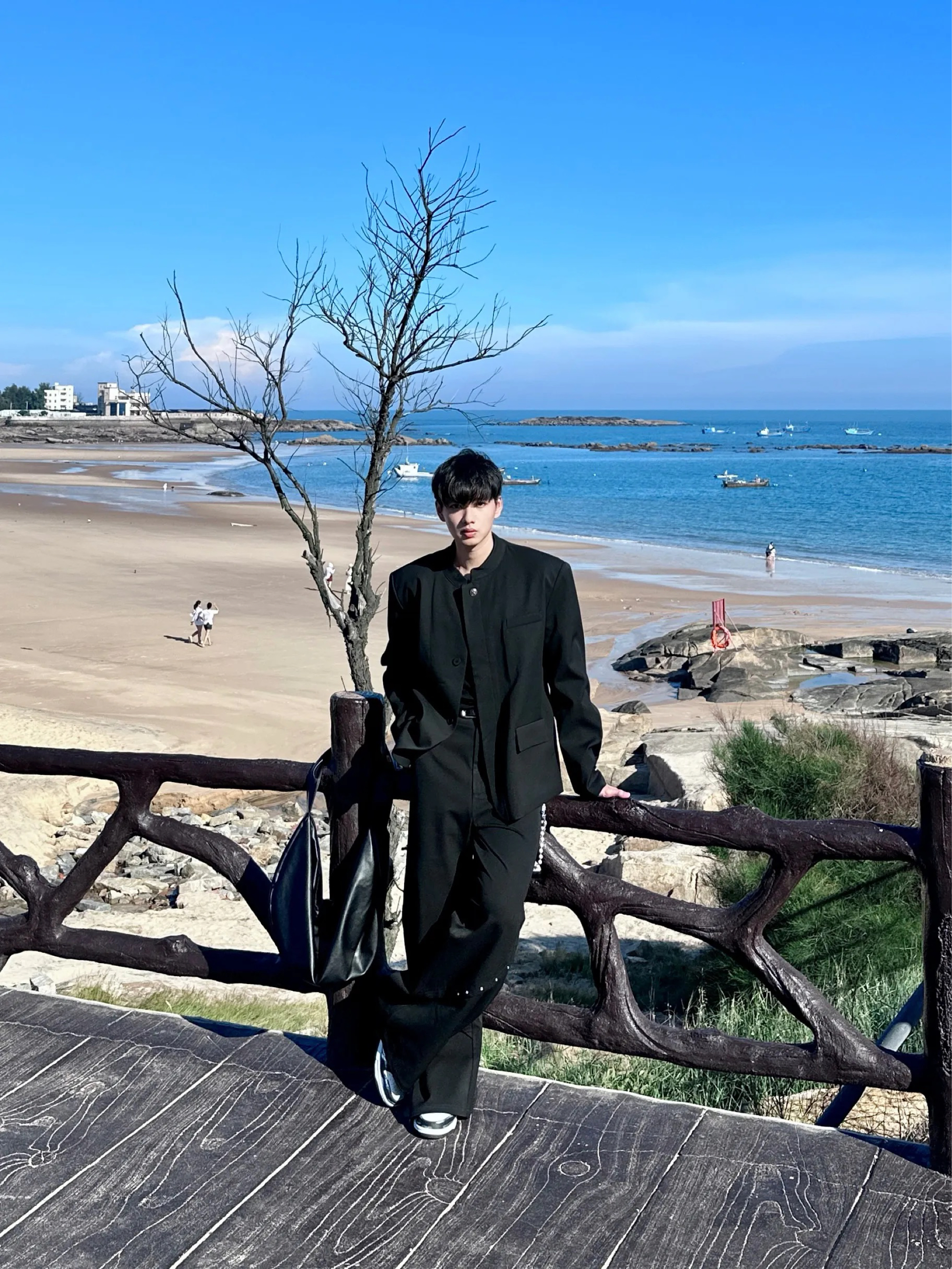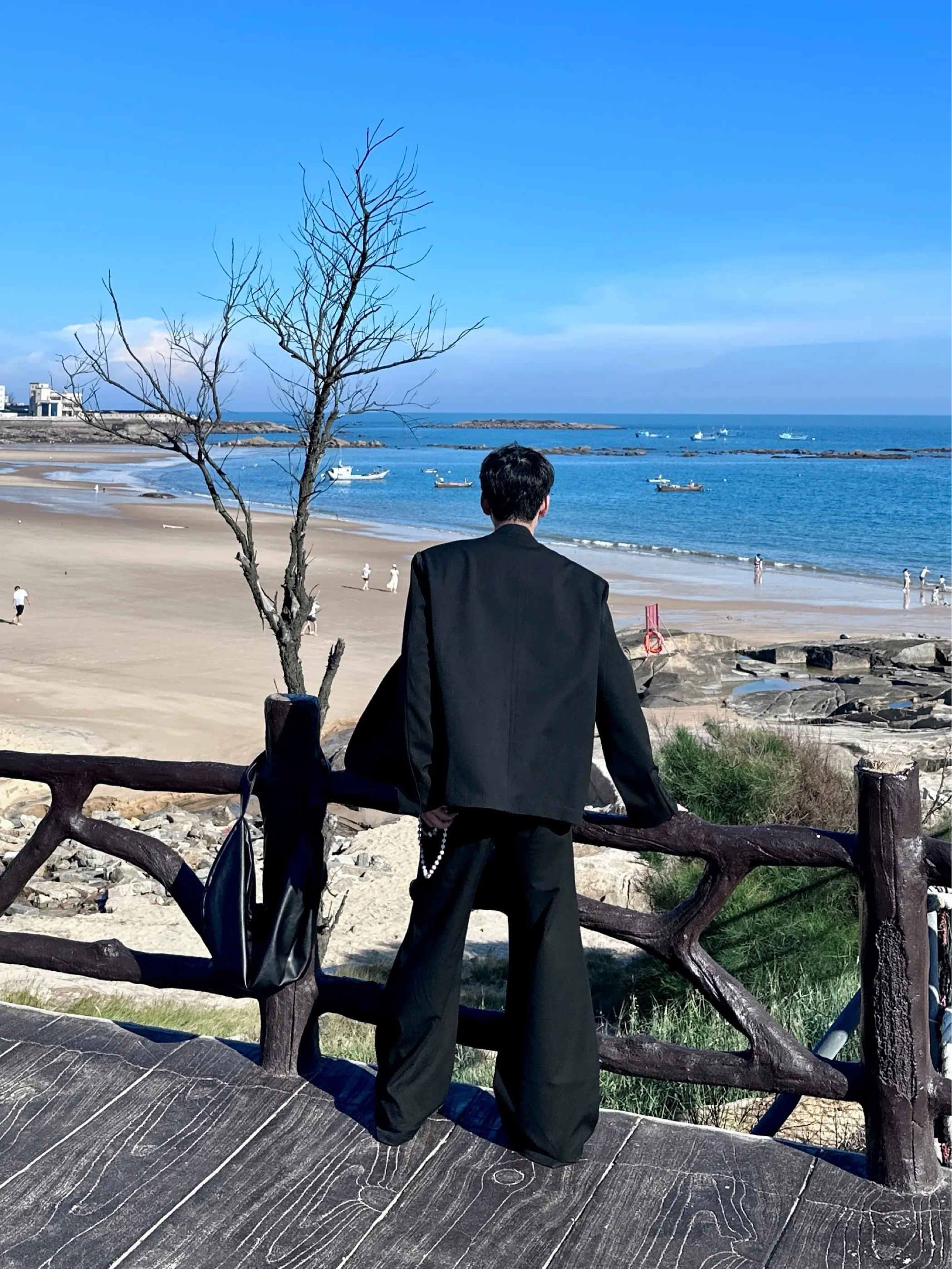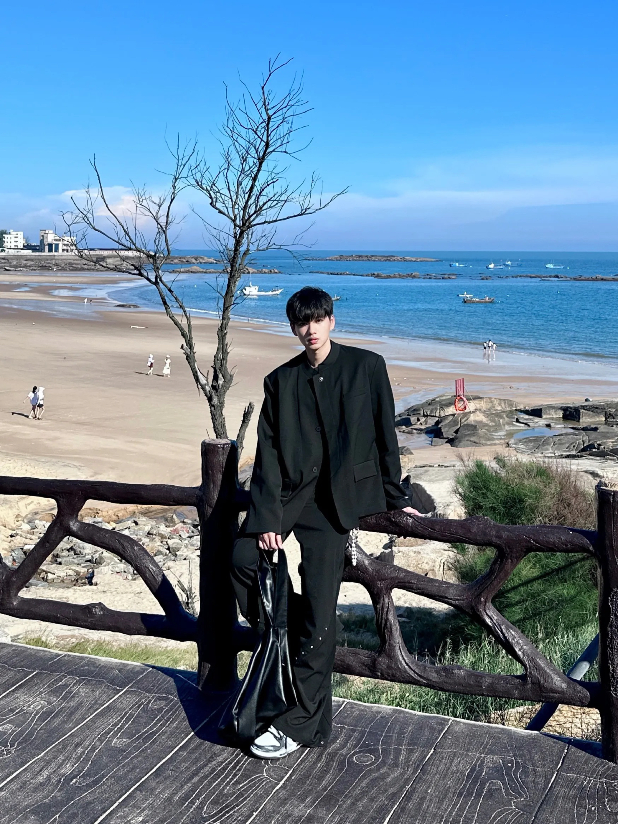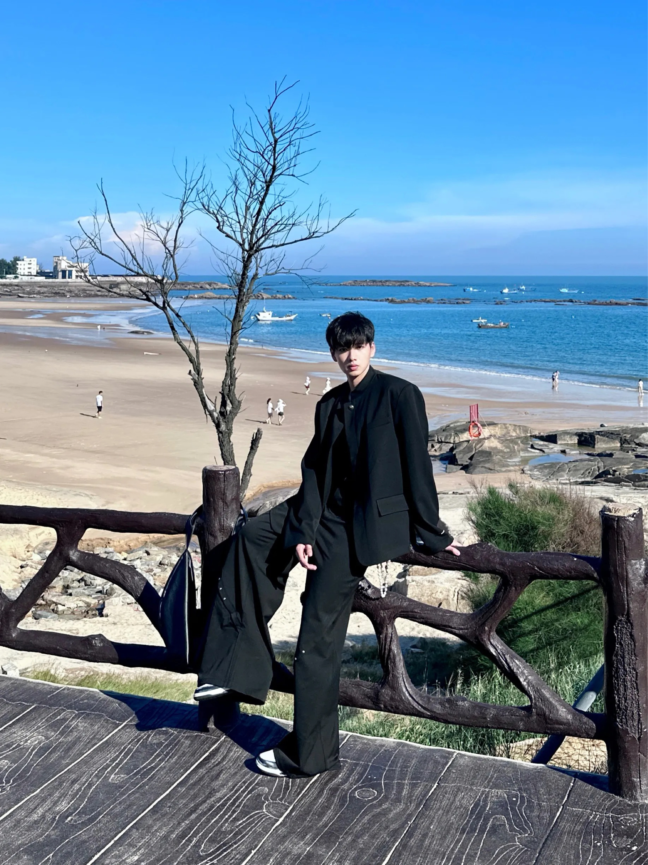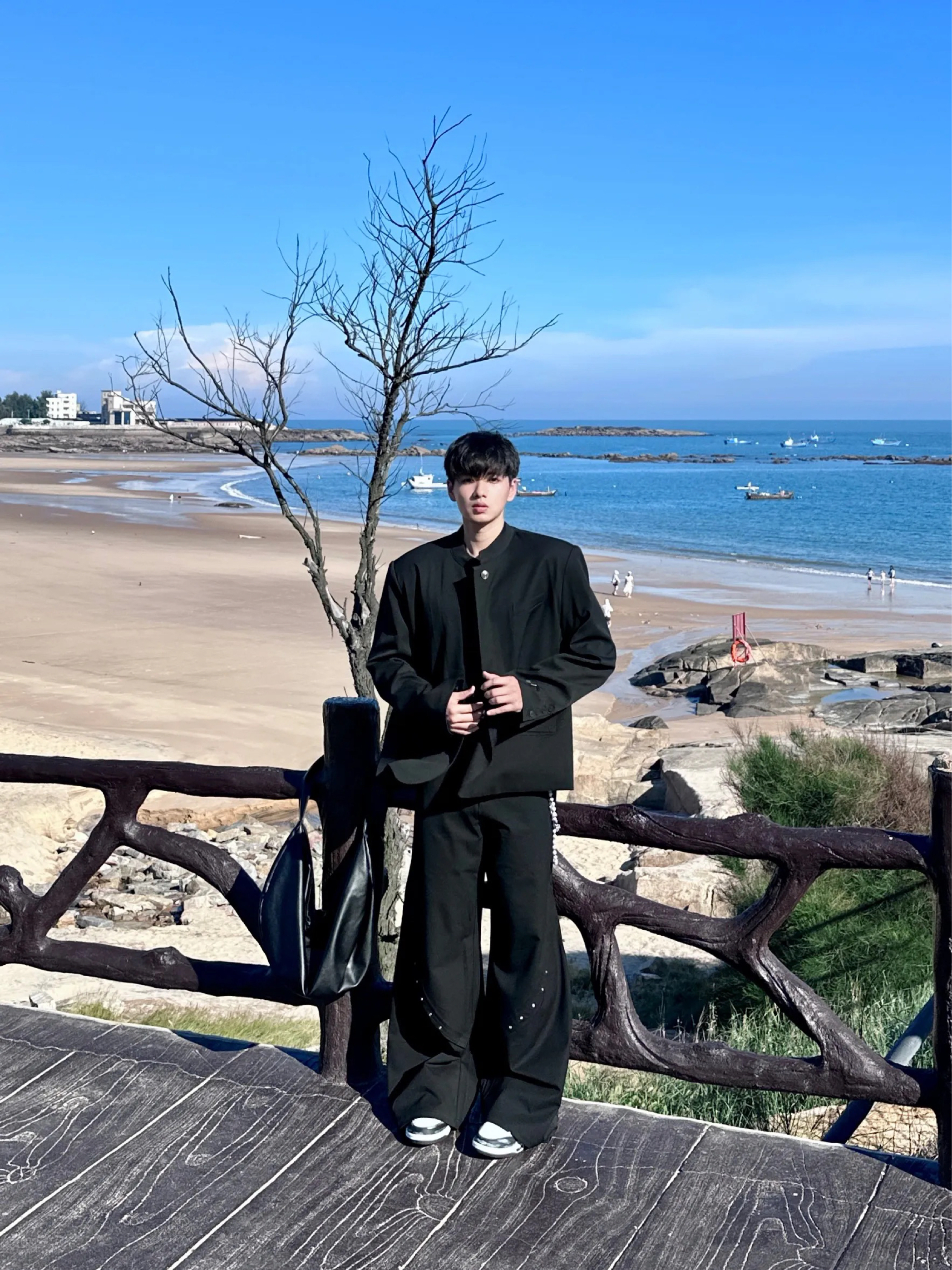 - 初秋海边的氛围感 把浪漫述说的具象化啦💕 好喜欢一个人静静地看海 浪漫且孤独着🌊 今日份ootd 首选西装搭配 拿捏秋日浪漫氛围感✅ 上身选择新中式纯色立领气质西装外套🧥 下身搭配条弧形解构分割抗皱纯色西裤👖 一套纯黑色系搭配下来 让人眼前一亮👀 日常出门约会或者参加聚会都是个不错的选择呢