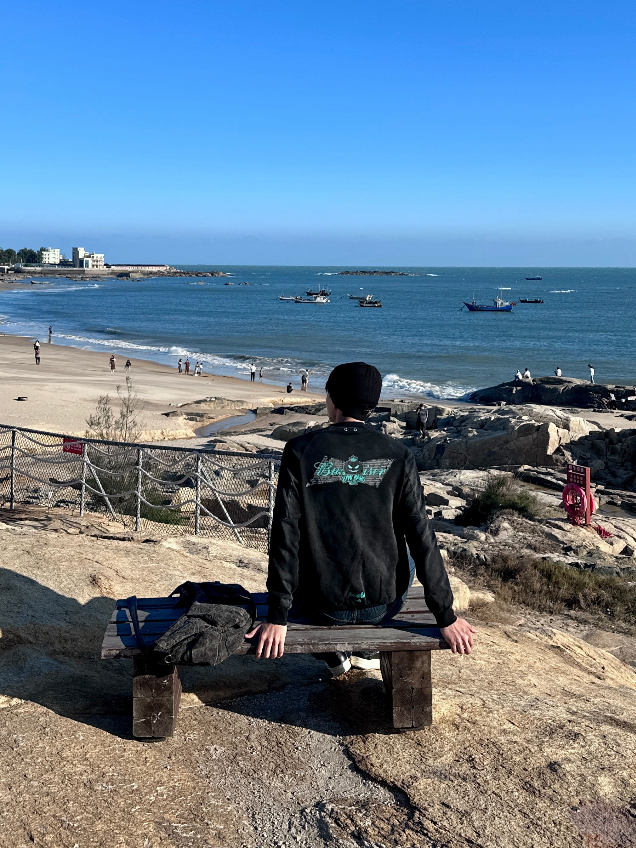 - 喜欢待在有海的地方🌊 不论天气好与坏 都足够浪漫🌹 一件水洗印花黑绿圆领卫衣 好喜欢胸前与后背的印花设计 自带潮流嘻哈感 版型宽松挺括 穿起来舒适还有型 头戴绒线帽 搭扣的设计 超帅呢 再搭配条复古渐变蓝色牛仔裤 这套搭配出游海边 赚够回头率啦✌️
