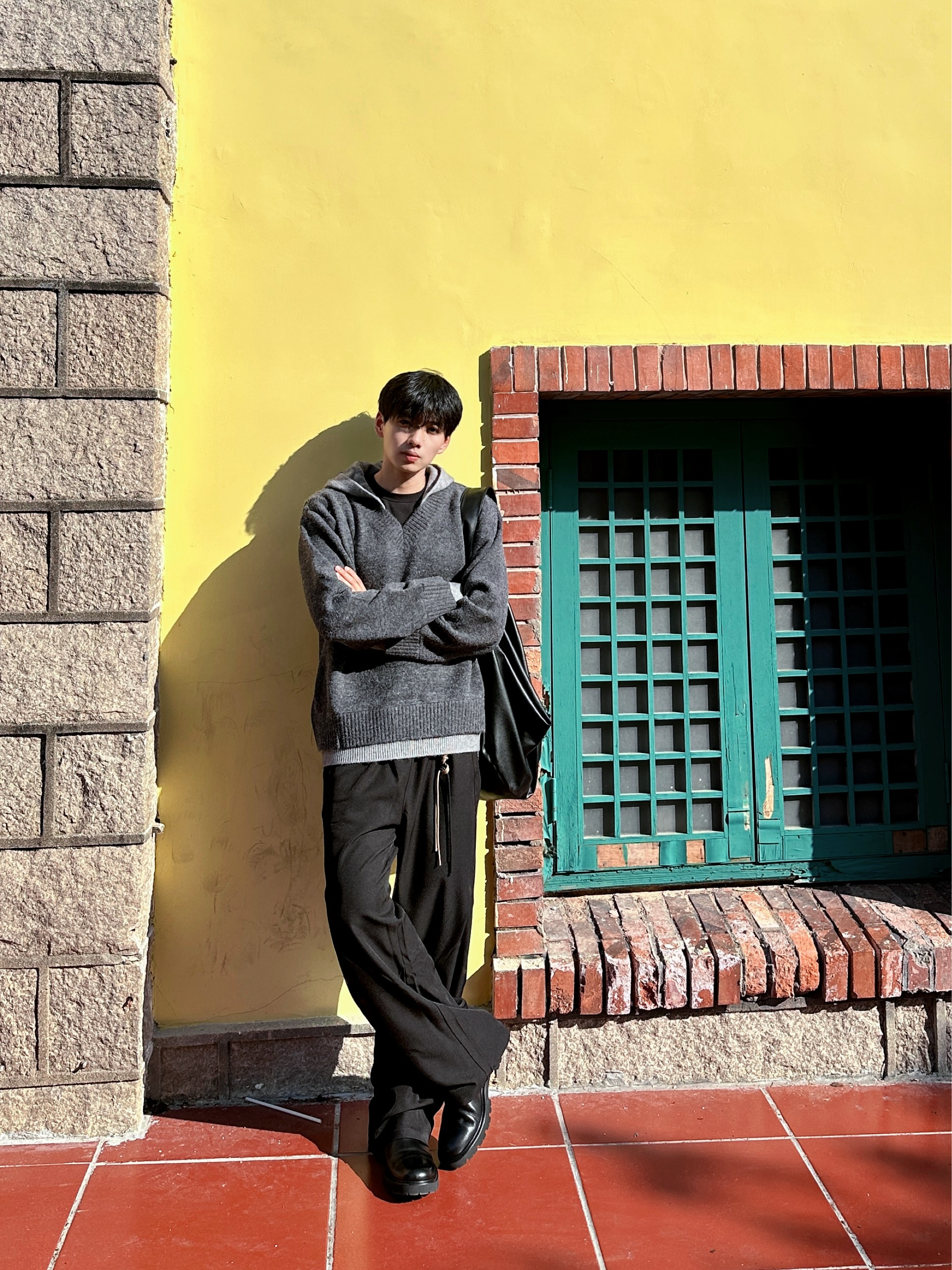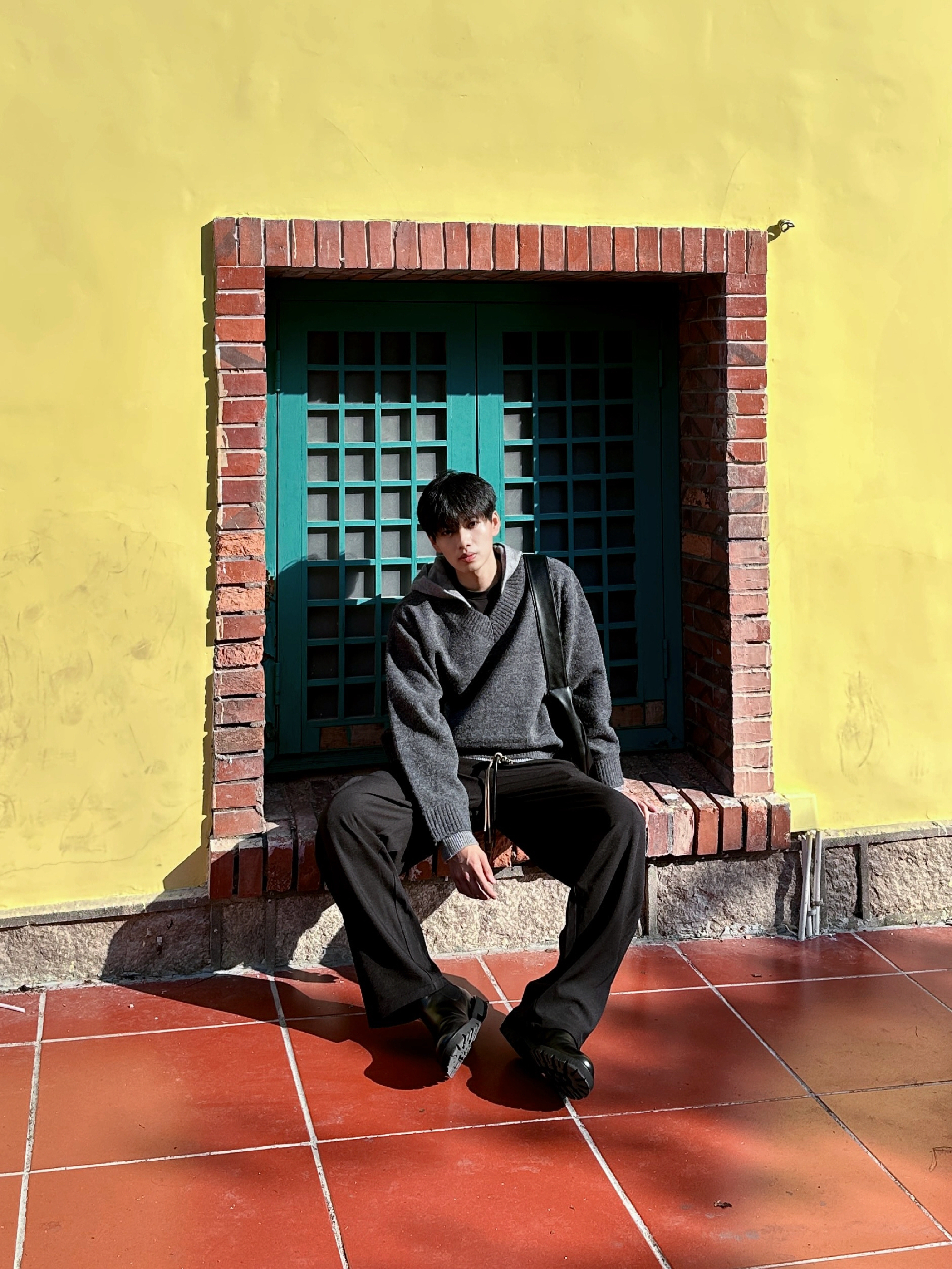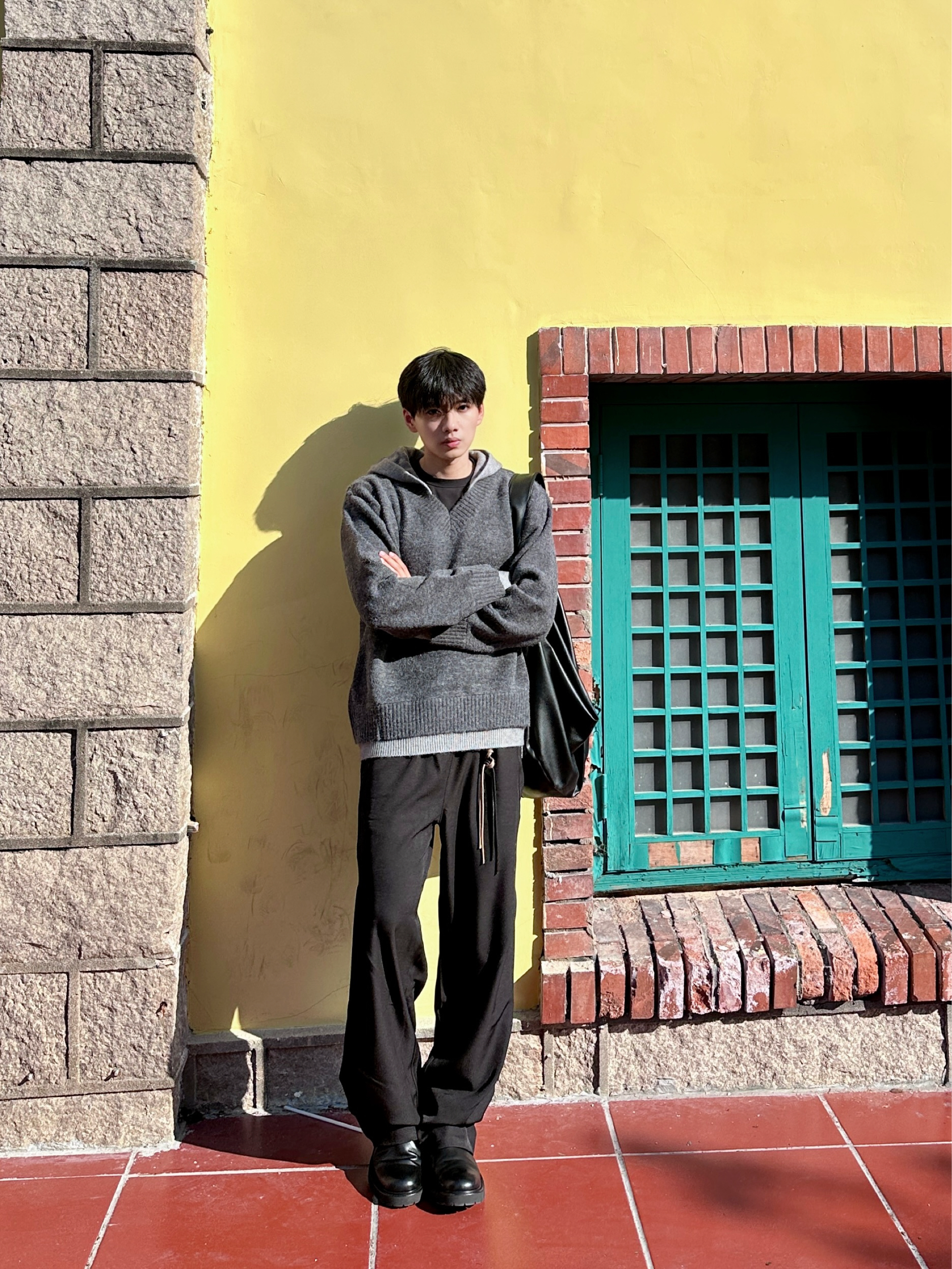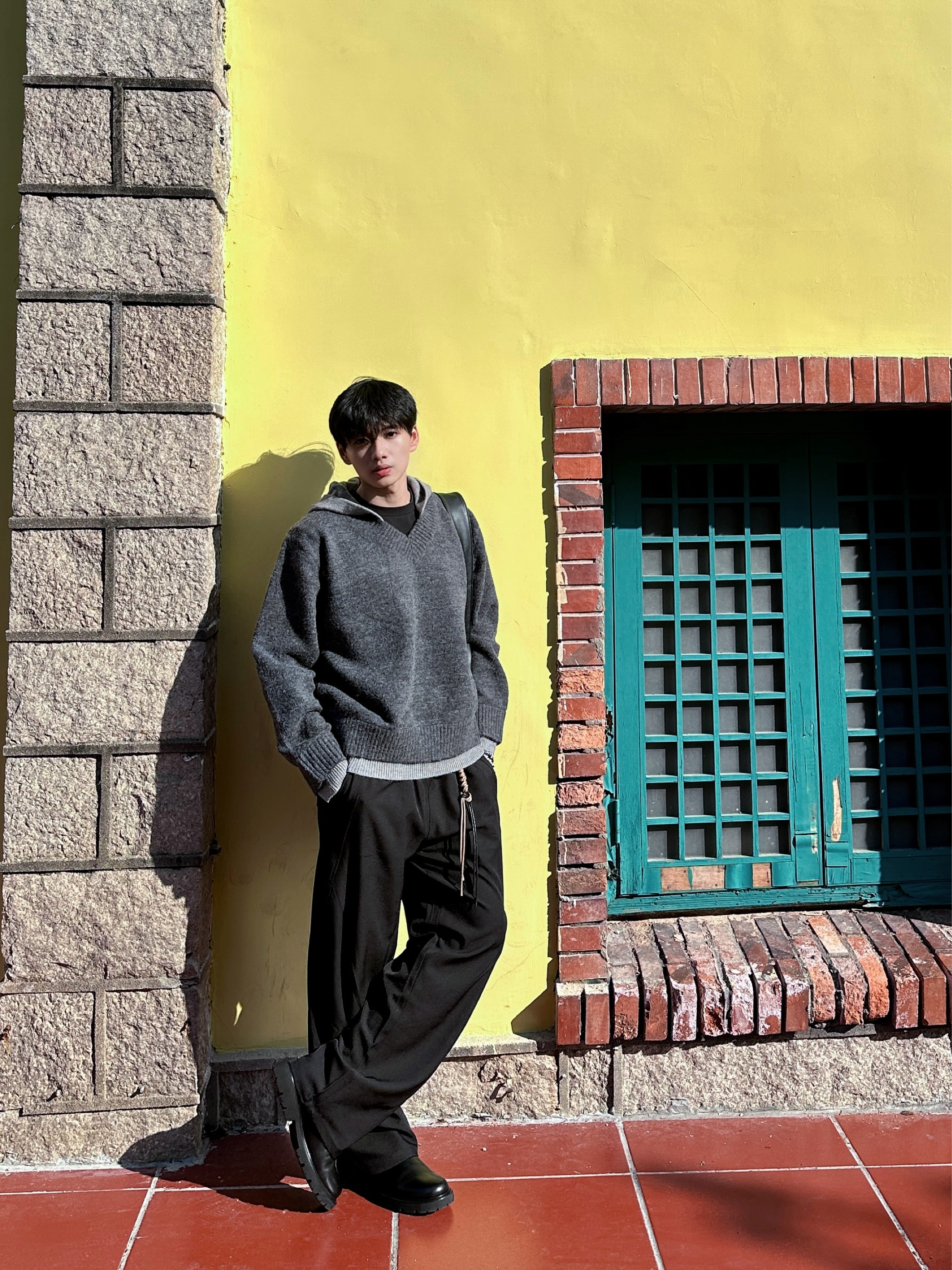 - 今日分享套韩系风穿搭look~ 一身黑灰色系把秋冬的氛围感拿捏住啦🍂 穿件假两件软糯连帽针织衫 自带慵懒感 搭配条垂感黑西裤 褶皱宽松版型 上身显高显瘦呢 再搭上黑色单肩包 整个搭配温暖又治愈❤️🩹 假期出游踏秋这么穿 随手拍都出片呢