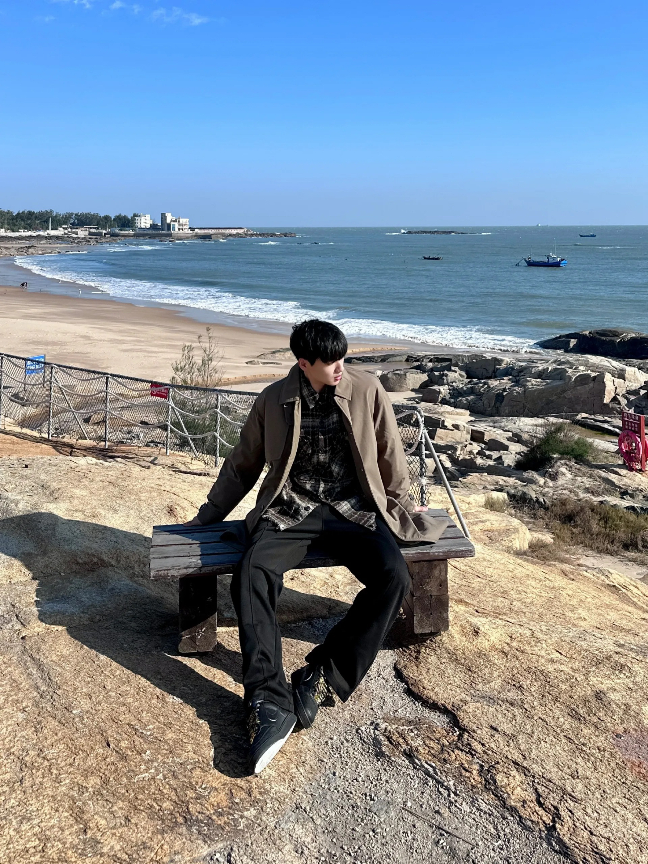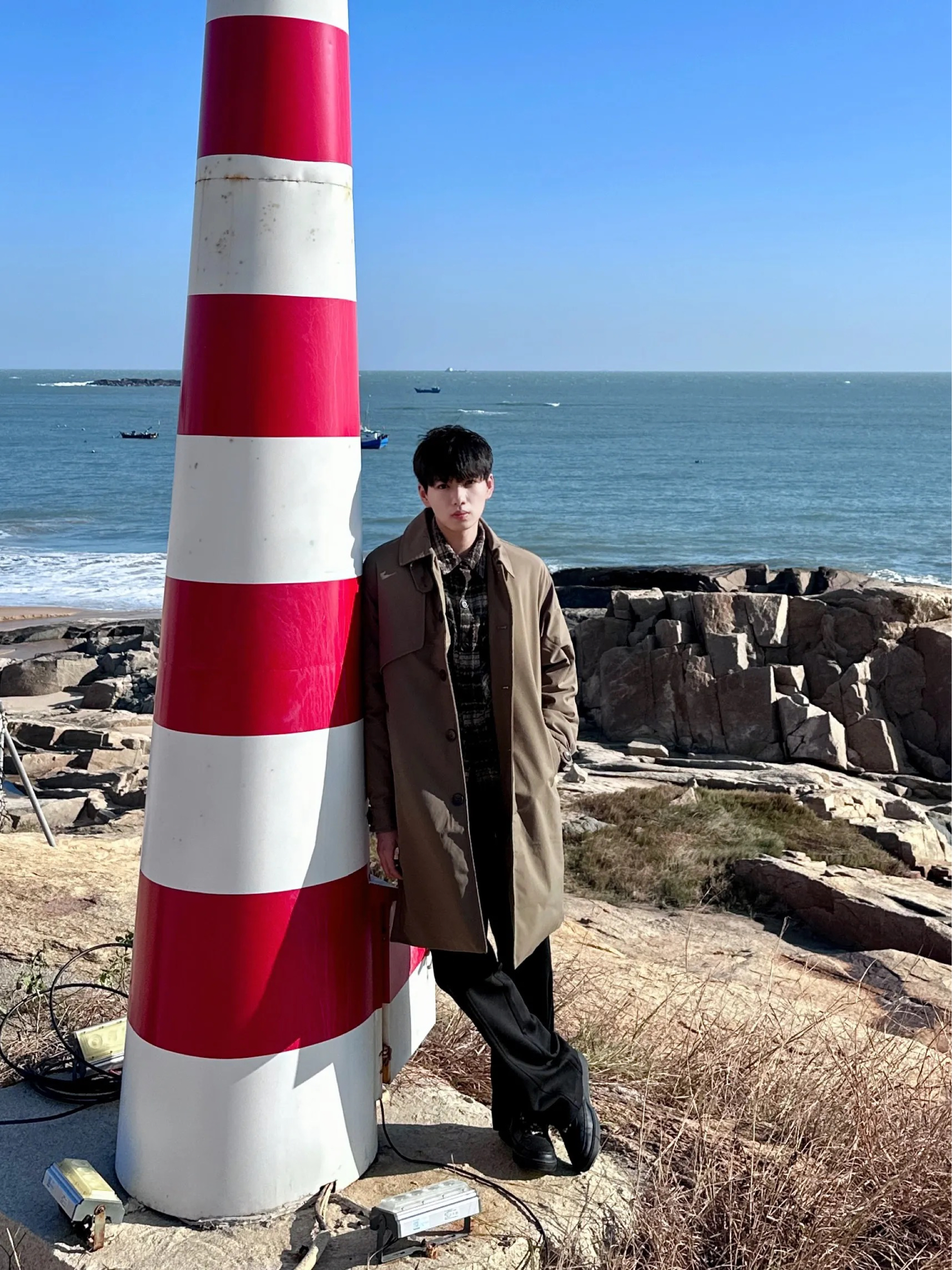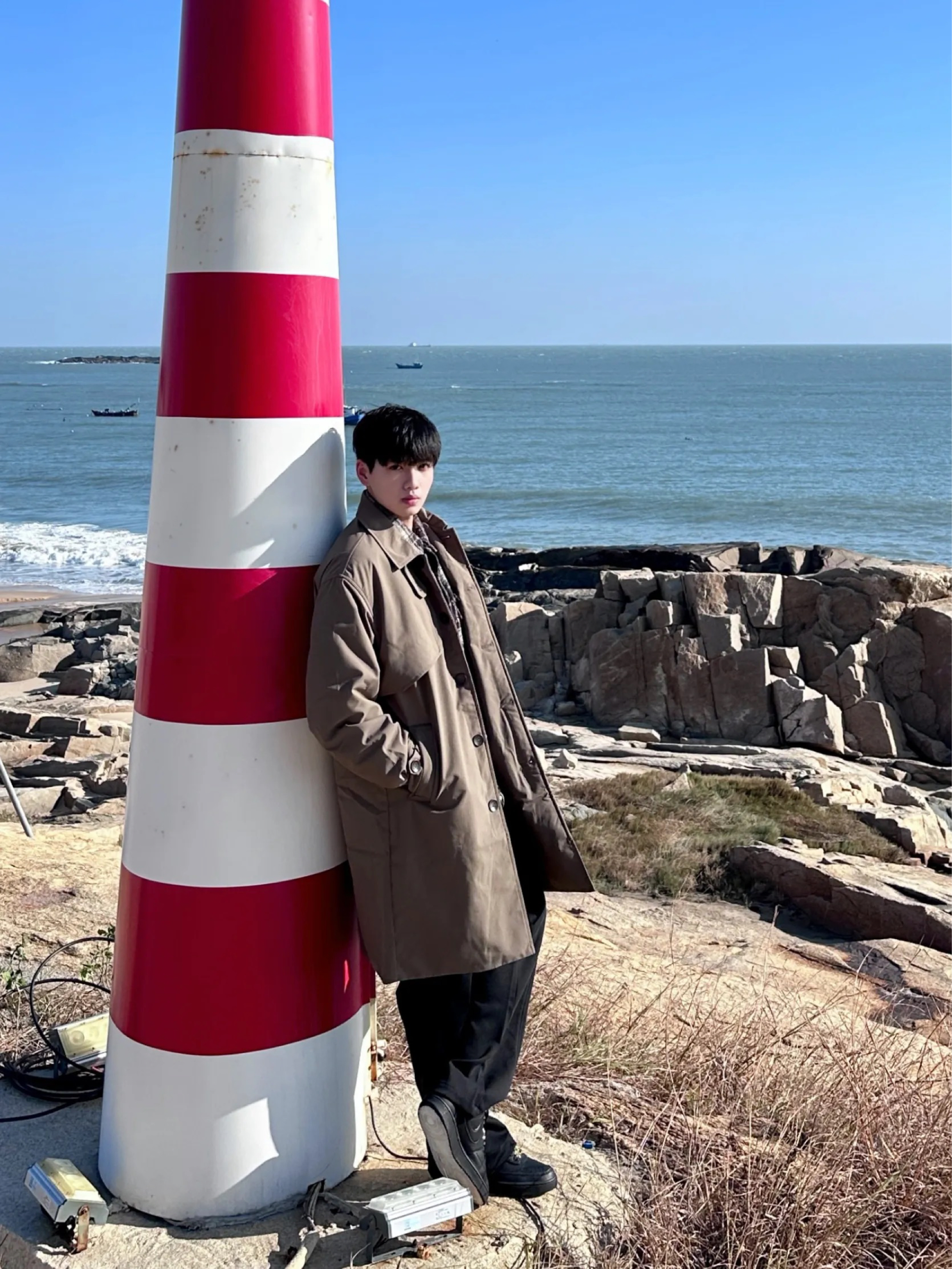 - 穿这身在海边拍照 真的太有电影氛围感啊📷 穿件伯爵卓尔风衣🧥 咖啡色➕宽松廓形版型 慵懒松弛感拉满💯 可翻领➕加厚设计 保暖性在线呢 一件过冬就够了 搭配条黑色微喇休闲裤 随性且舒适呢 轻松解锁冬日海边氛围感🍁