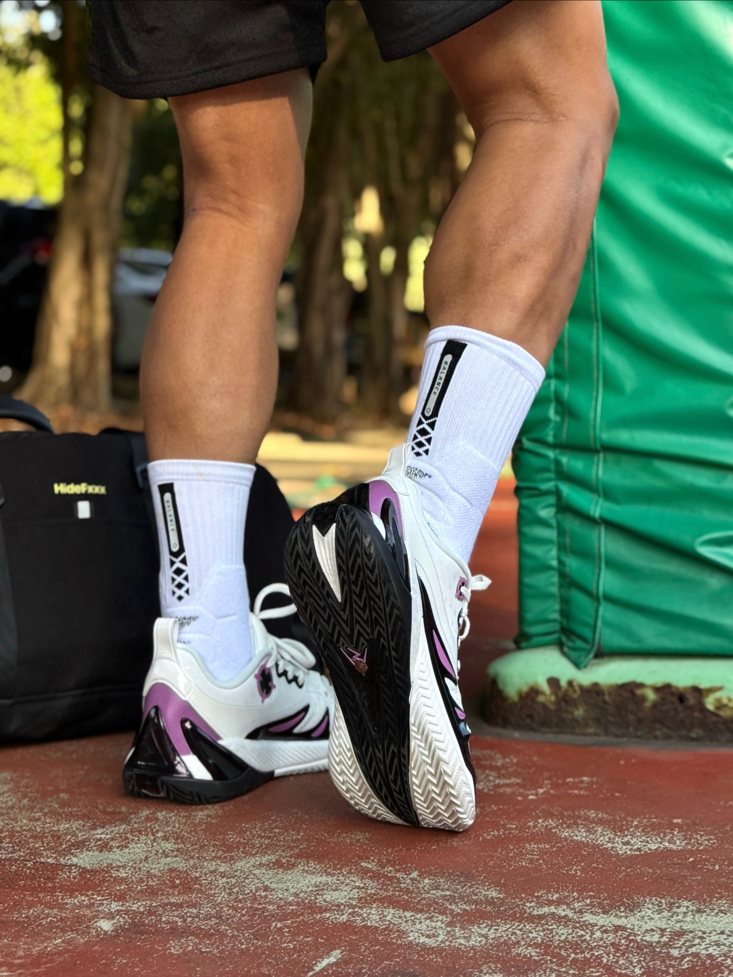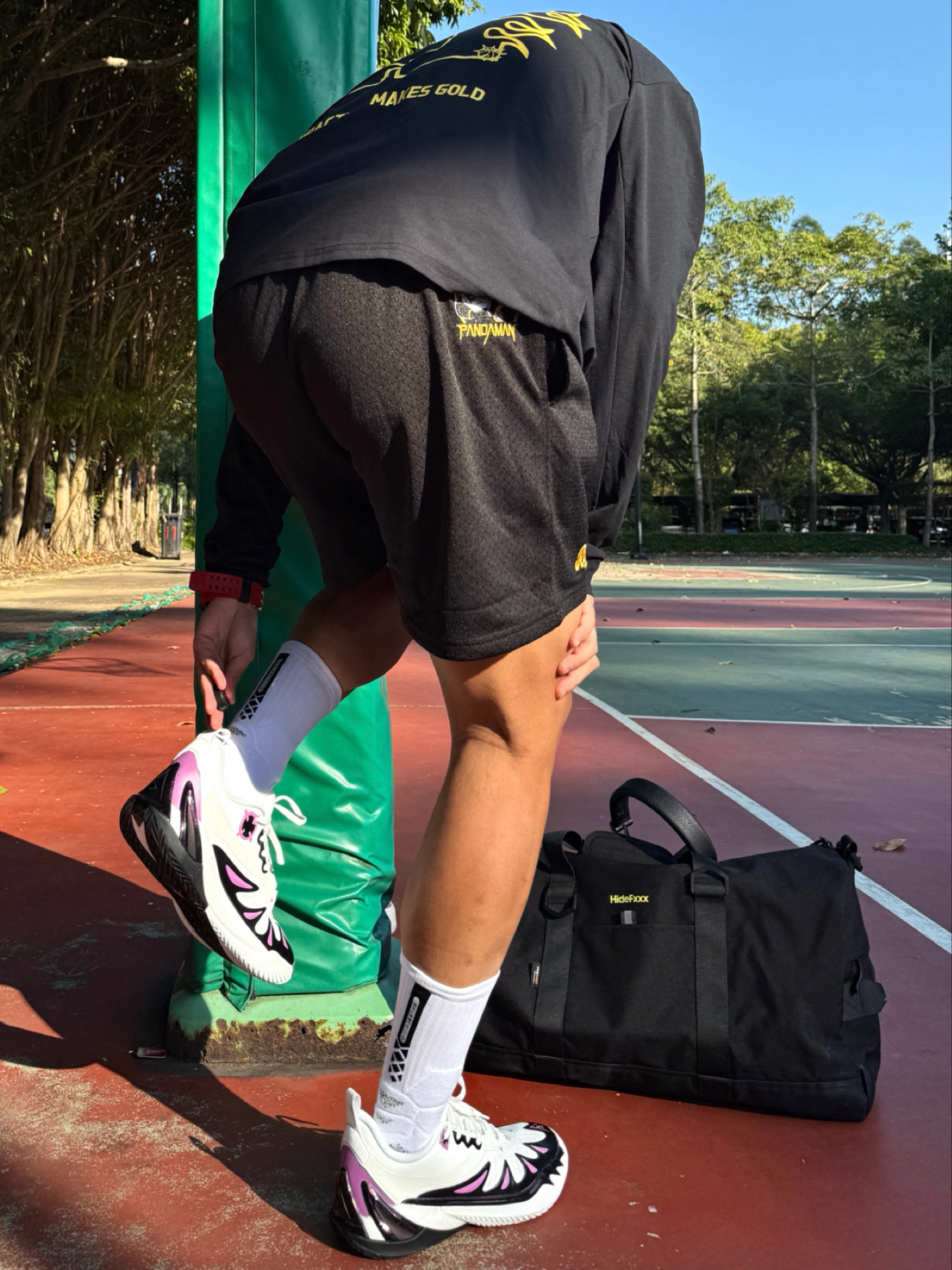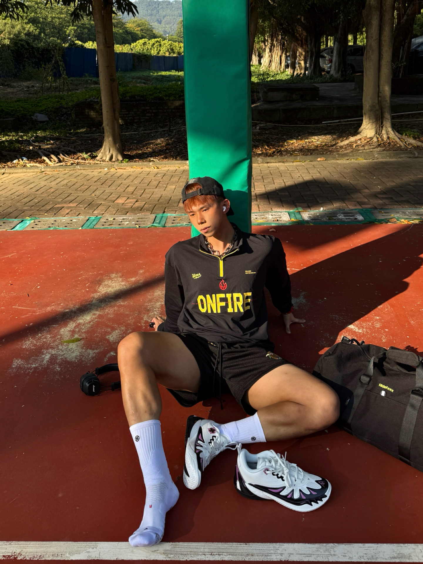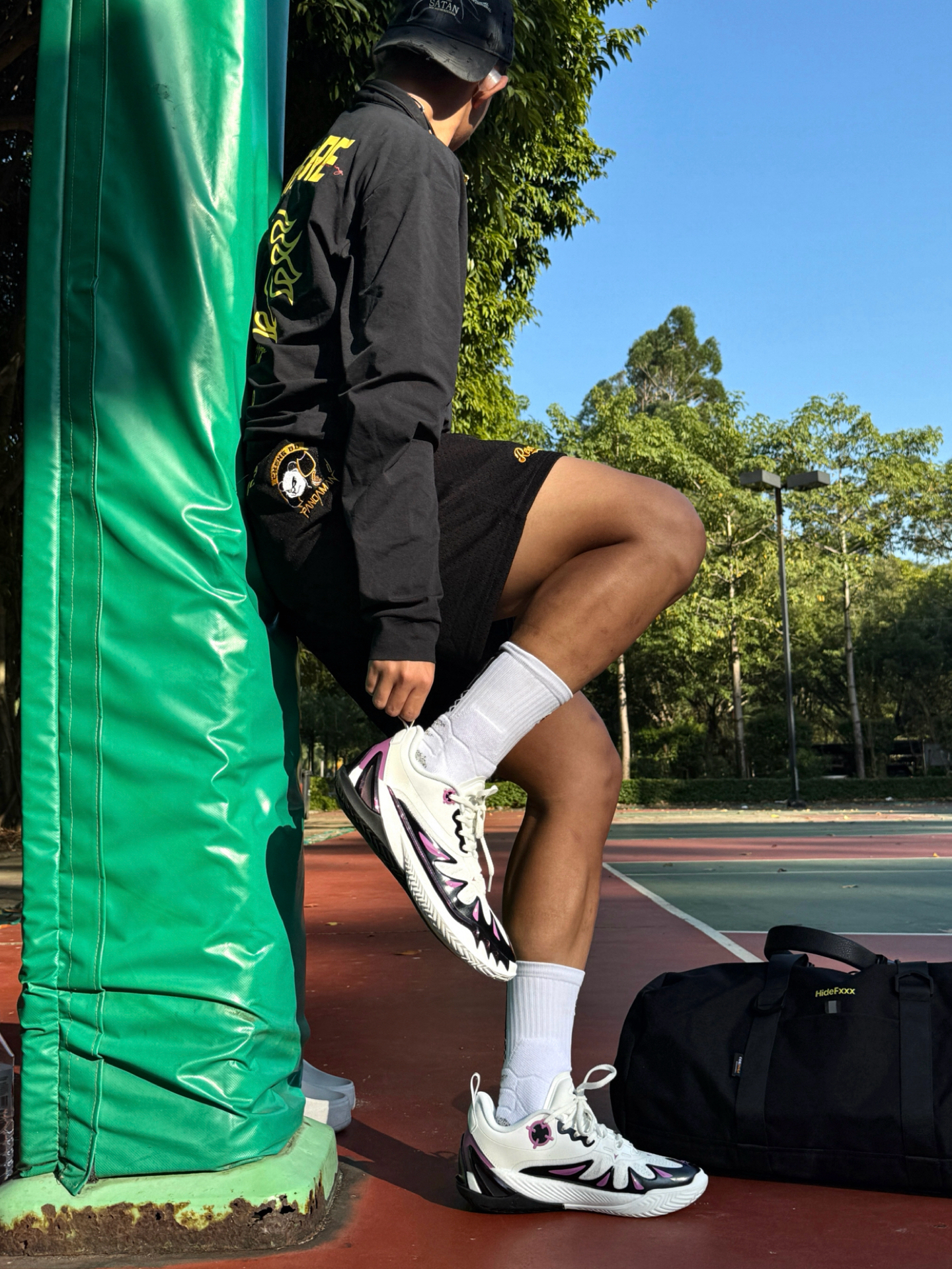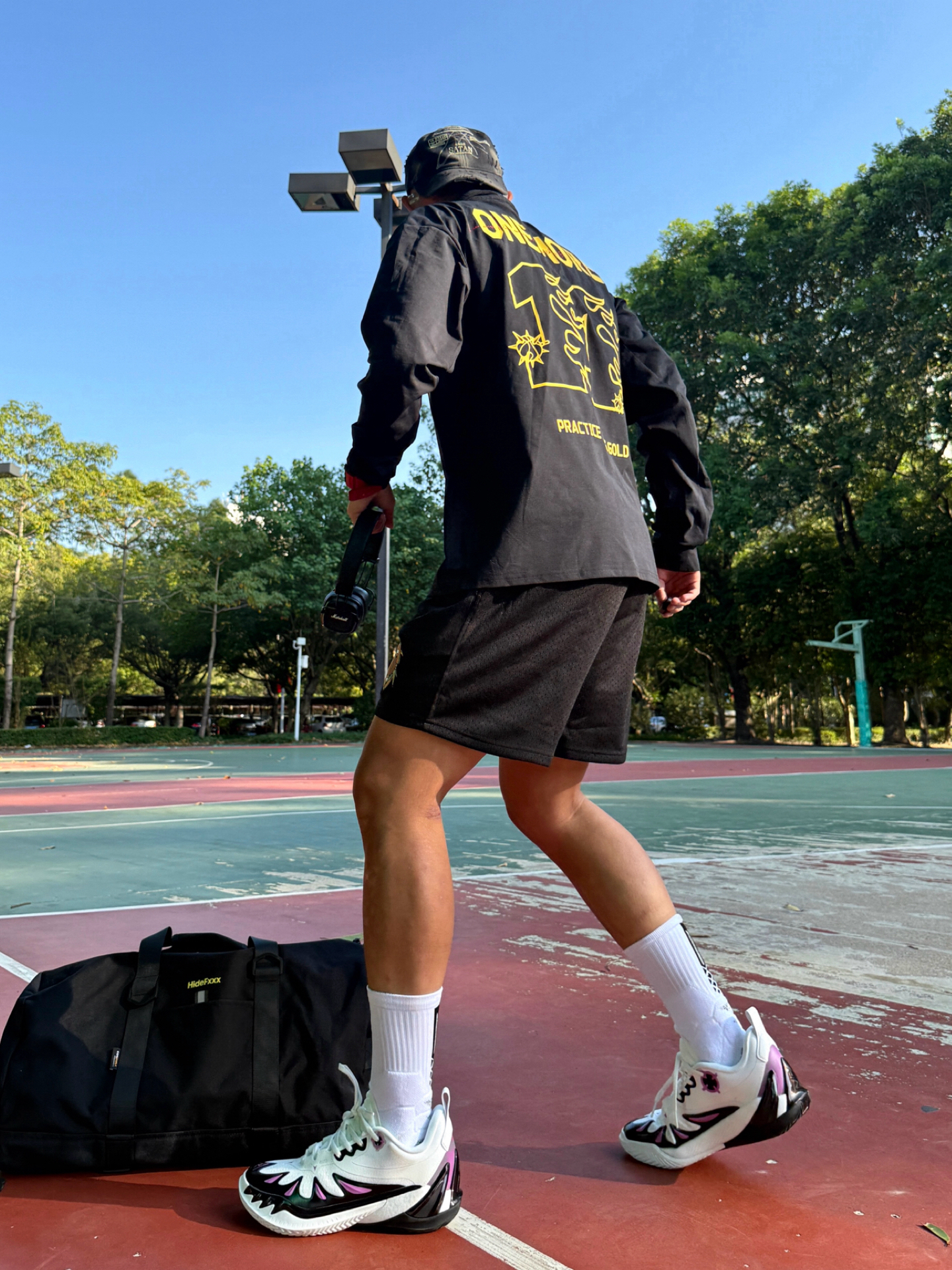 Hey bro‼️这里是小熊的穿搭日记 如何在球场上撒野无限成为显眼焦点 紫金球鞋➕黑黄球衣套装给了我答案 黑黄配色运动套装+白中筒袜🧦 上衣后背数字logo+短裤侧边刺绣 都让基础款不单调 简约又有运动感🏀 👟上脚这双里夫斯三代Vision 让我成为全场焦点 鞋头“小李飞刀”锯齿TPU狠狠戳中了我 紫金配色完美呼应湖人元素 撞色又潮又有辨识度 上脚第一感觉就是 低帮真的太香了❗️ 中底“咻...