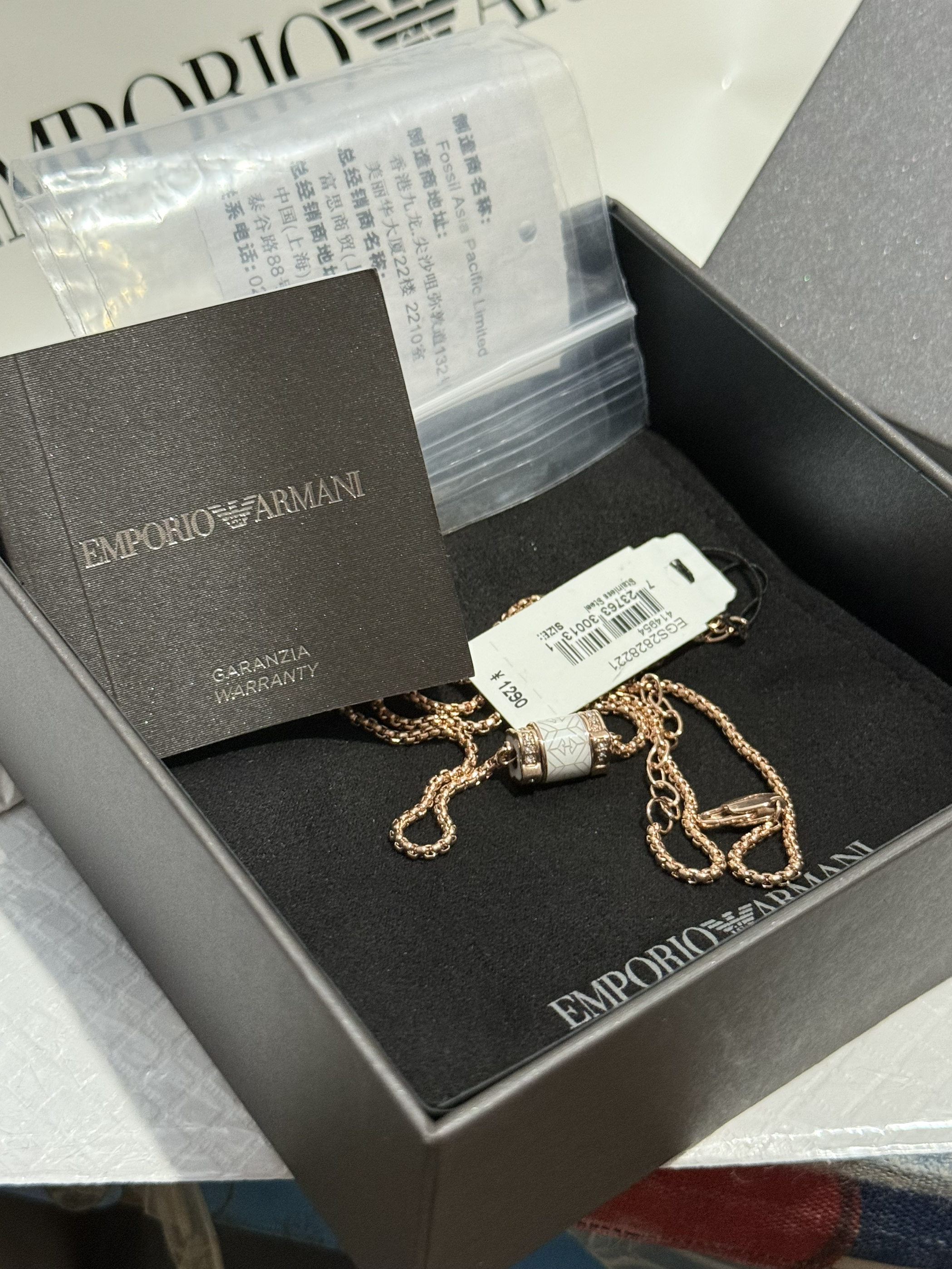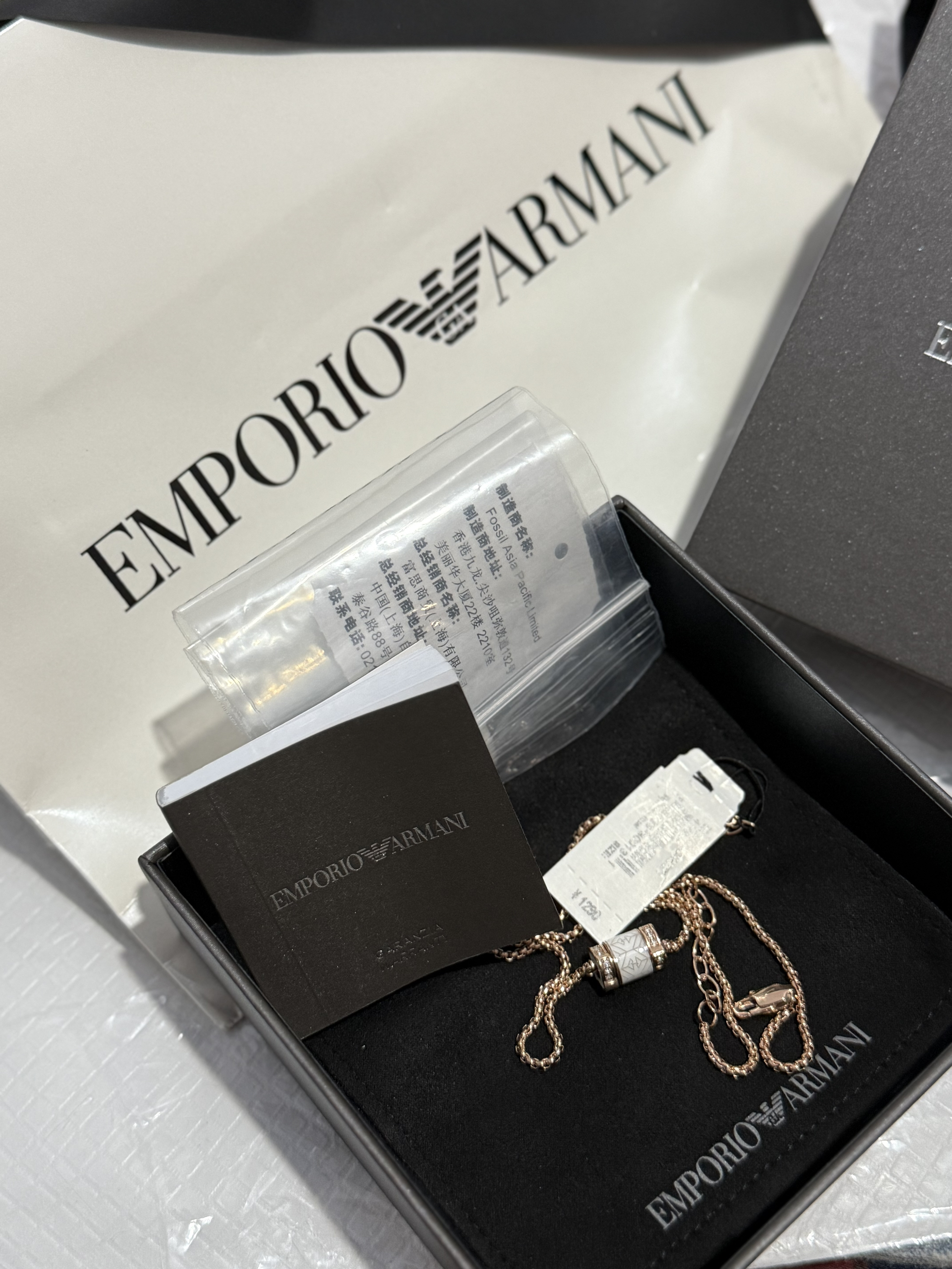 本篇笔记关联了Armani/阿玛尼 小蛮腰白玫瑰串珠钛钢镶钻吊坠 EGS2828221 玫瑰金+白等商品,为用户提供真实的使用体验和购买参考。